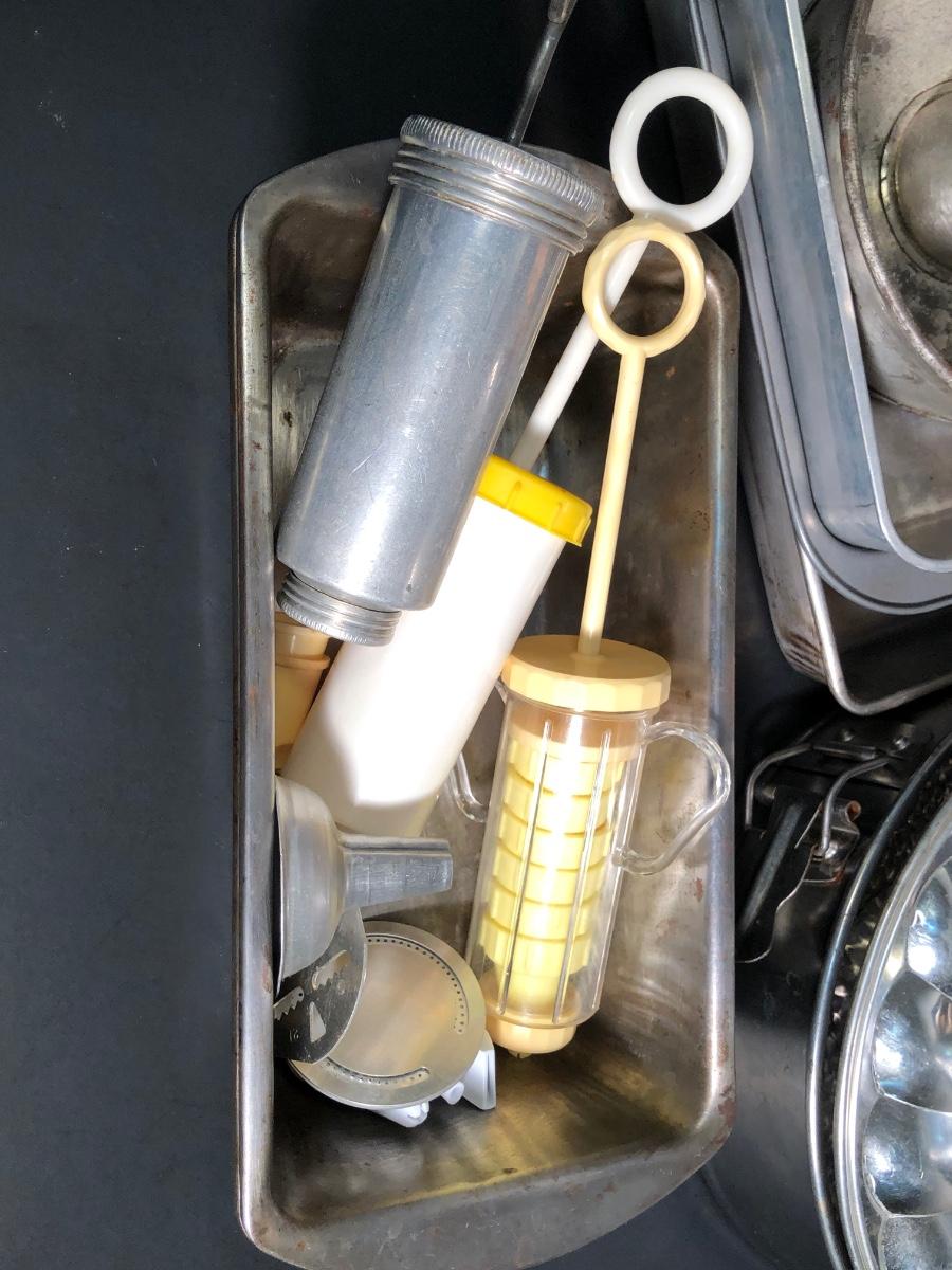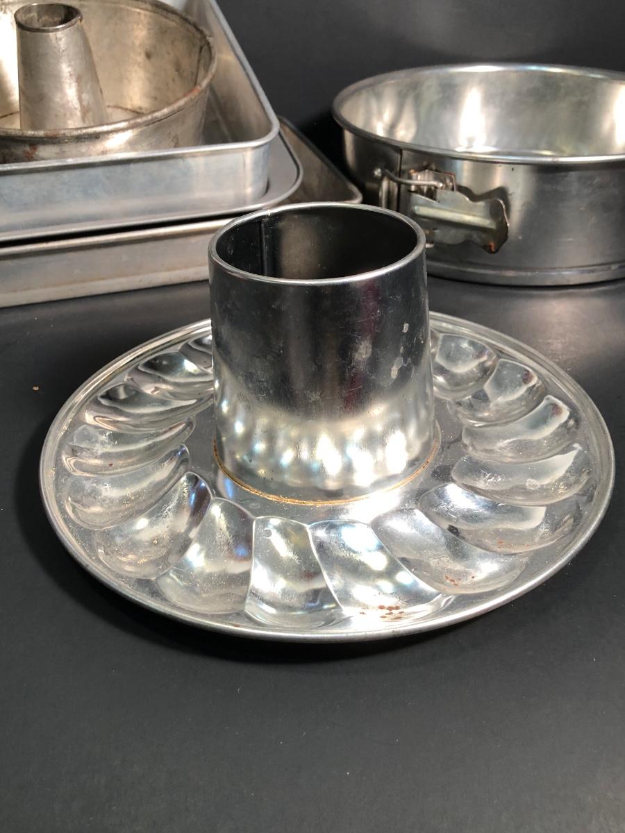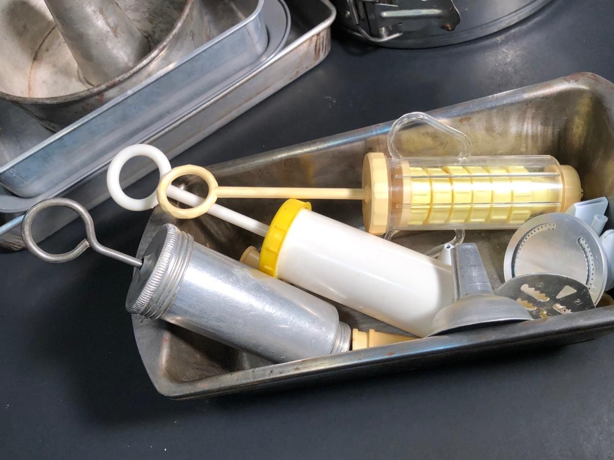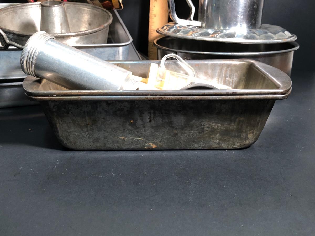 LOT 169K: Vintage Baking Collection - Sifter, Cake Pans, Weight Watchers Kitchen Scale & More