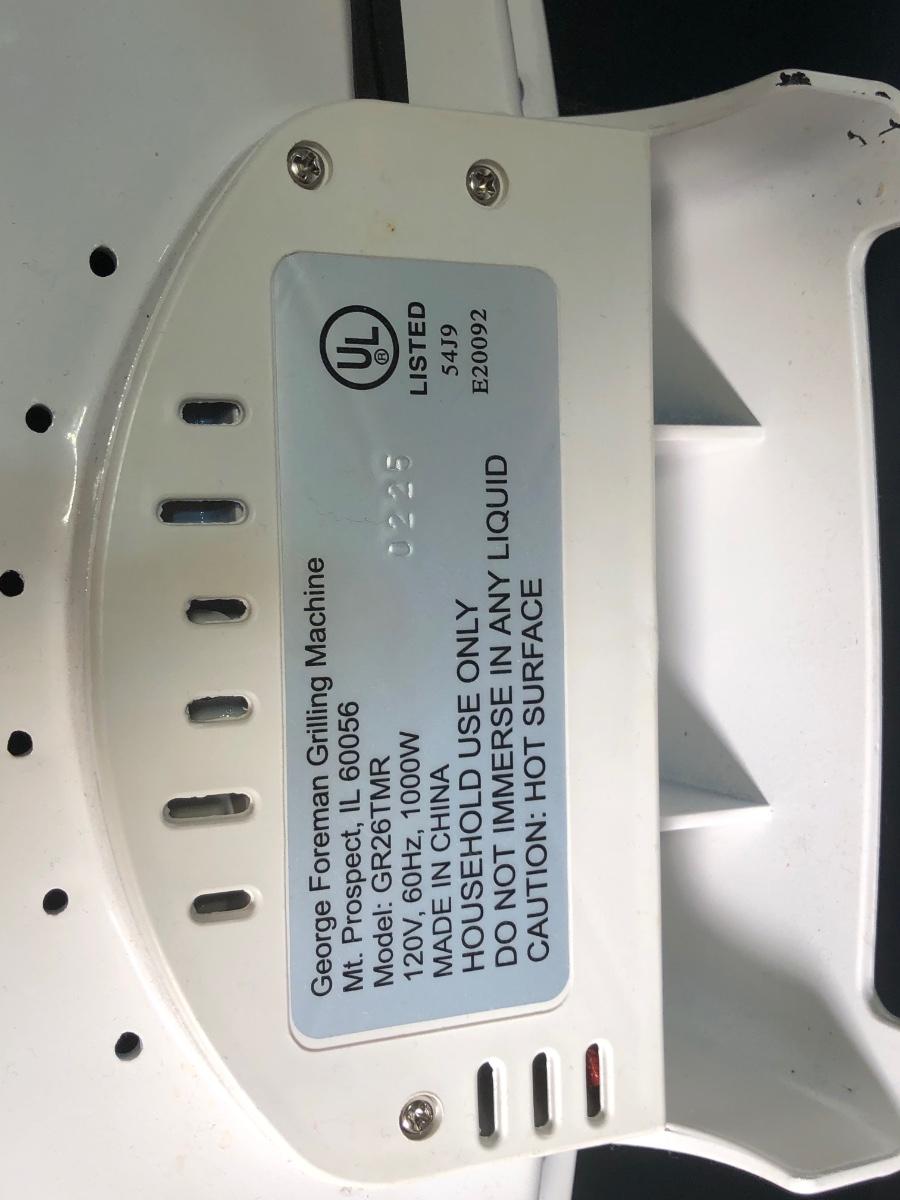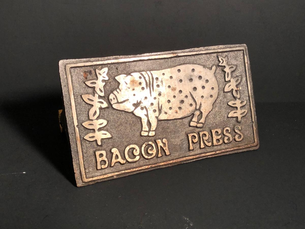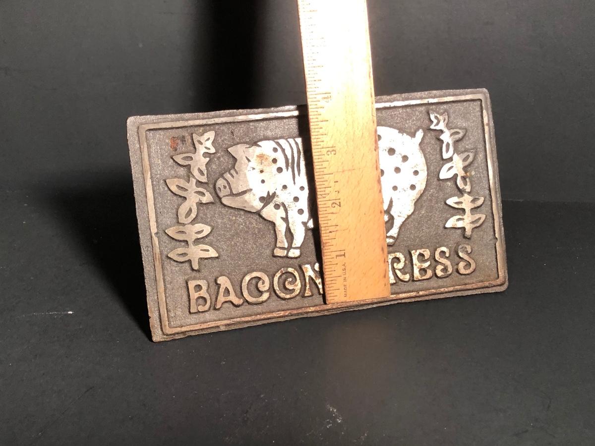 LOT 170K: Meat Lover's Collection - George Foreman Grilling Machine Model GR26TMR, Cast Iron Bacon Press & Decor Tray