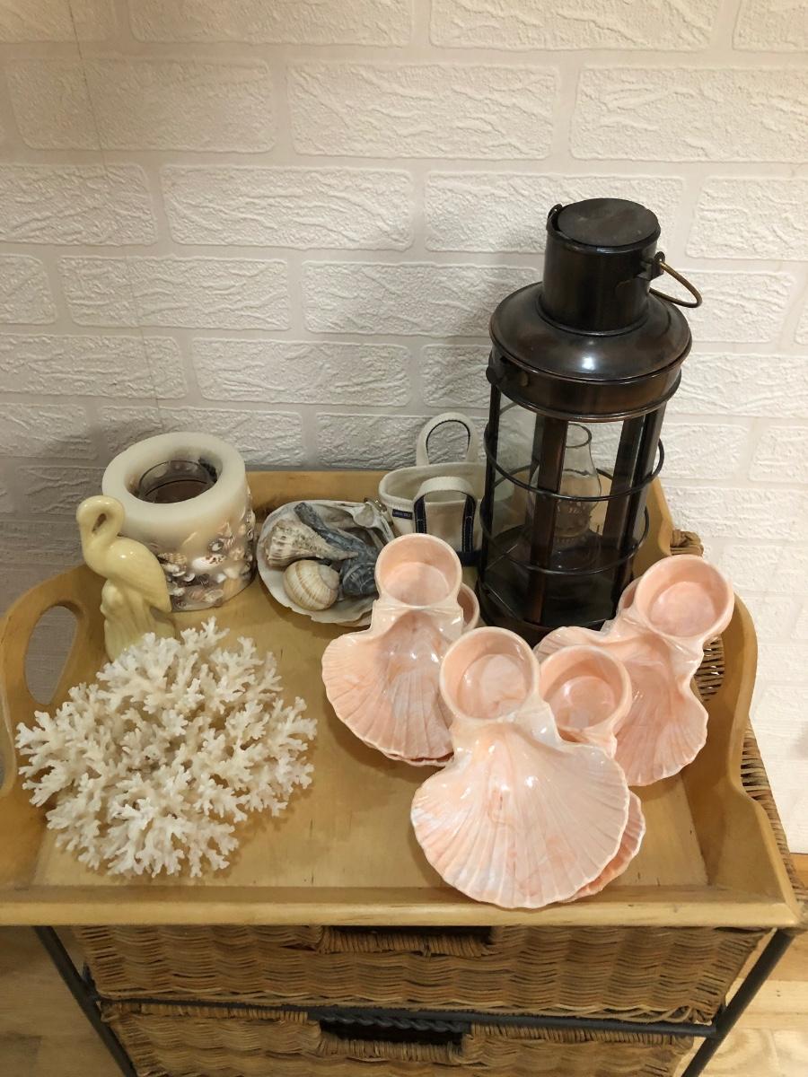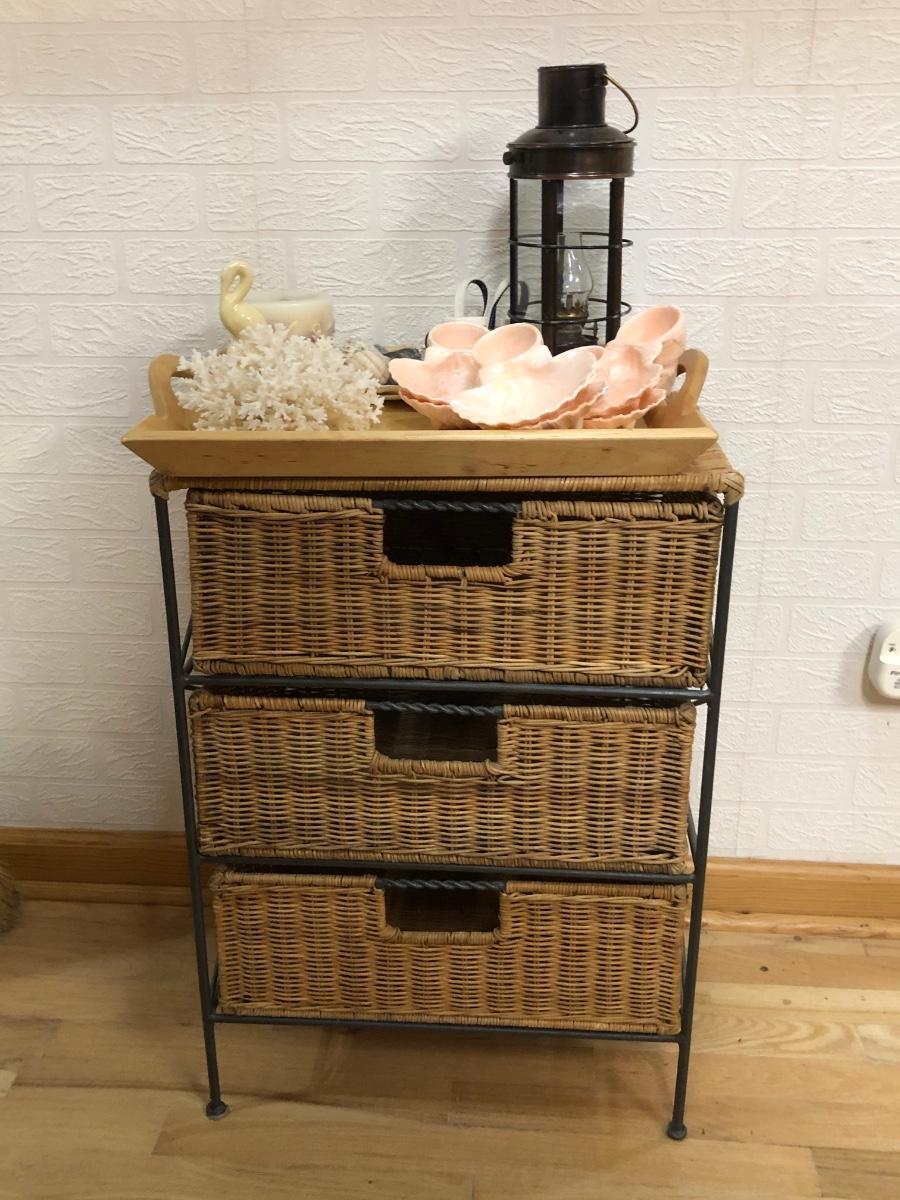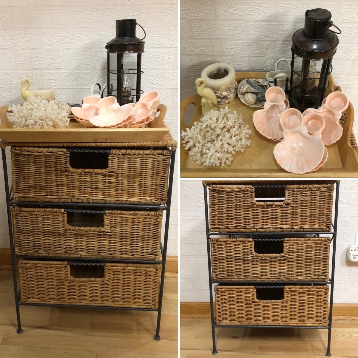 LOT 179L: Wicker End Table w/ Drawers & Nautical Themed Decor