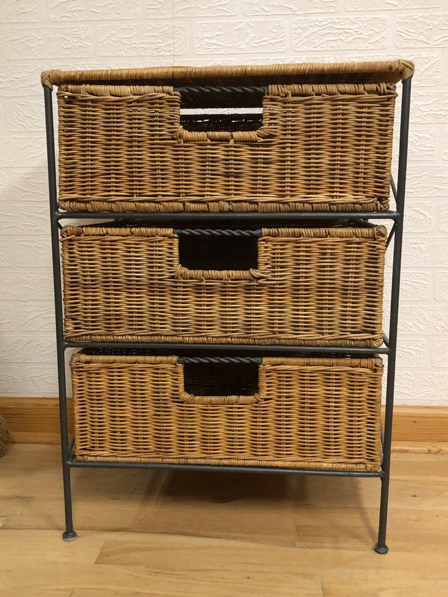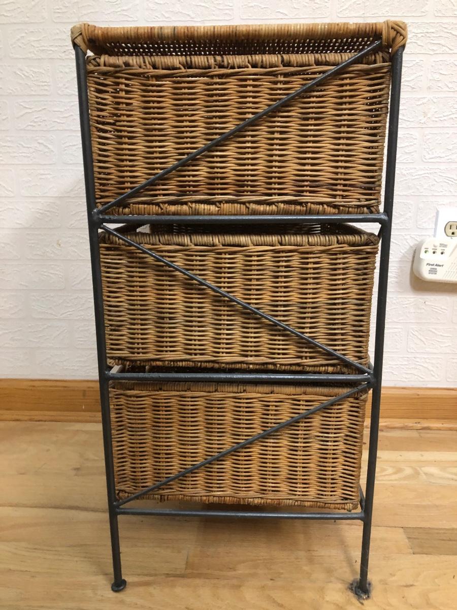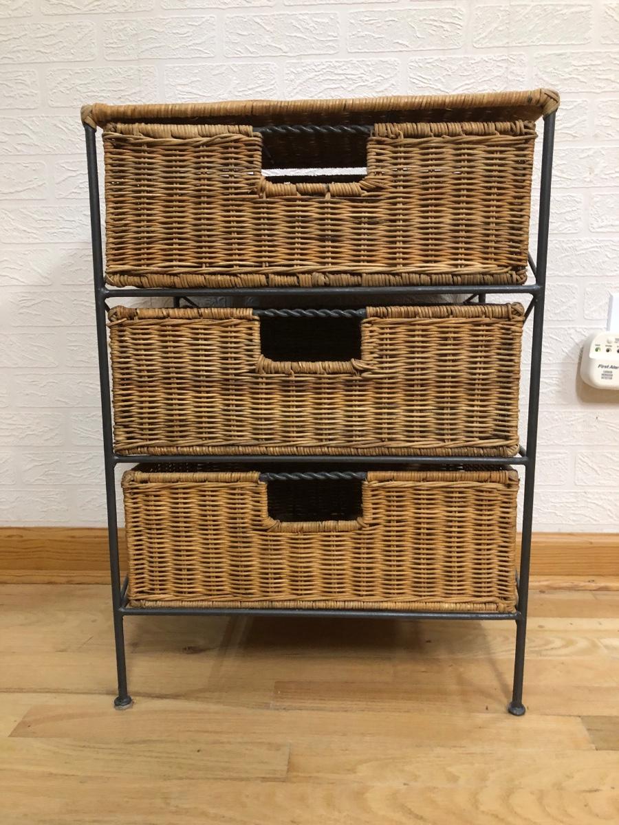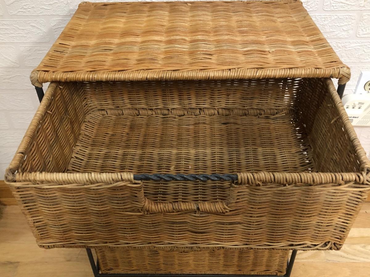 LOT 179L: Wicker End Table w/ Drawers & Nautical Themed Decor