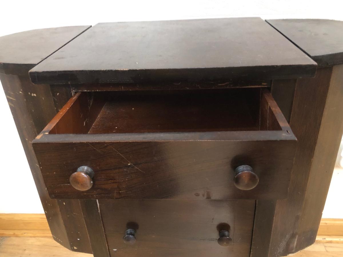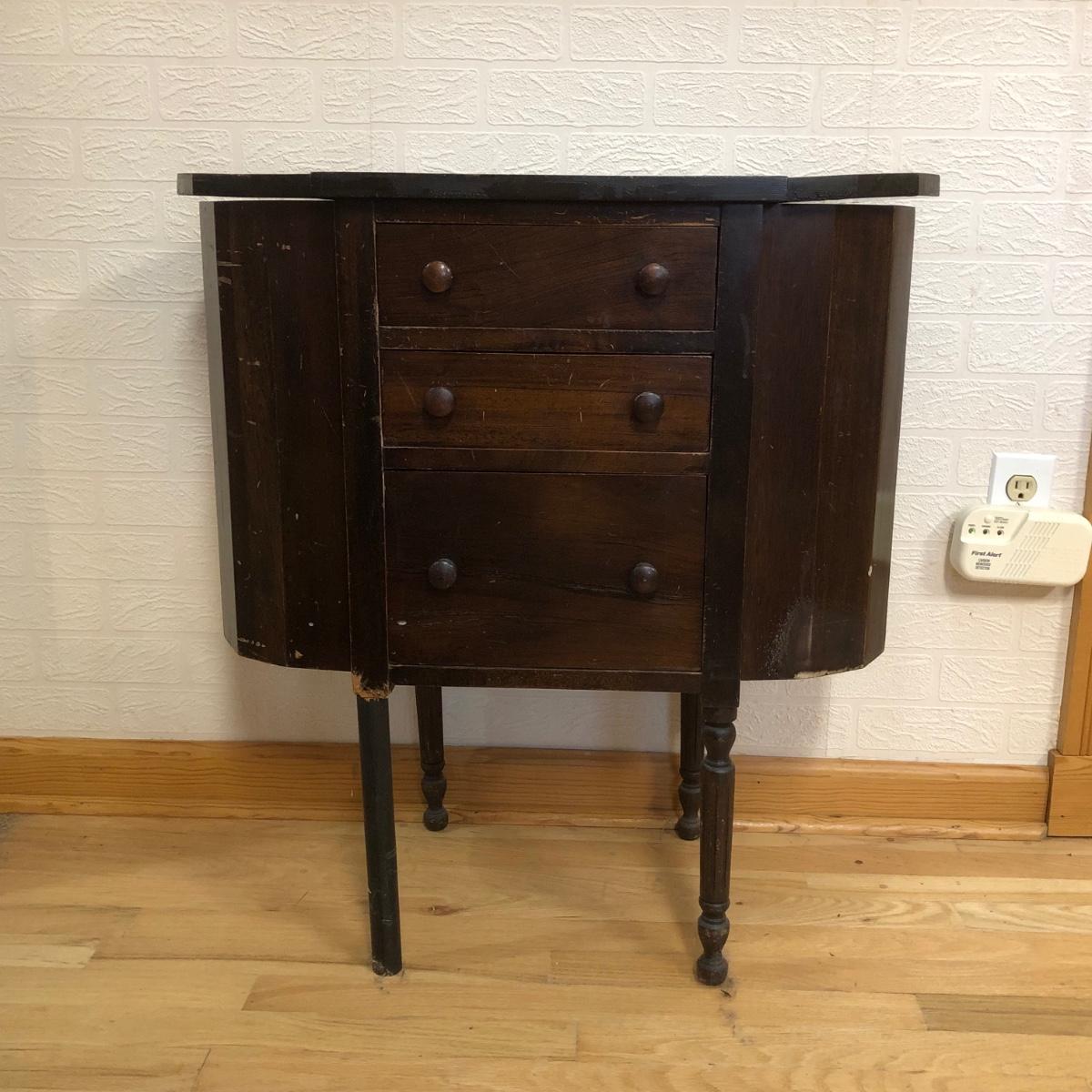 Sewing table has condition issues and measures 27W x 14D x 29H.