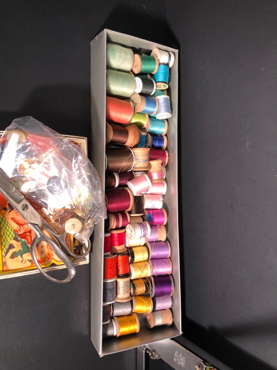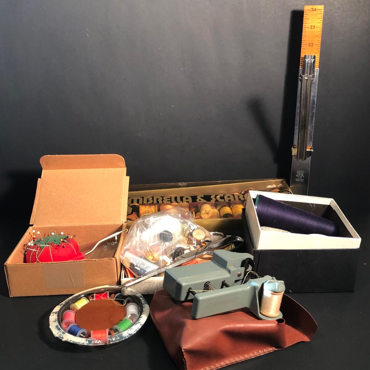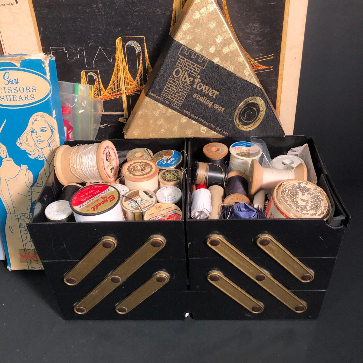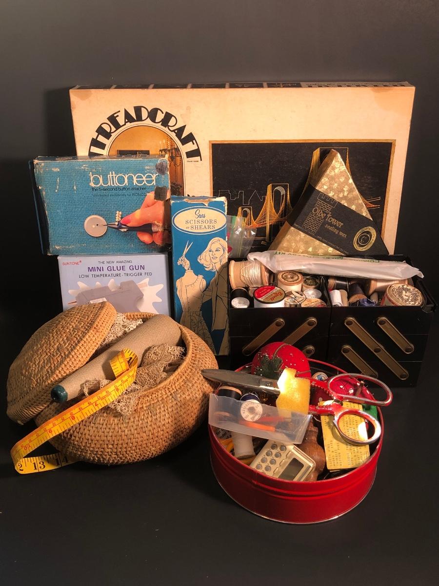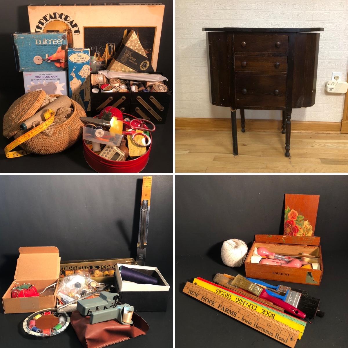 LOT 181F: Large Vintage Sewing / Crafting Collection w/ Sewing Table