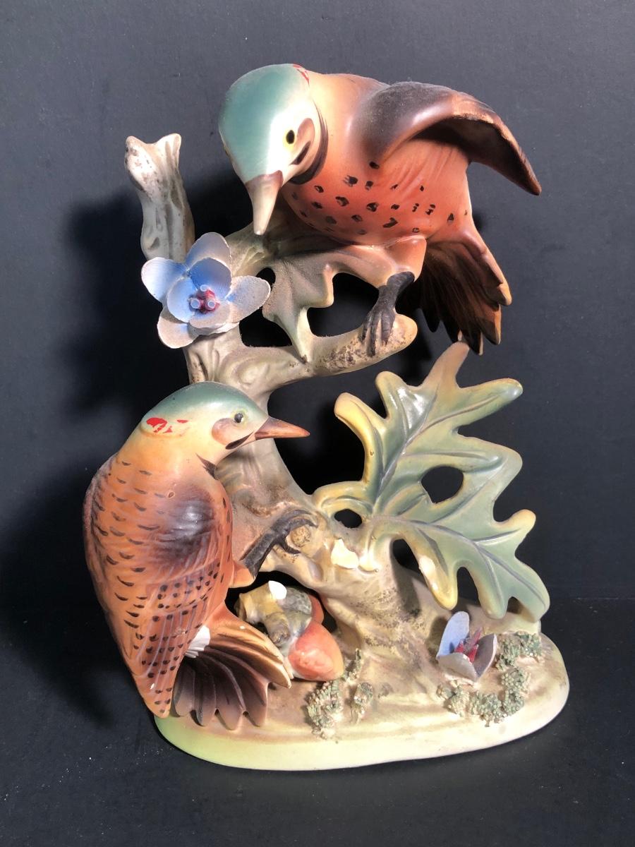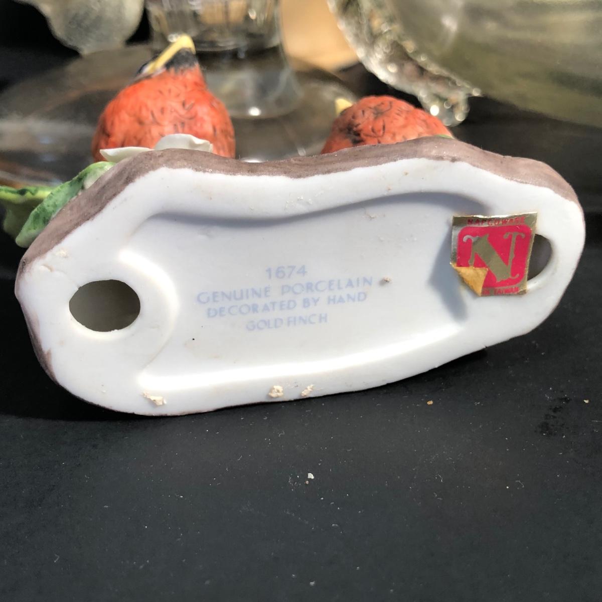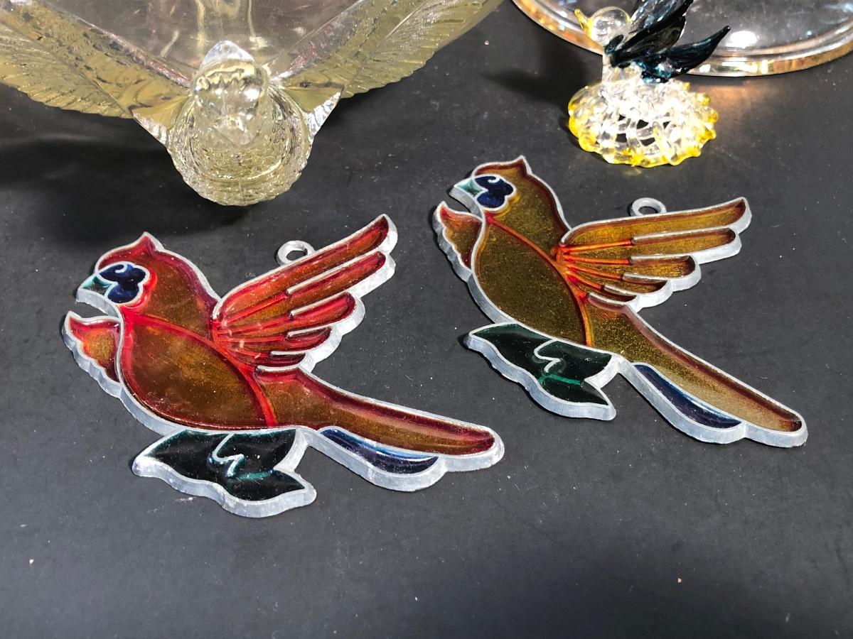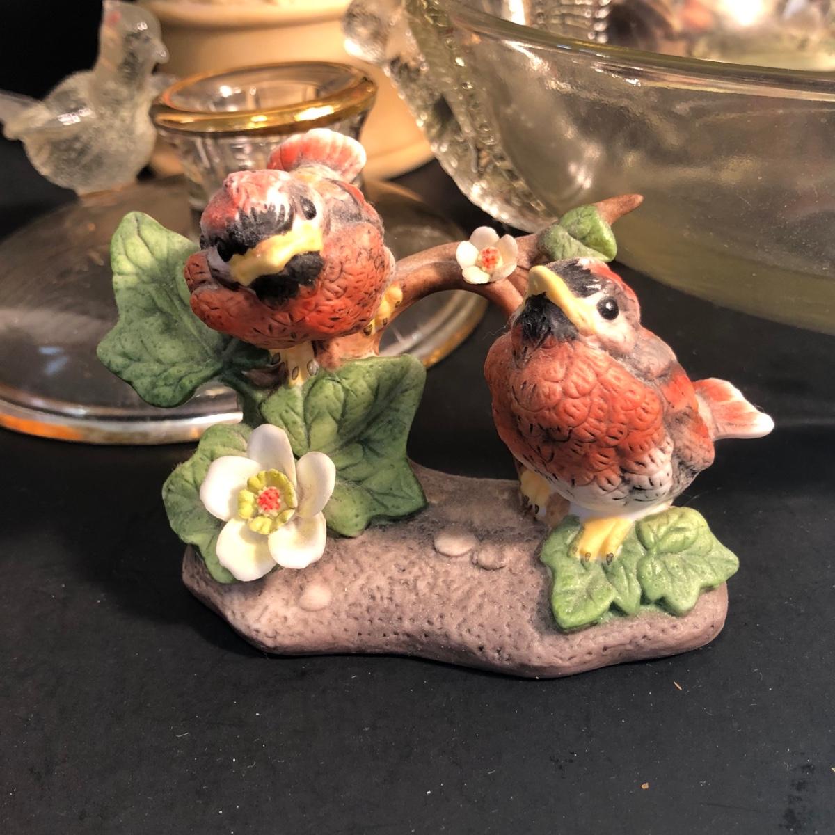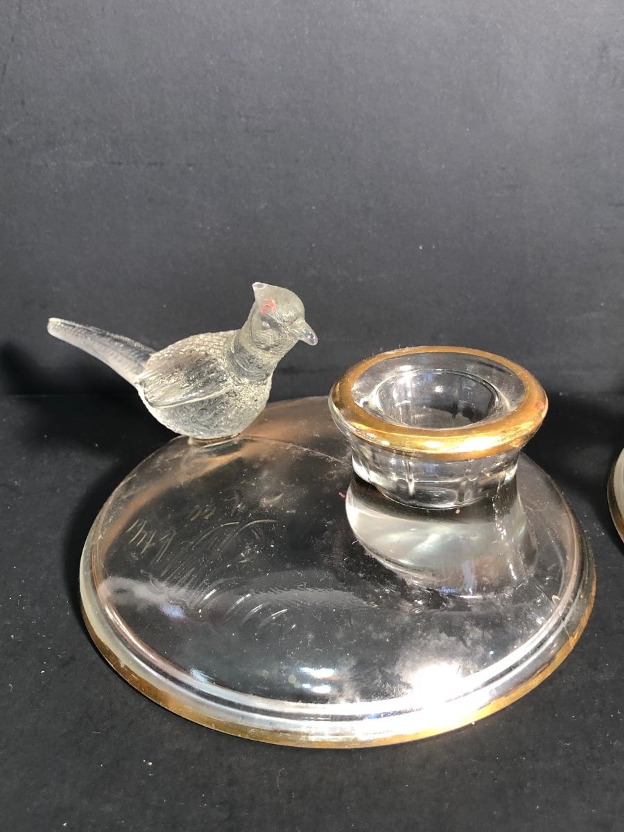 LOT 186L: Bird Porcelain Figurines, Crystal Sculpture & Glass Bowl w/ Candle Holders