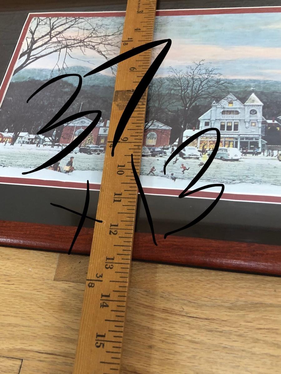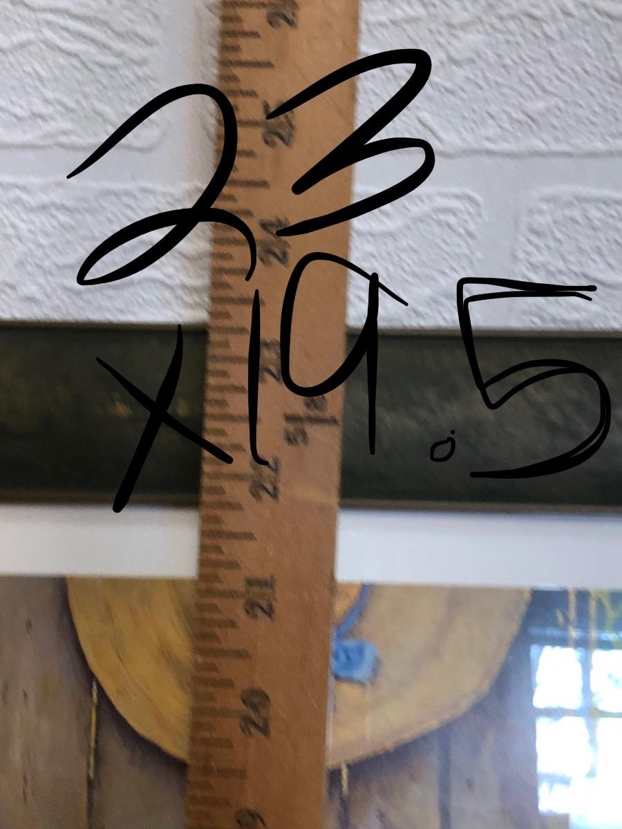 Framed pieces measure 37 x 13 and 23 x 19.5 inches. Unframed prints measure 8 x 10 inches.