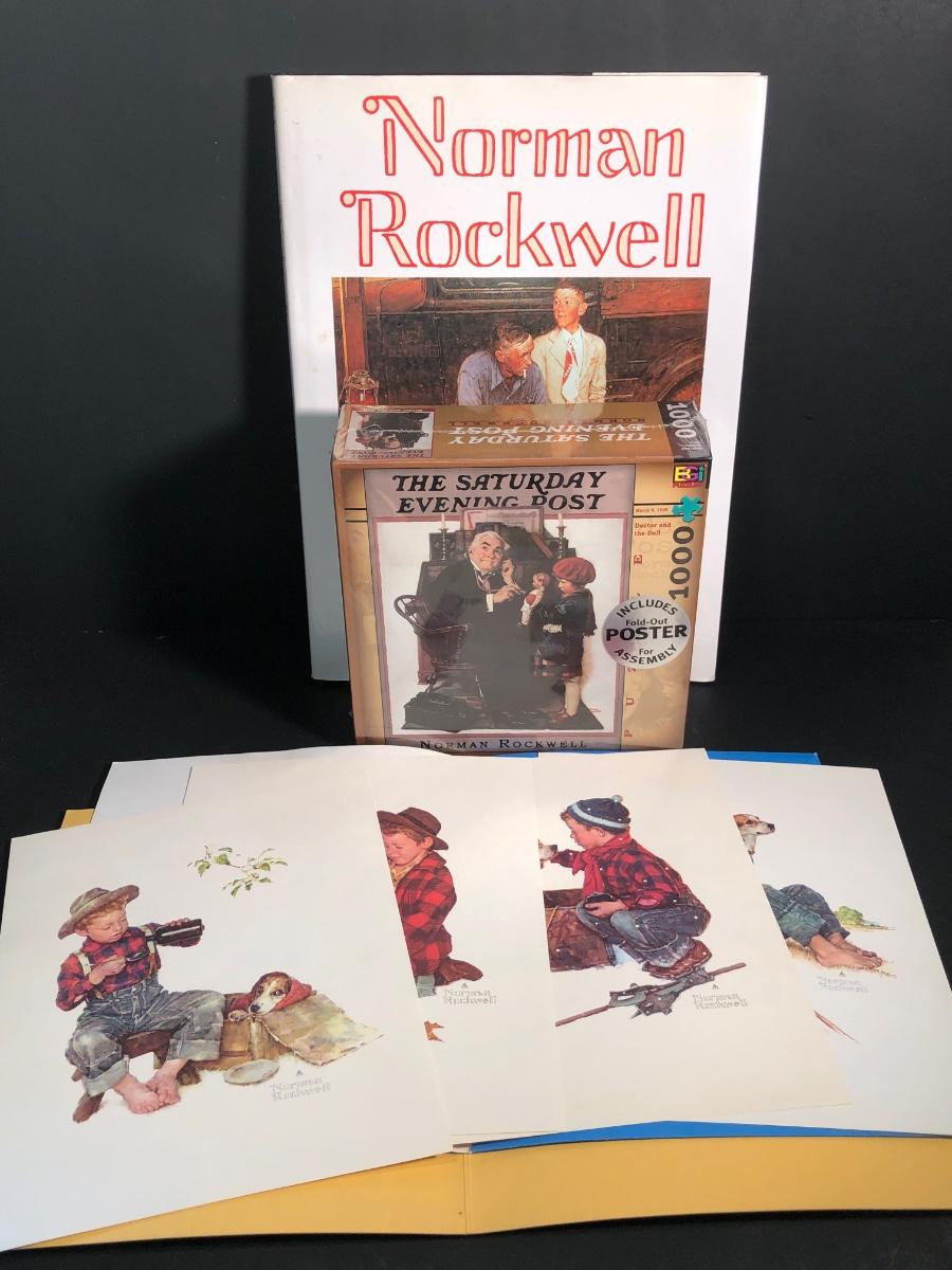 LOT 200K: Norman Rockwell Collection - Framed Pieces, Dog Prints, Sealed Puzzle & Book by Elizabeth Miles Montgomery