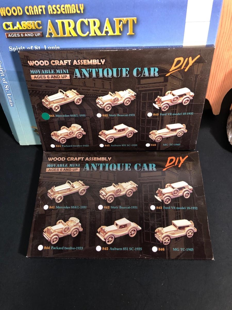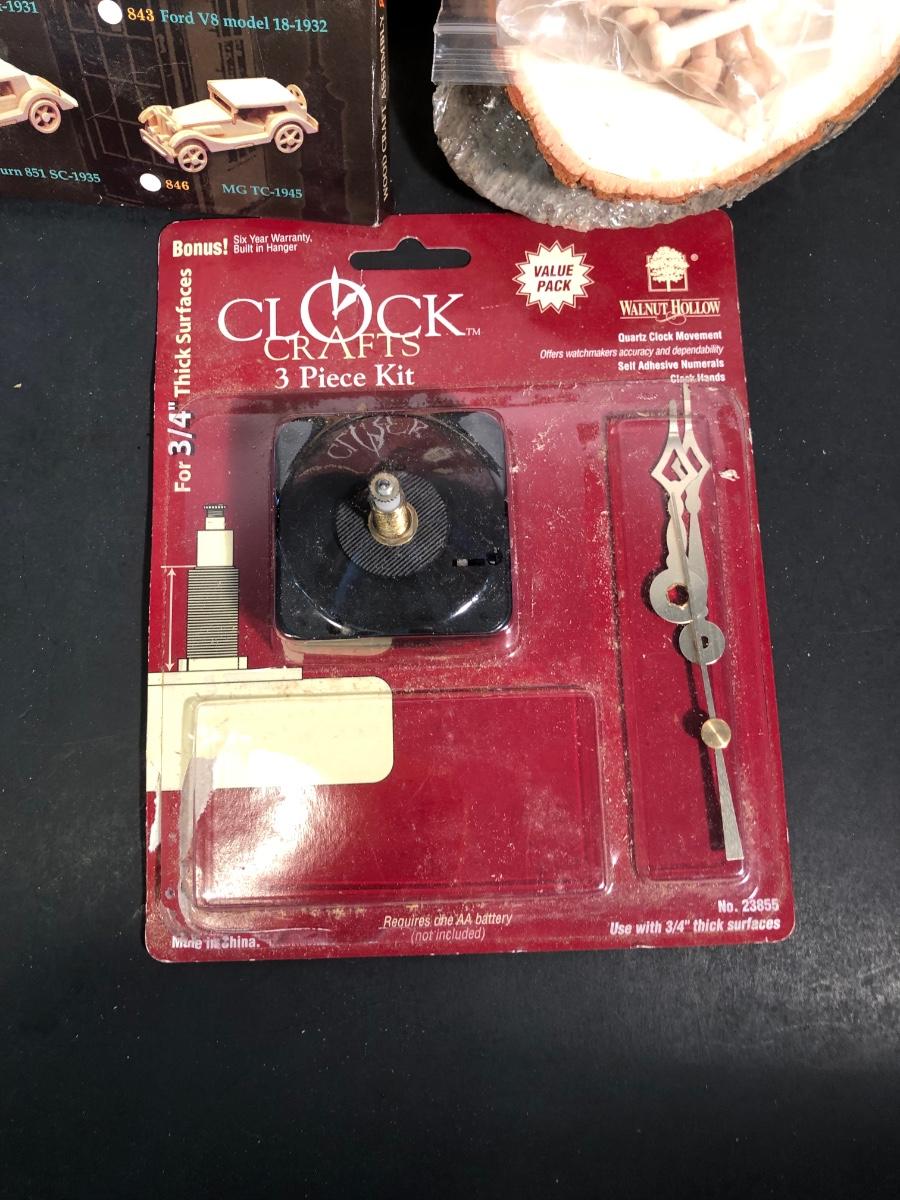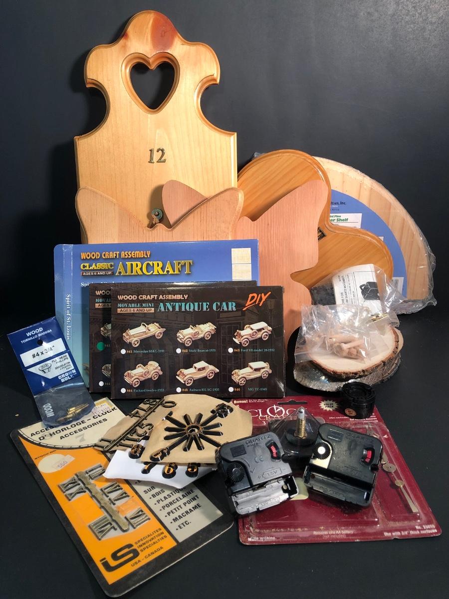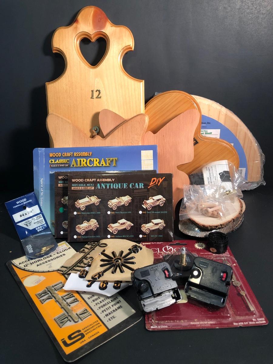 LOT 241L: Clock Making Supplies, Wood Pieces for Crafting, DIY Antique Car Kits & More