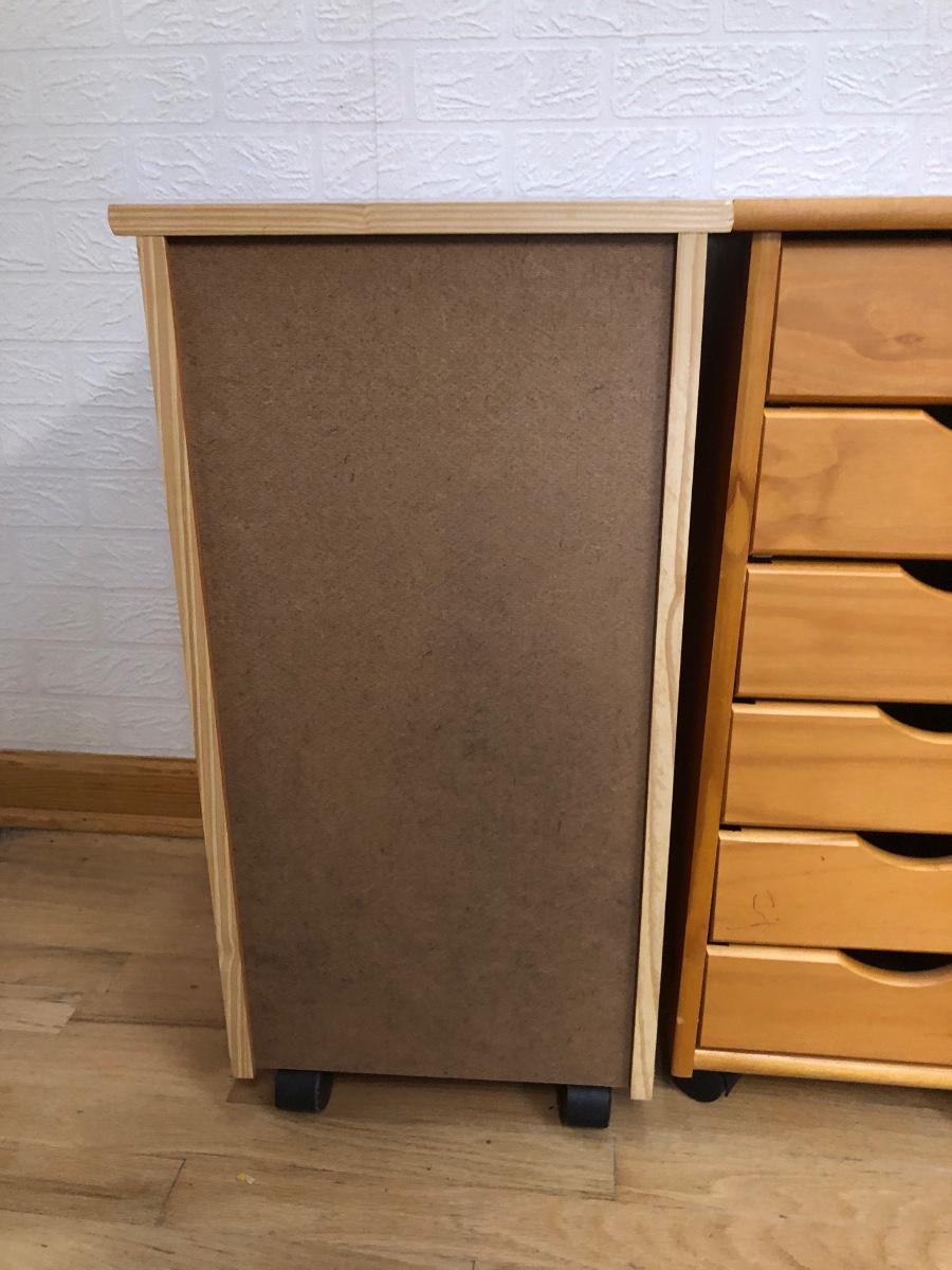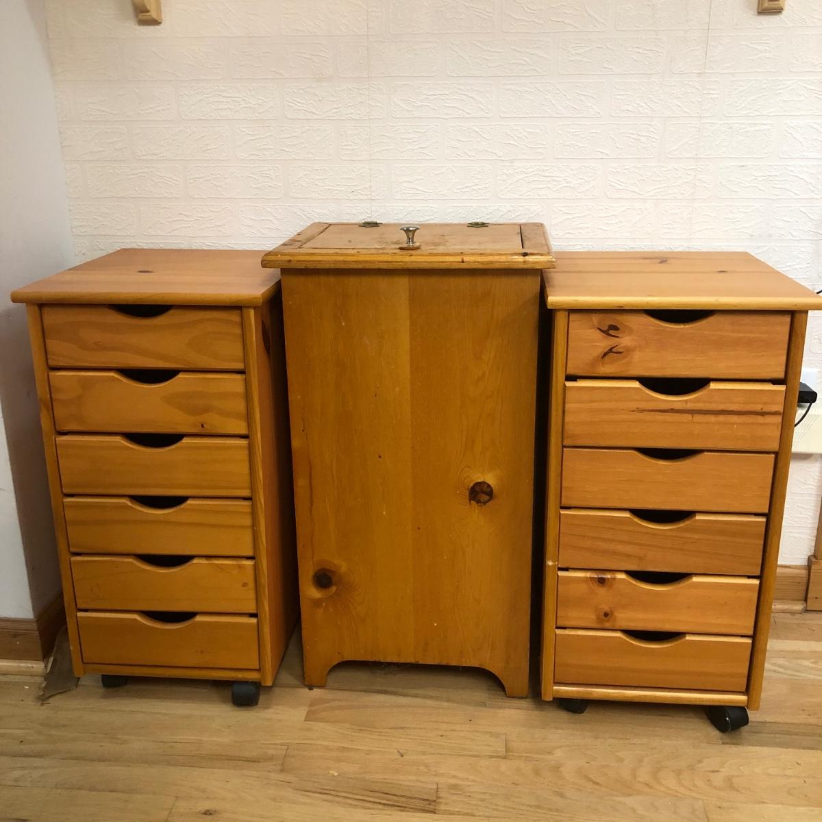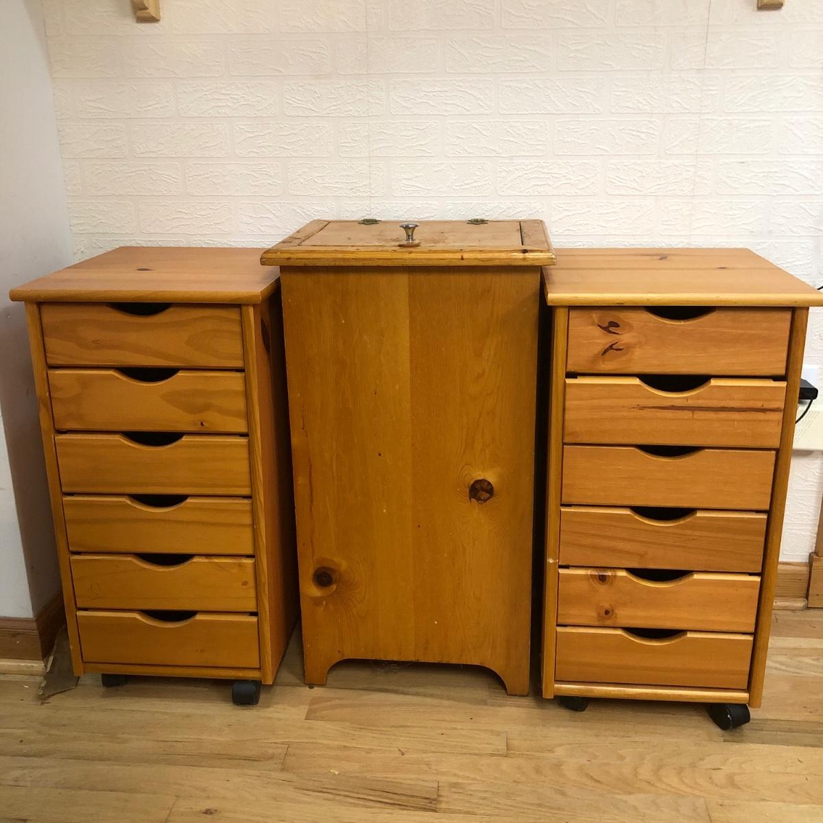 LOT 244K: Wooden Kitchen Wastebin & Pair of Rolling Carts w/ Drawers