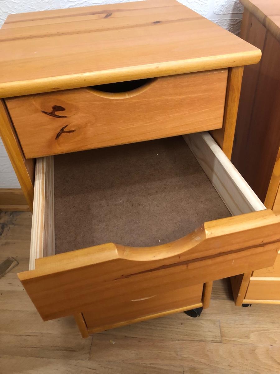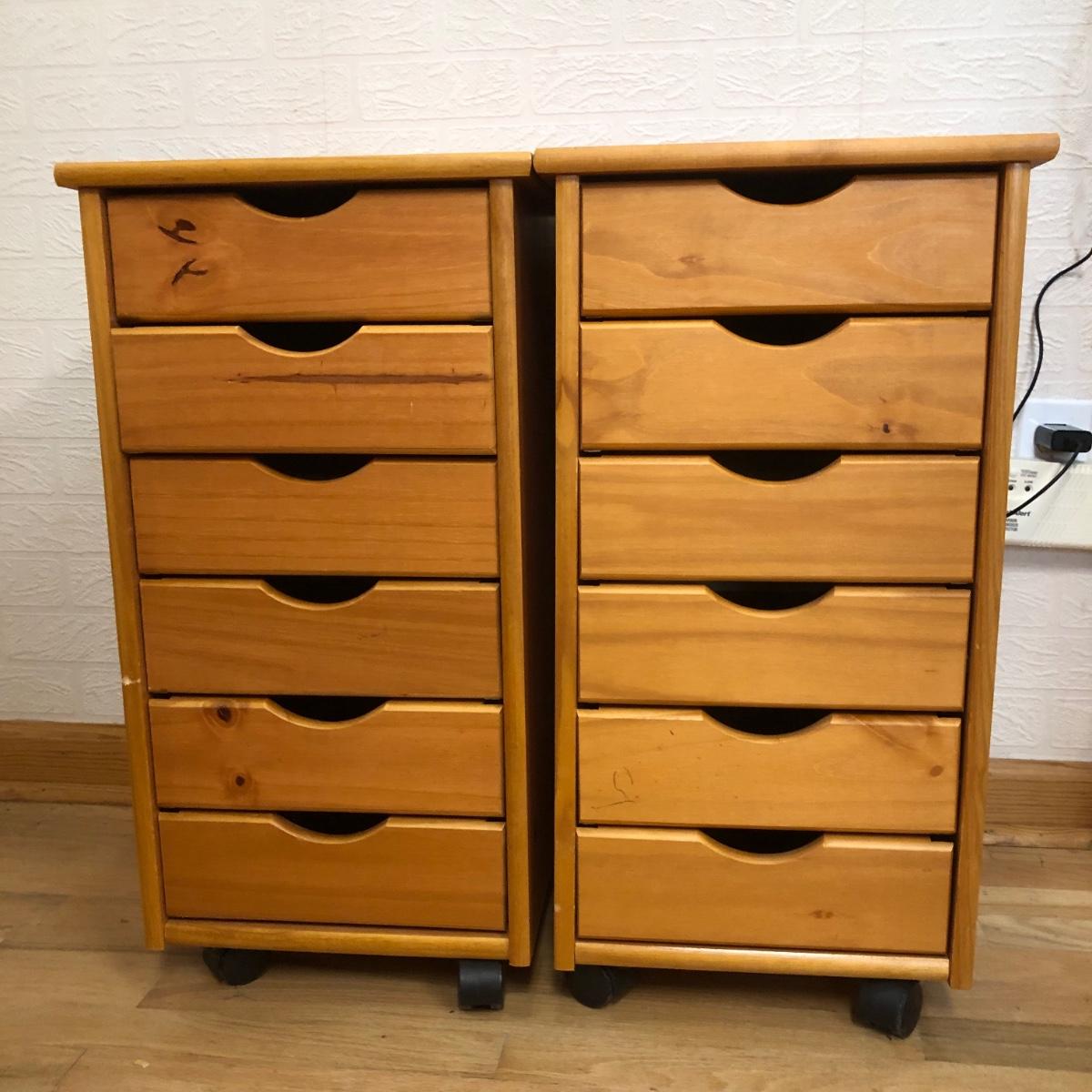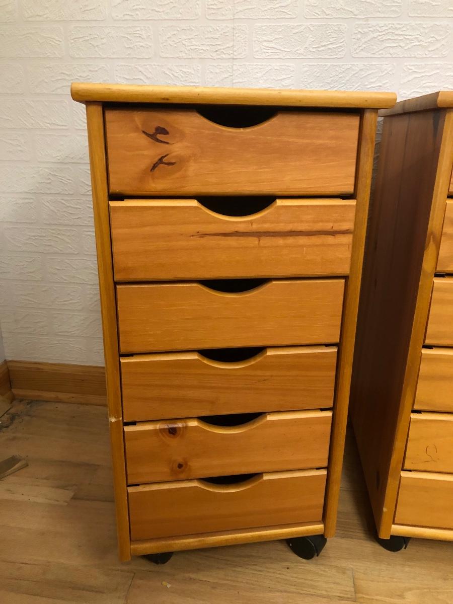 LOT 244K: Wooden Kitchen Wastebin & Pair of Rolling Carts w/ Drawers
