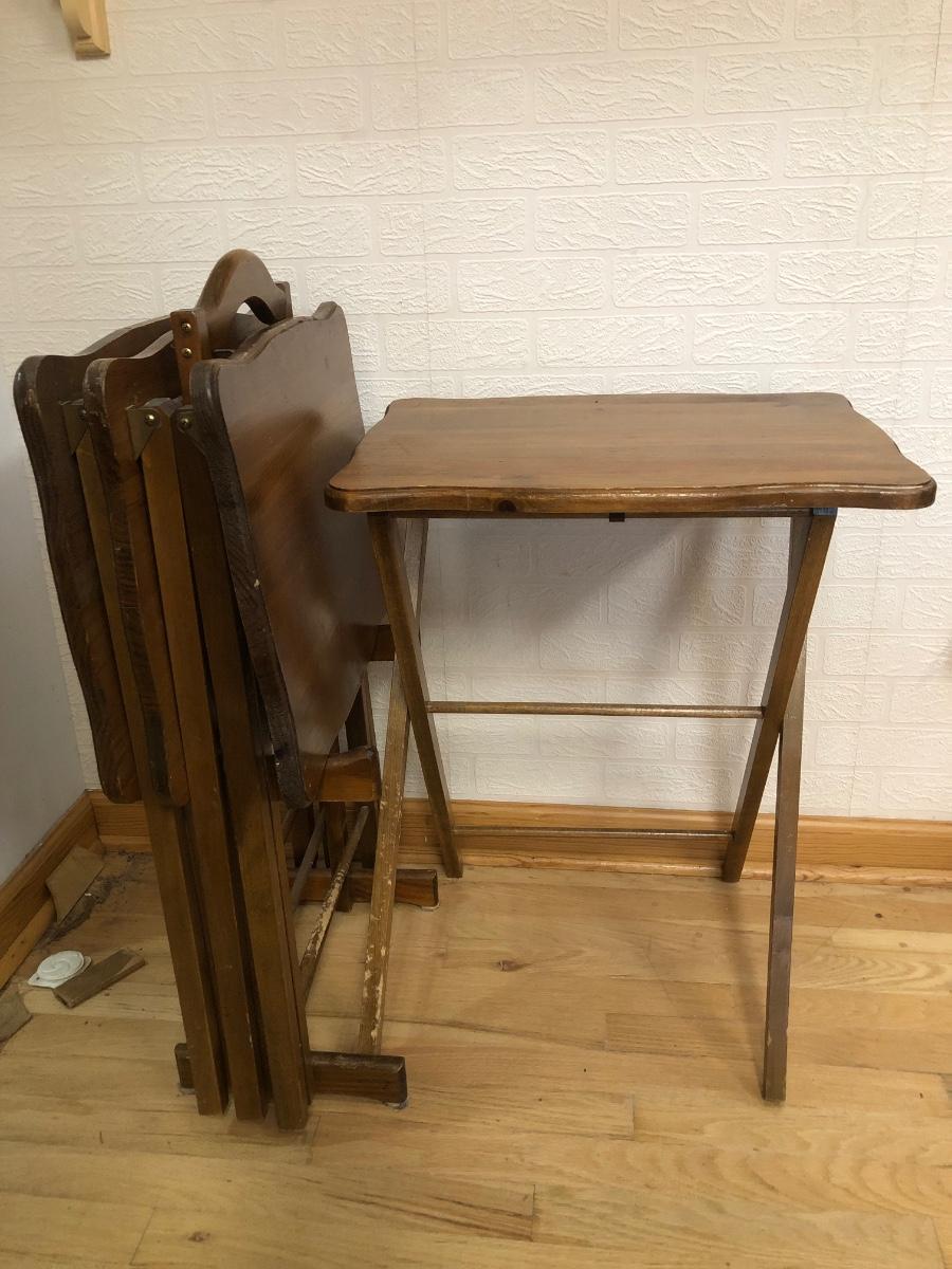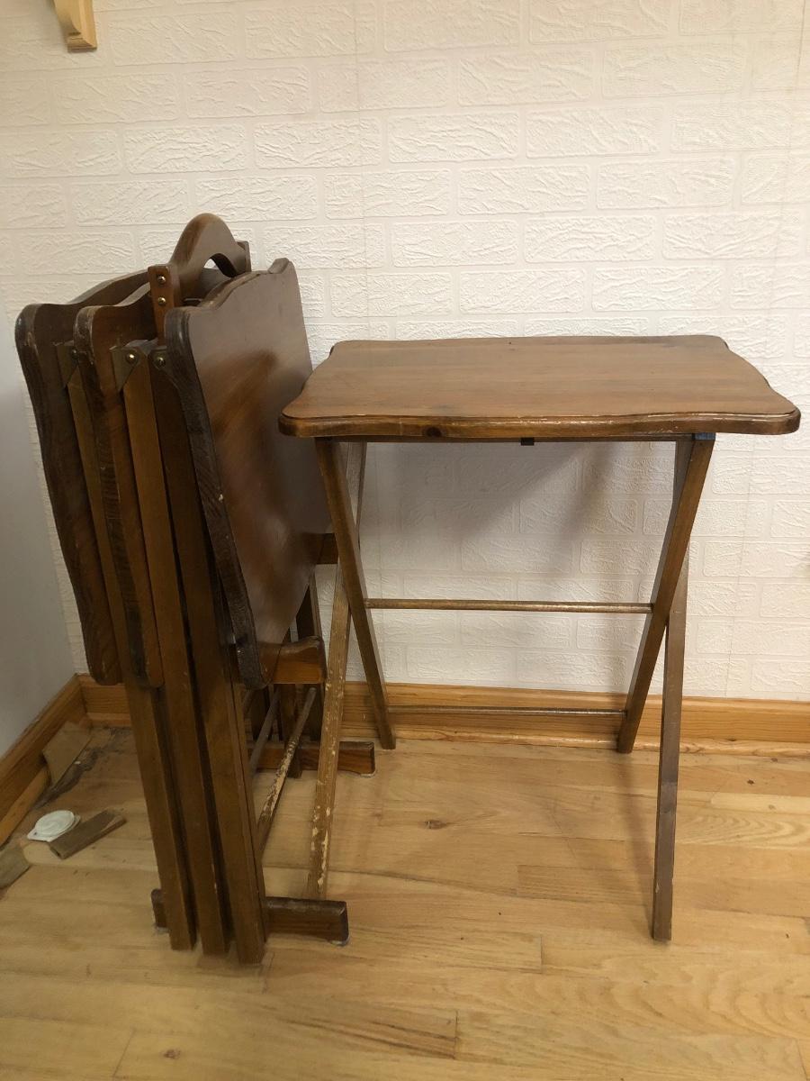 LOT 246K: Vintage Folding Wooden Tray Tables w/ Stand