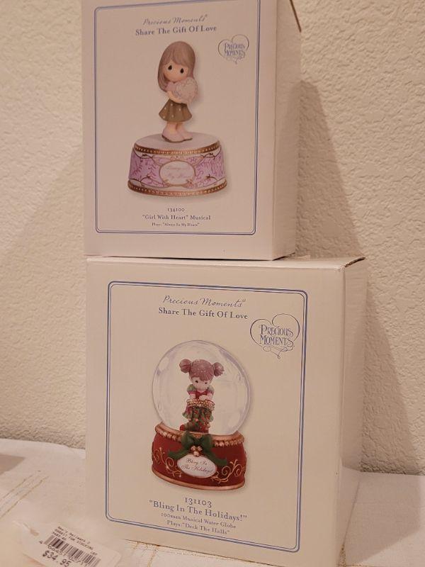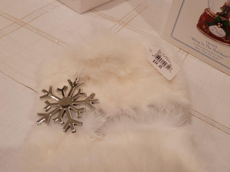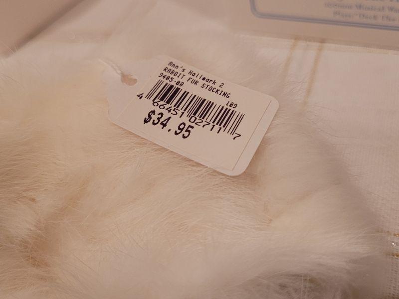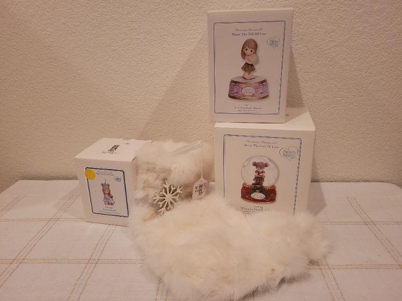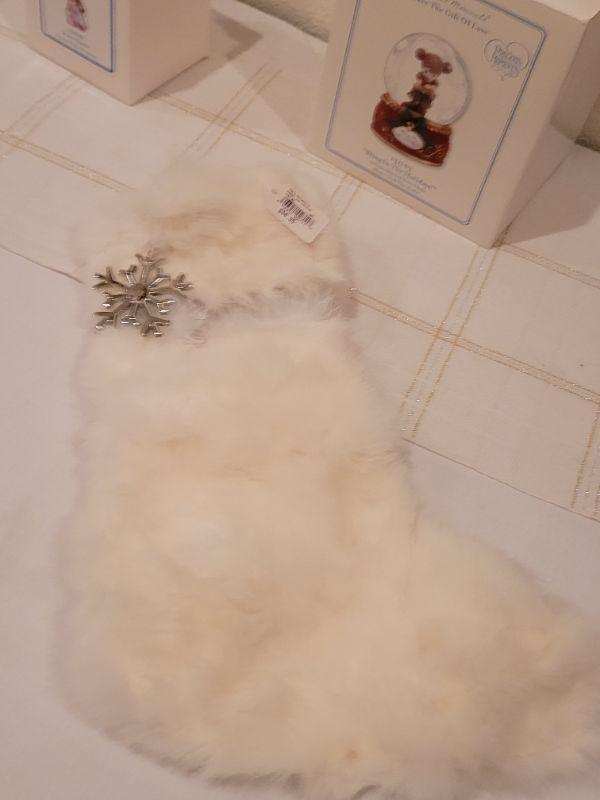 Lot 991: Rabbit Fur Stocking + Precious Moments Christmas Figures
