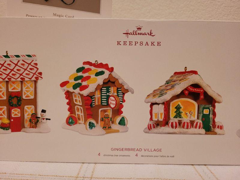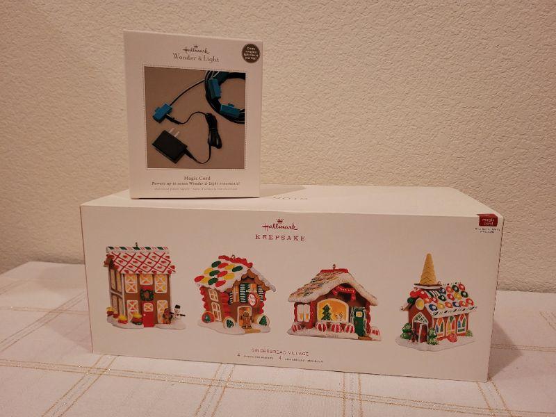 Lot 993: (4) Hallmark MAGIC CORD Synchronized Gingerbread Homes + NEW MAGIC CORD