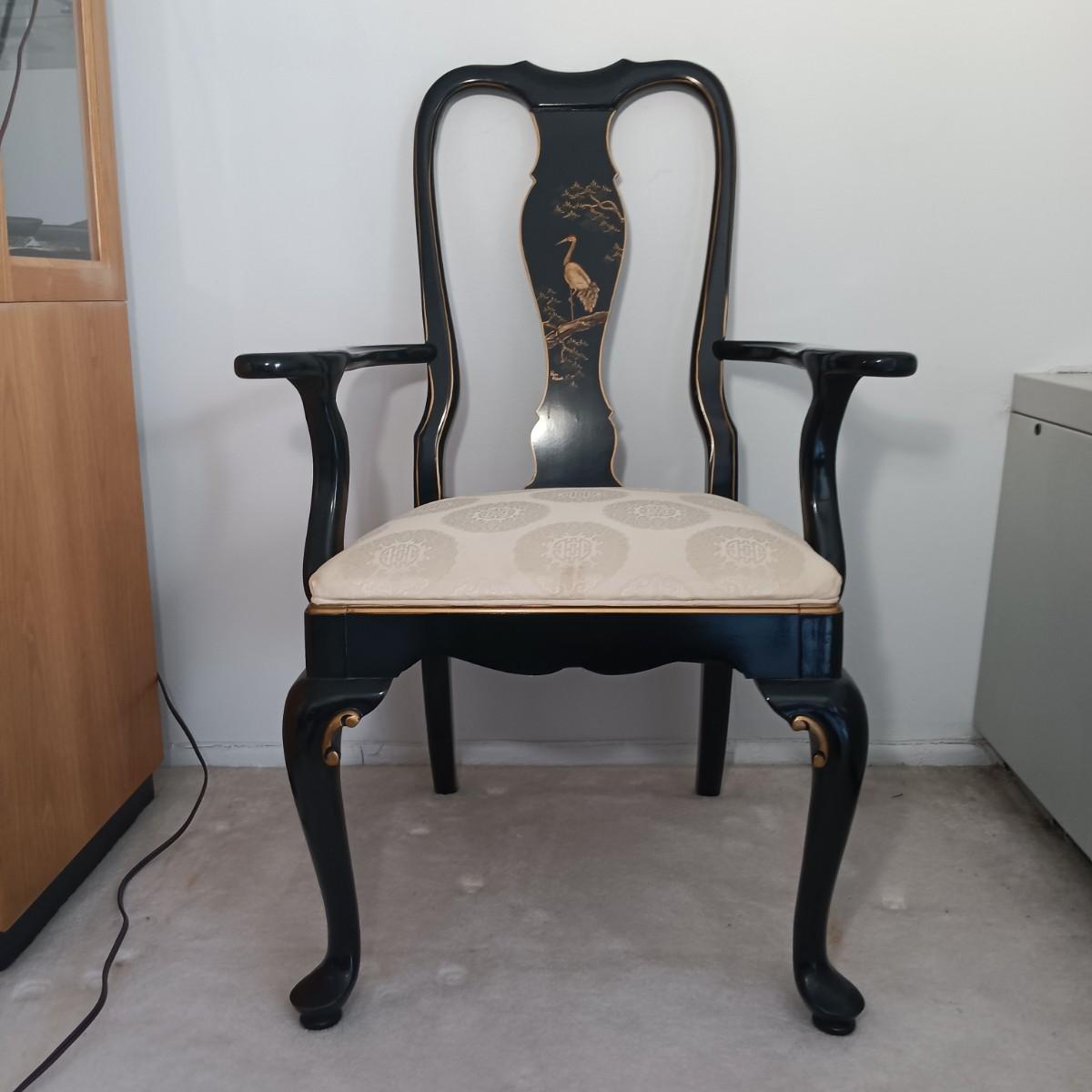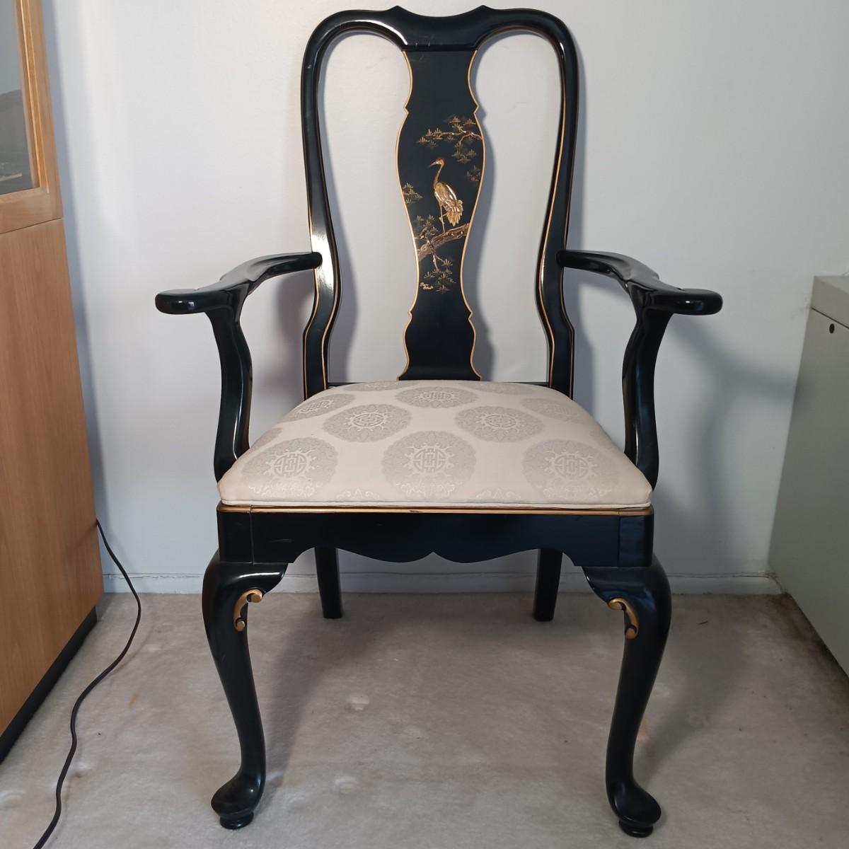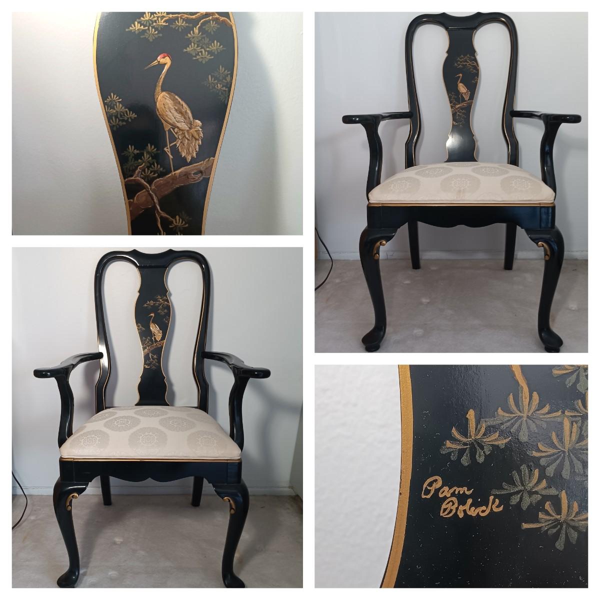 LOT 2L: Set of 2 Century Chair Co. Signed Black Lacquered Chairs with Crane Motif - Monday Pick-up