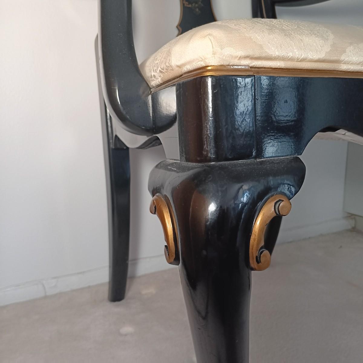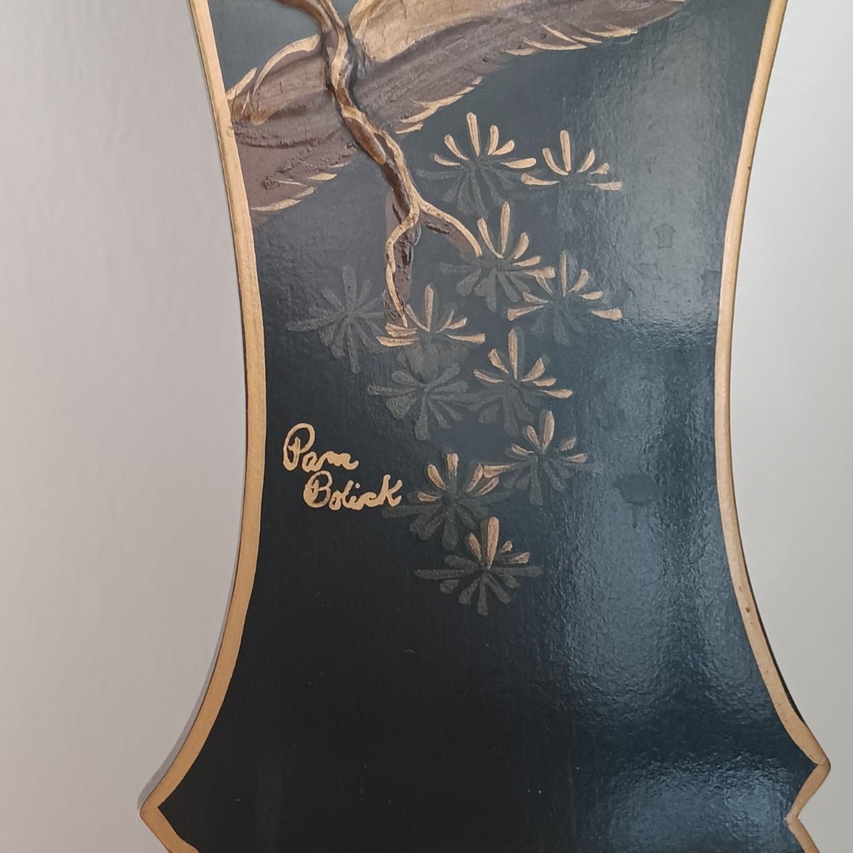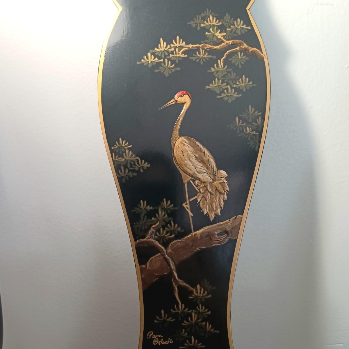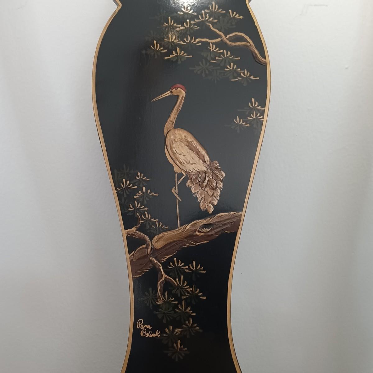 LOT 2L: Set of 2 Century Chair Co. Signed Black Lacquered Chairs with Crane Motif - Monday Pick-up