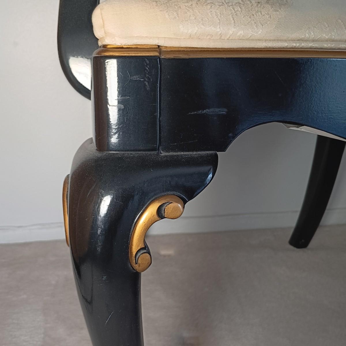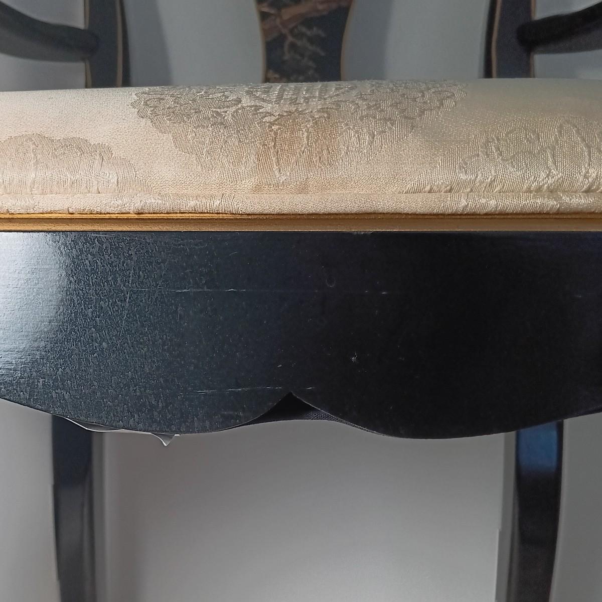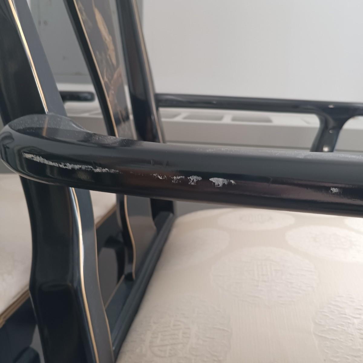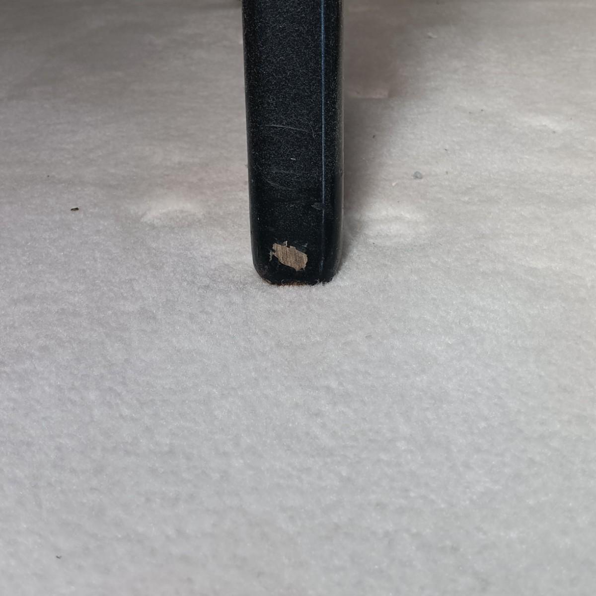 Chairs have some scuffs and scratches. Seats have some stains.