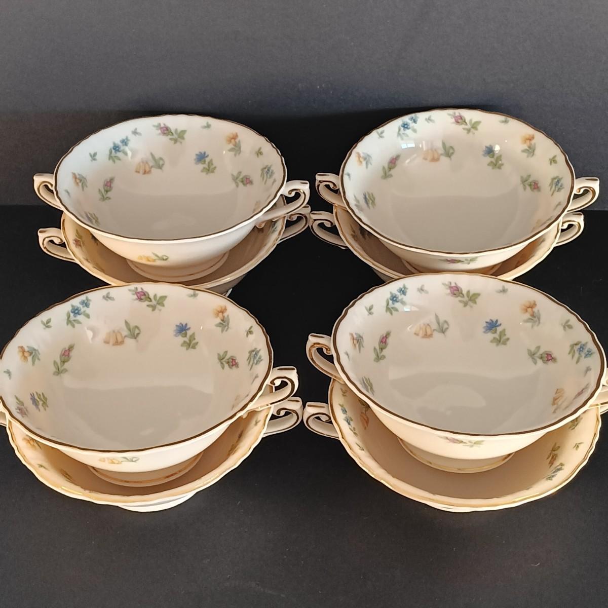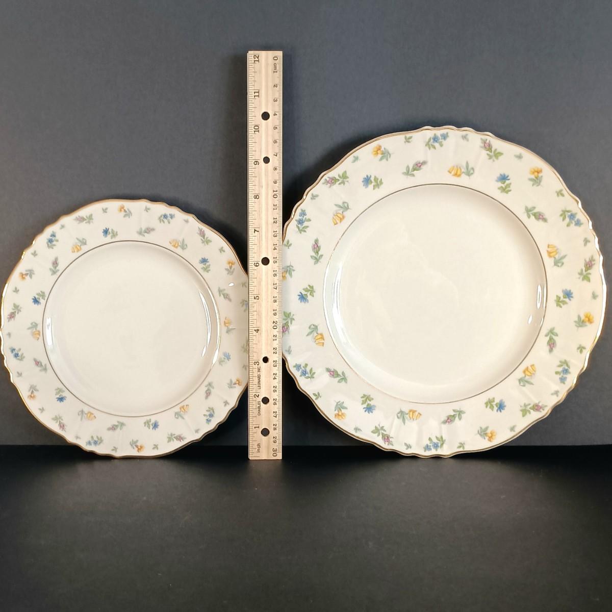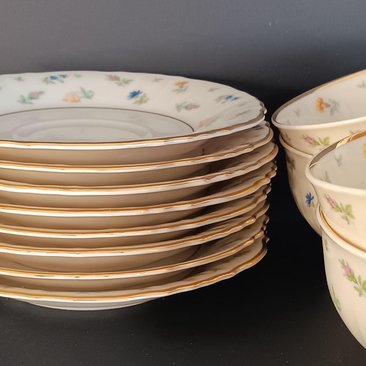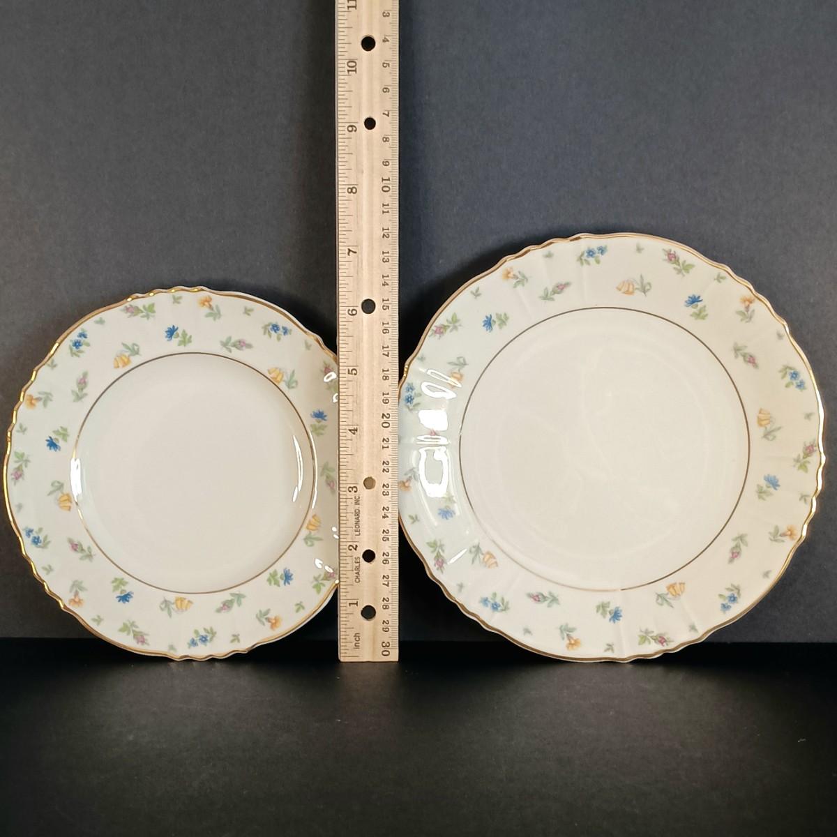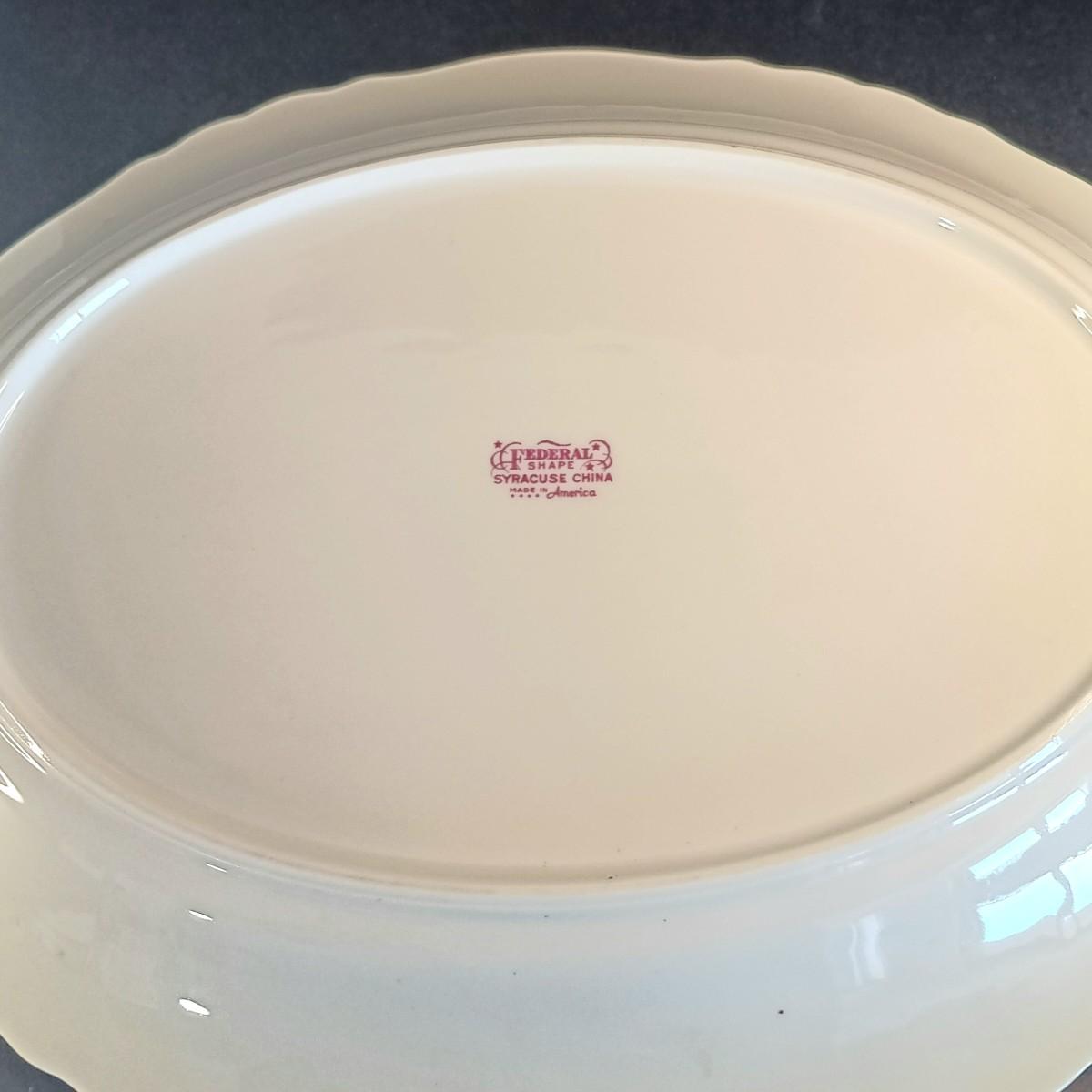 LOT 10L: Federal Shape Syracuse China with Gold Rimmed Wine Glasses