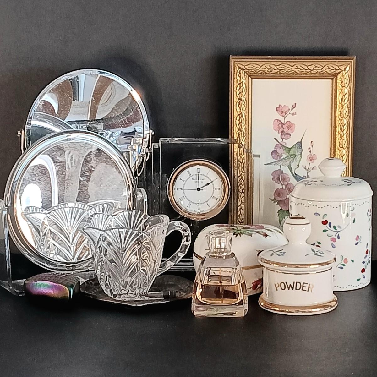 LOT 11L: Vanity Collection- Waterford Crystal Metropolitan Clock with Vera Wang and Prada Perfume, Carolyn Shores Wright Print & More