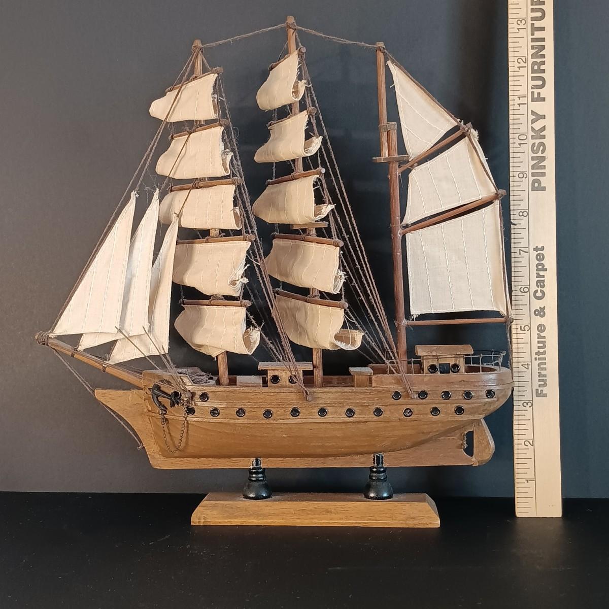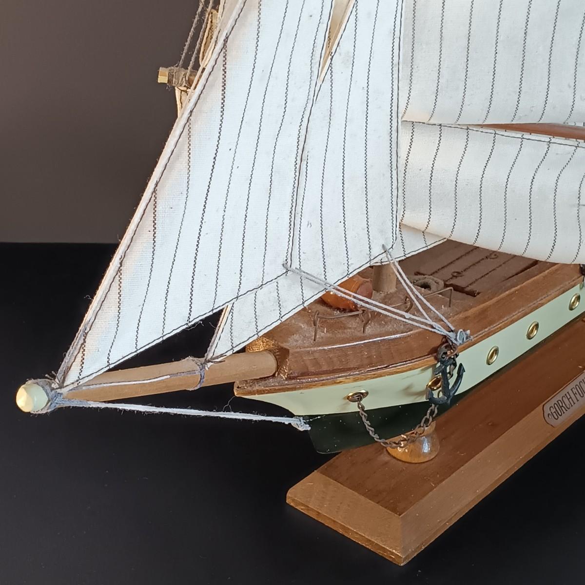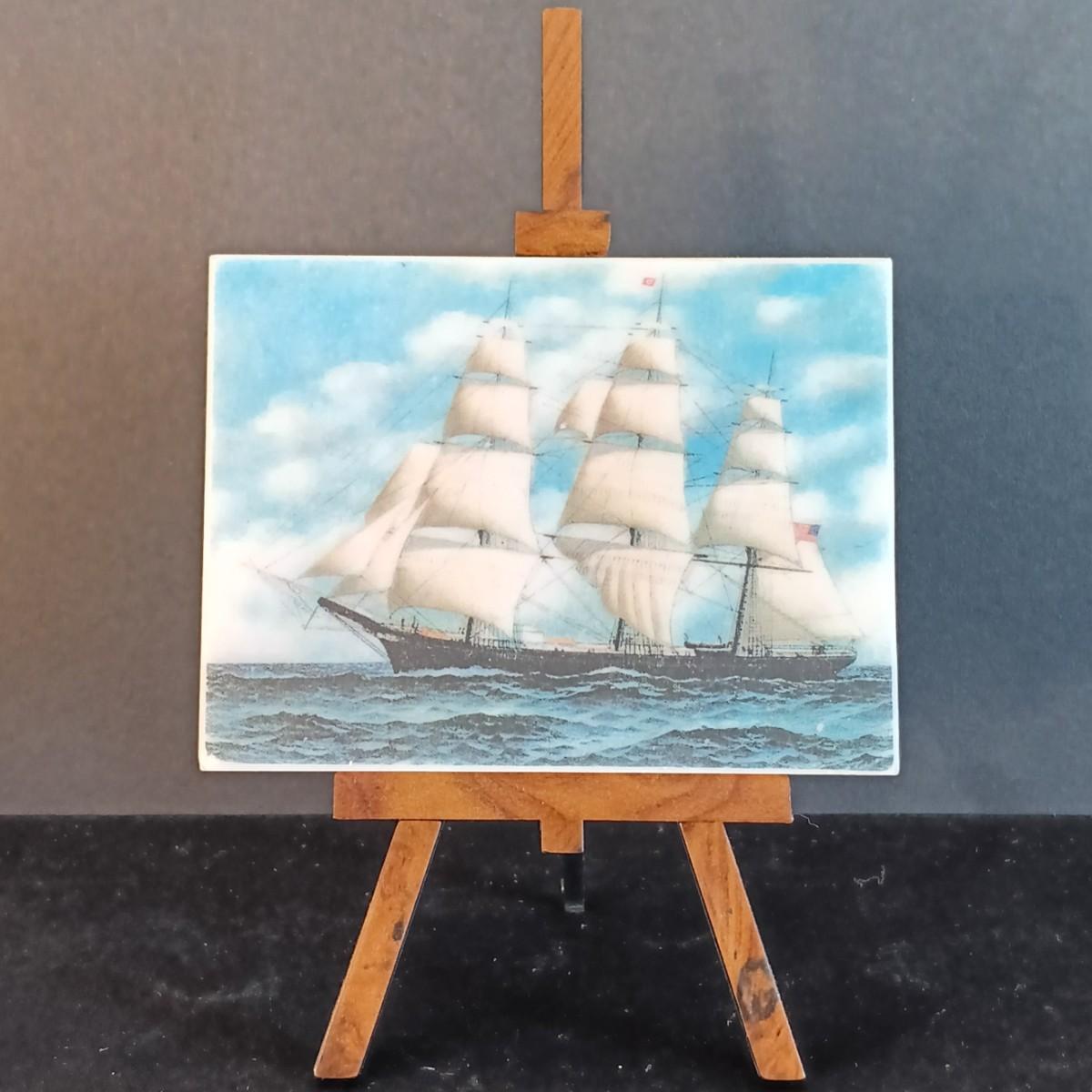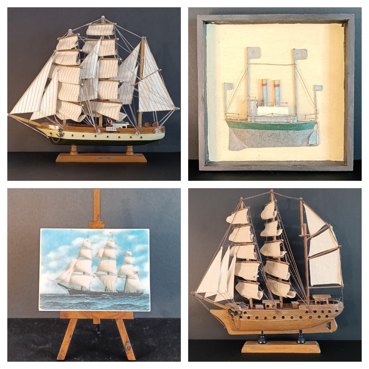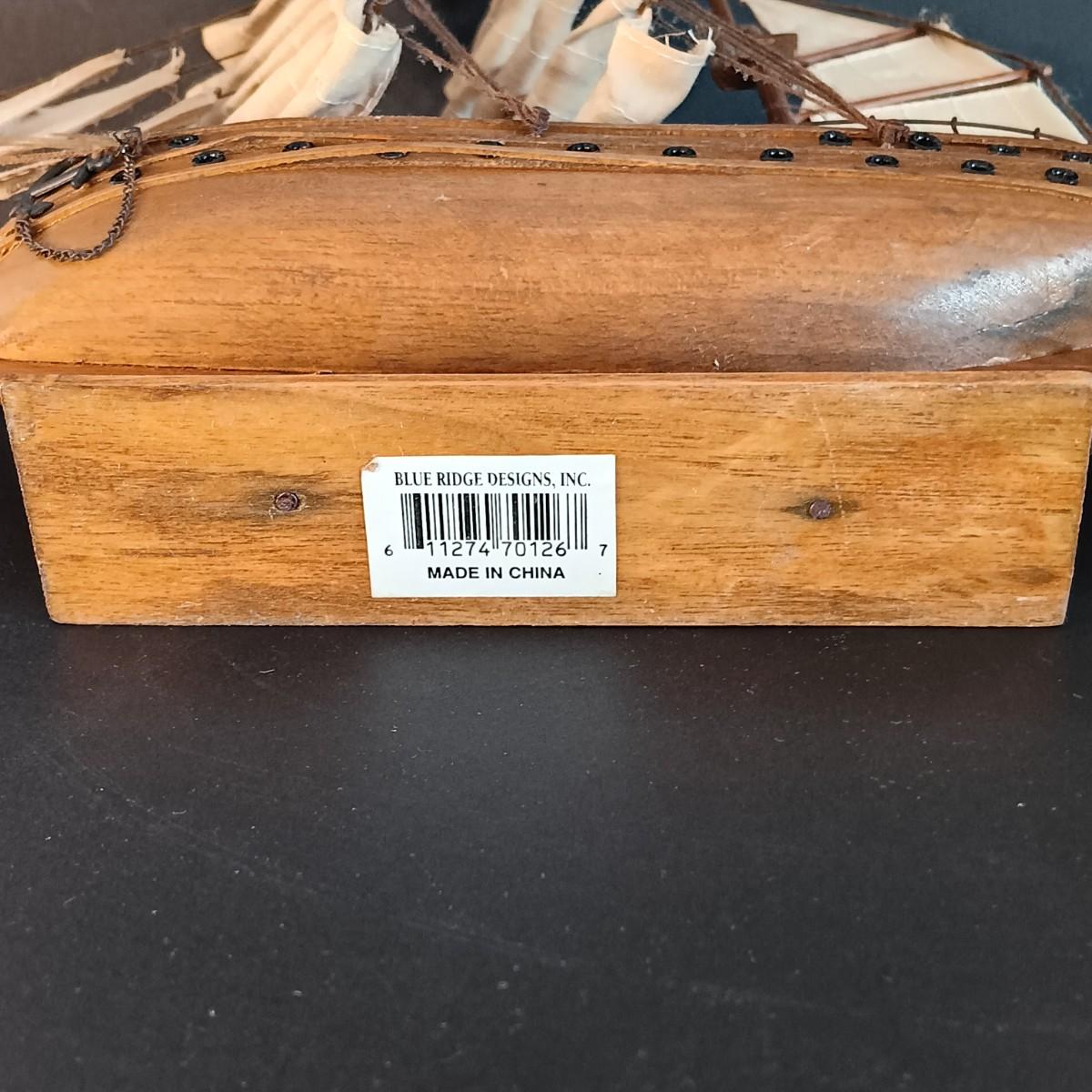 LOT 13L: Vintage Gorch Fock Wood Model Ship, Blue Ridge Designs Model Ship, Metal and Wood Ship Sign & Art Maker Print on Carrara Marble