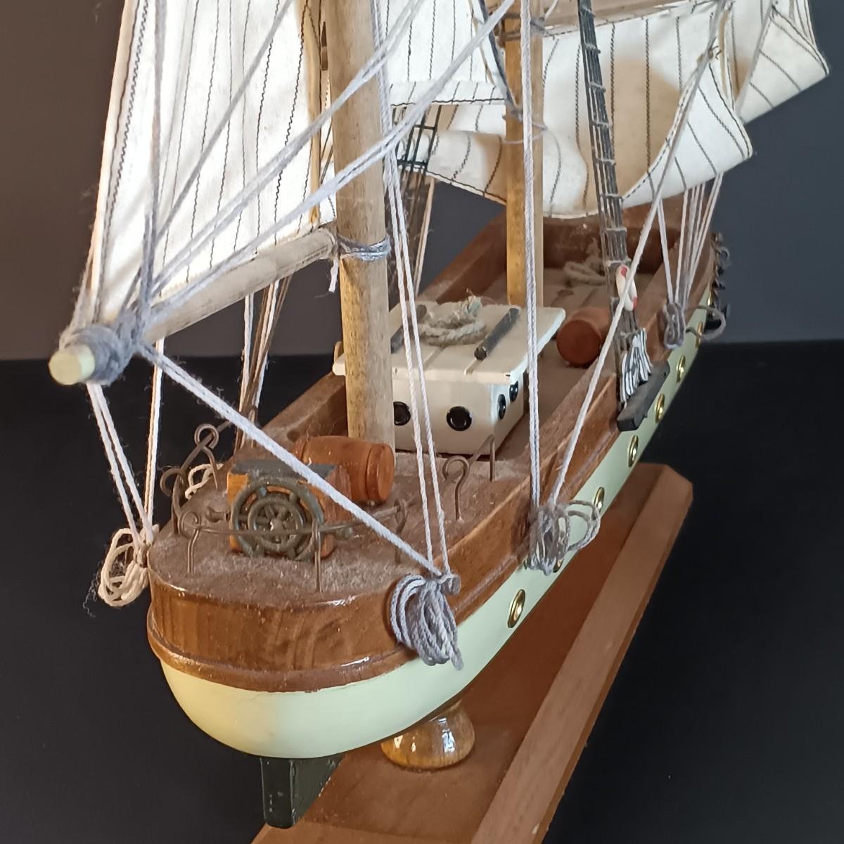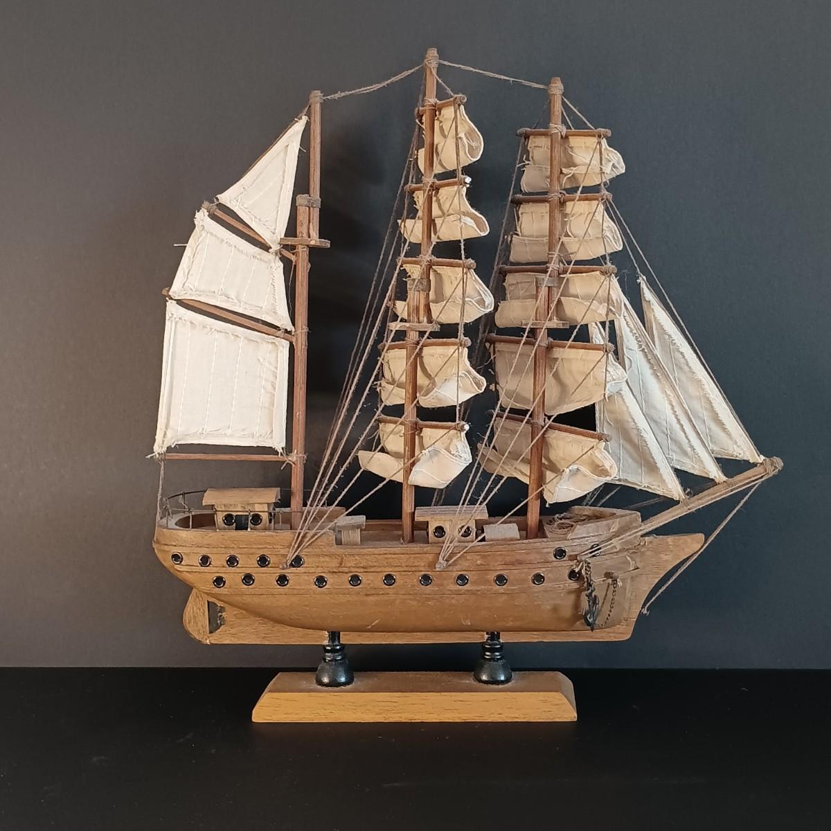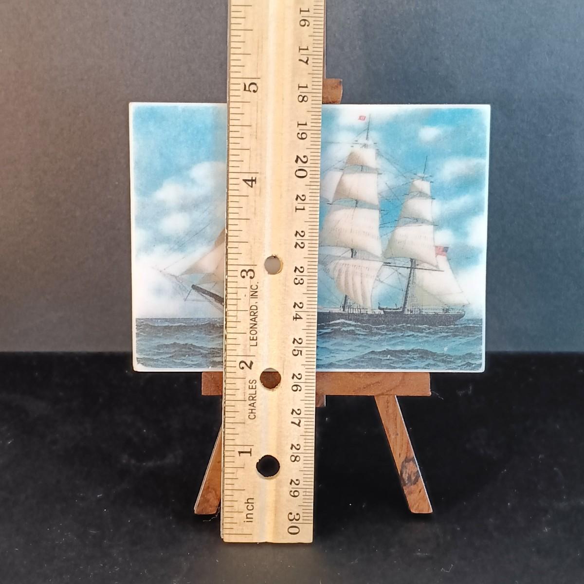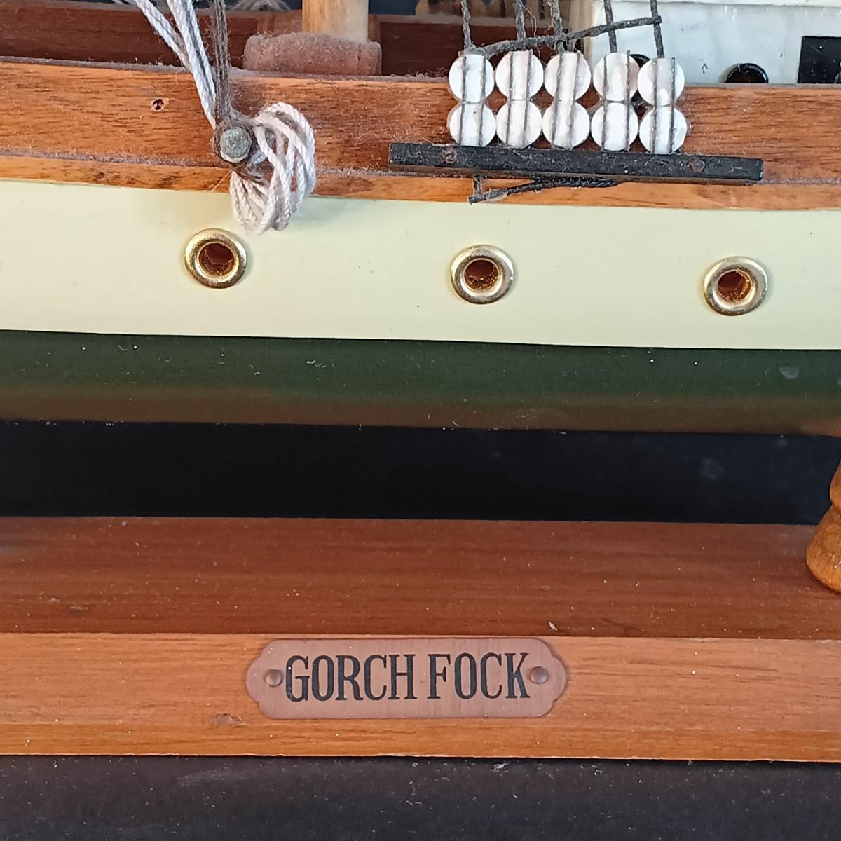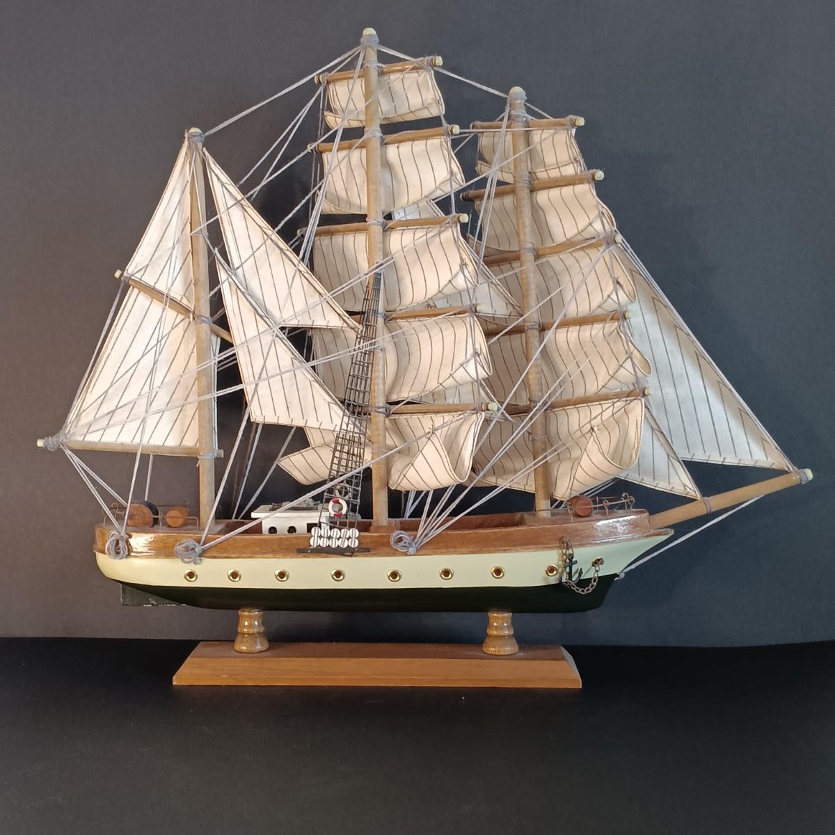 LOT 13L: Vintage Gorch Fock Wood Model Ship, Blue Ridge Designs Model Ship, Metal and Wood Ship Sign & Art Maker Print on Carrara Marble