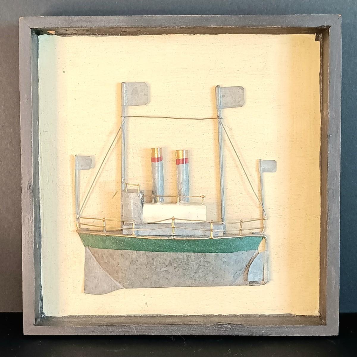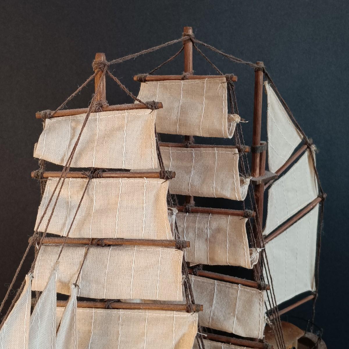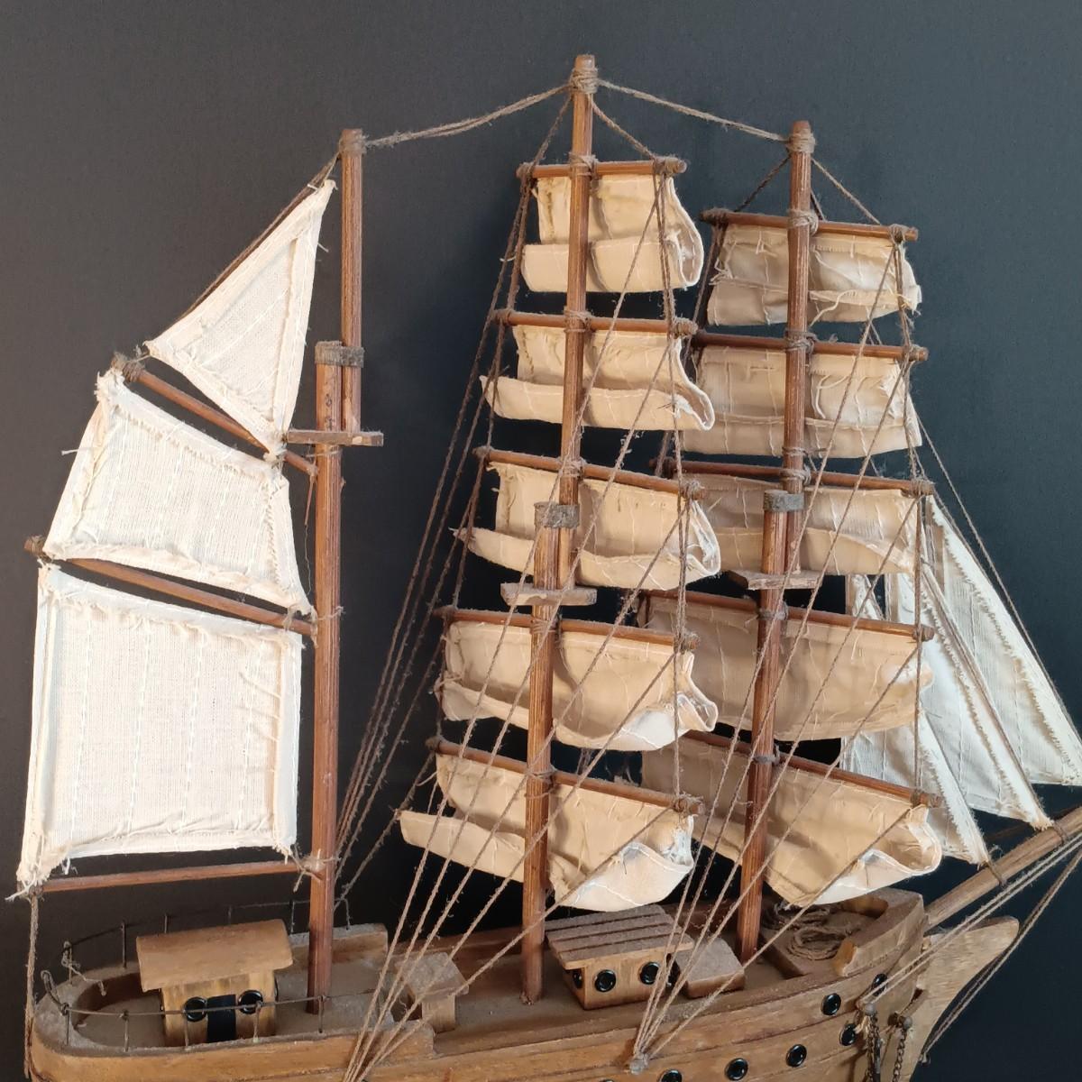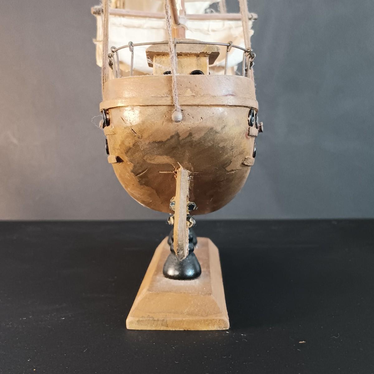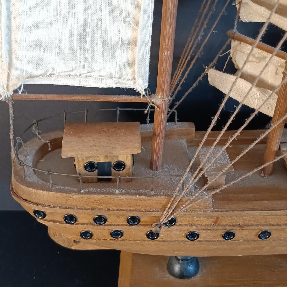LOT 13L: Vintage Gorch Fock Wood Model Ship, Blue Ridge Designs Model Ship, Metal and Wood Ship Sign & Art Maker Print on Carrara Marble