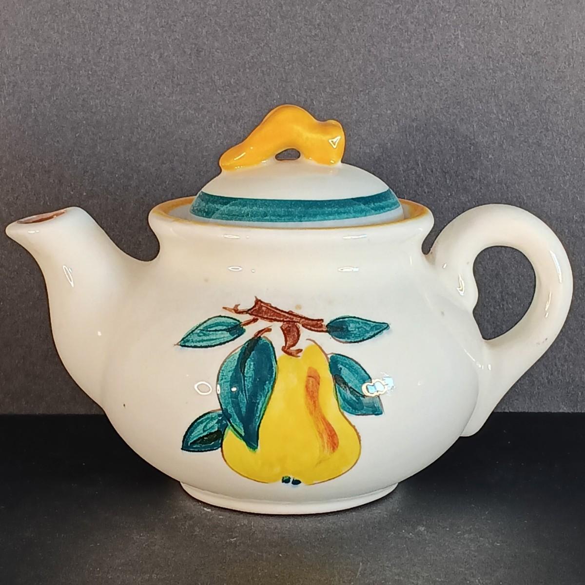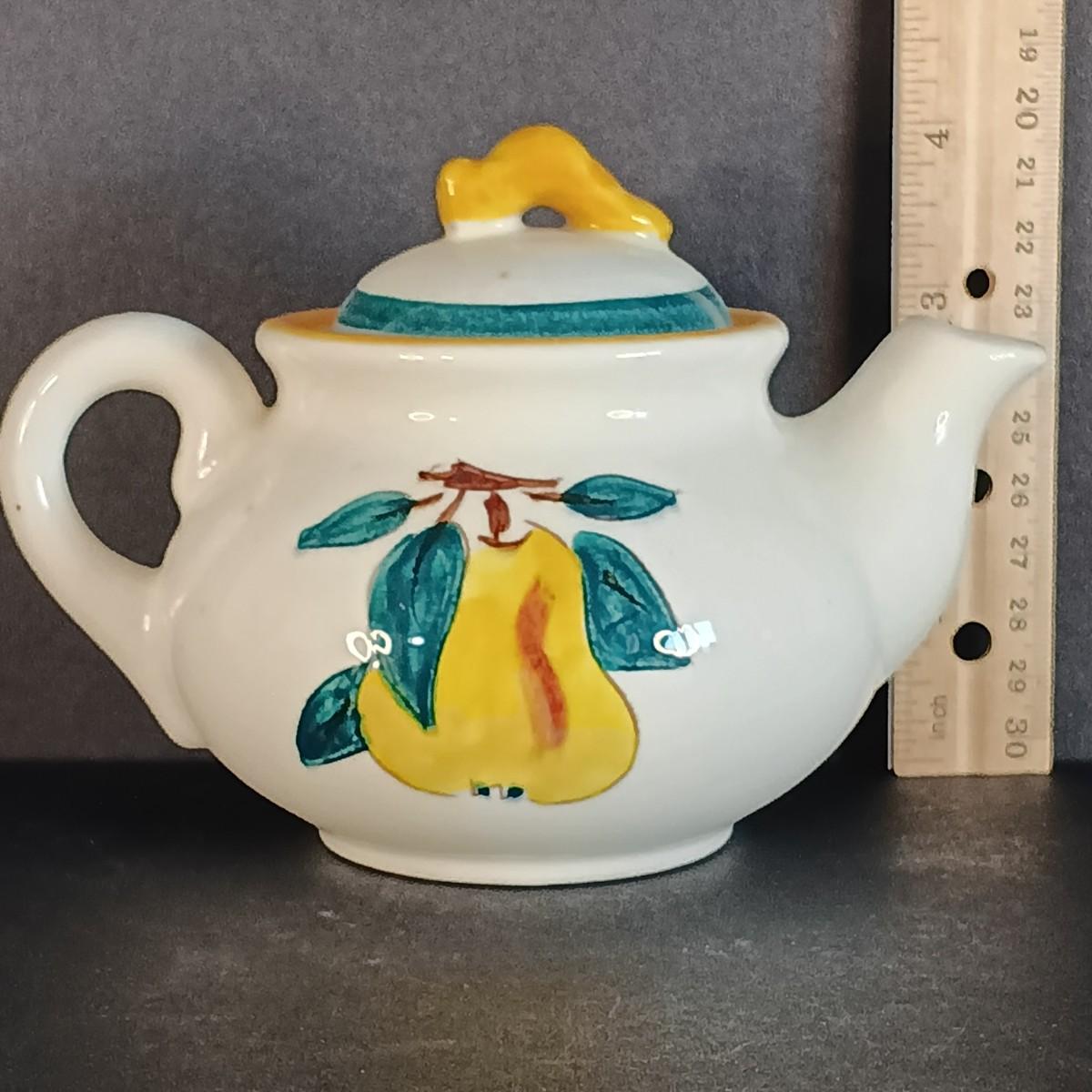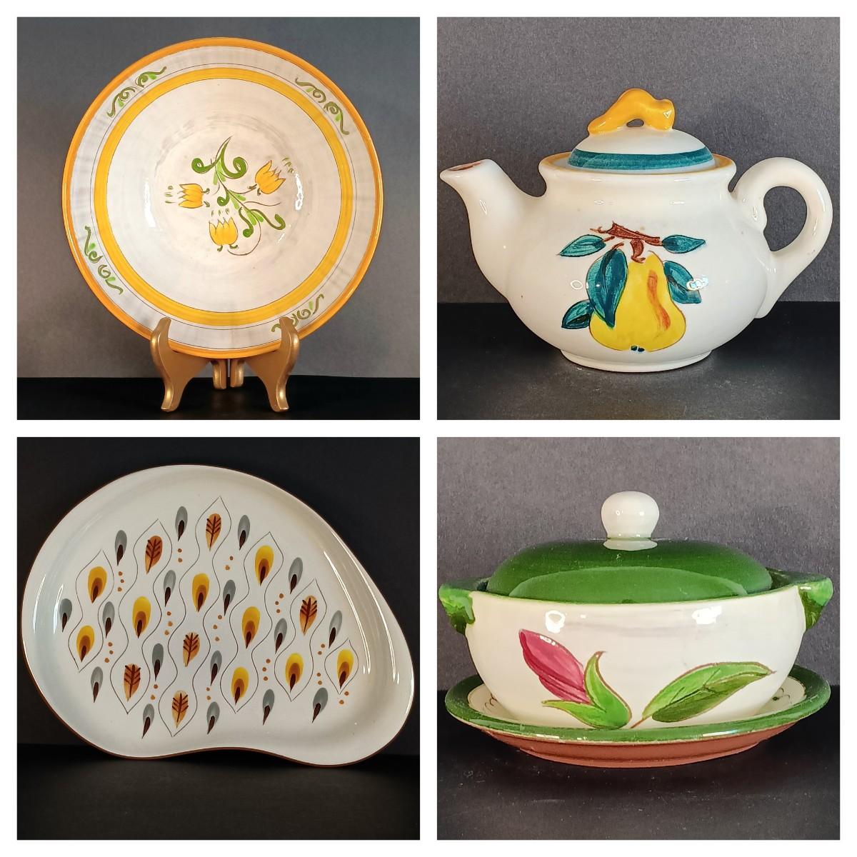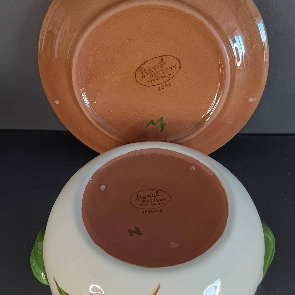 LOT 17C: Stangl Collection- Terra Rose Yellow Tulip Plate, Fruit Teapot, Amber Glo Plate & Tab Handled Dish