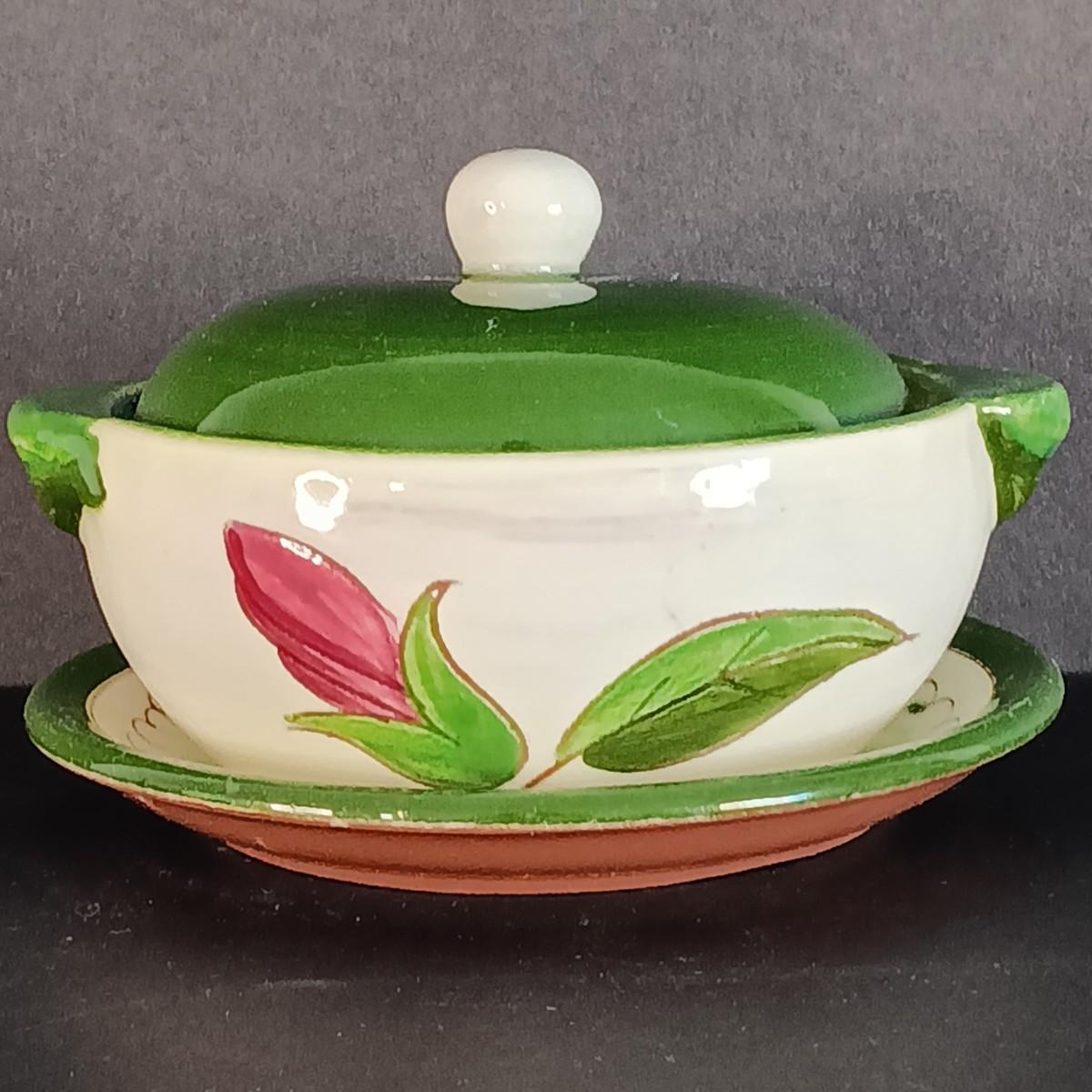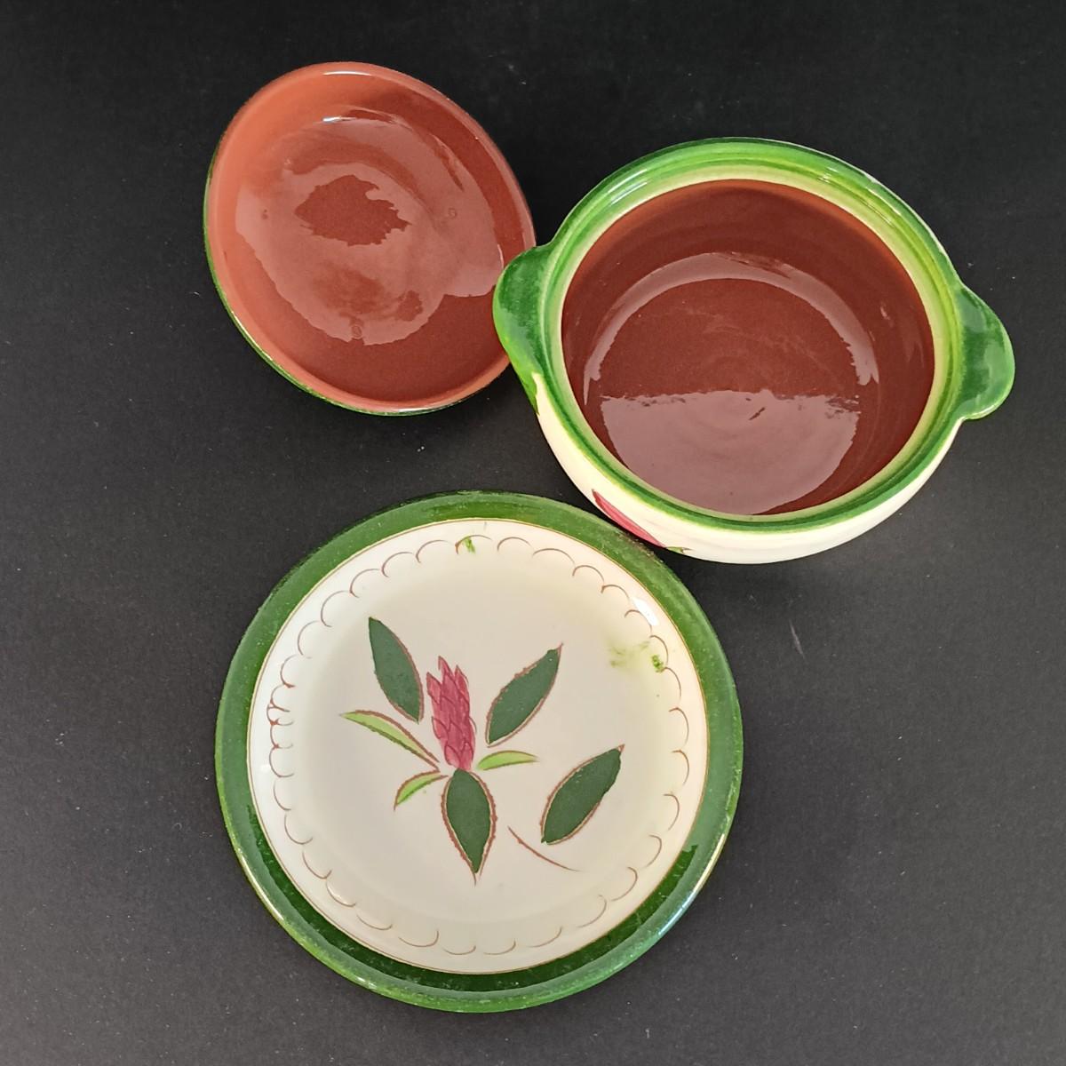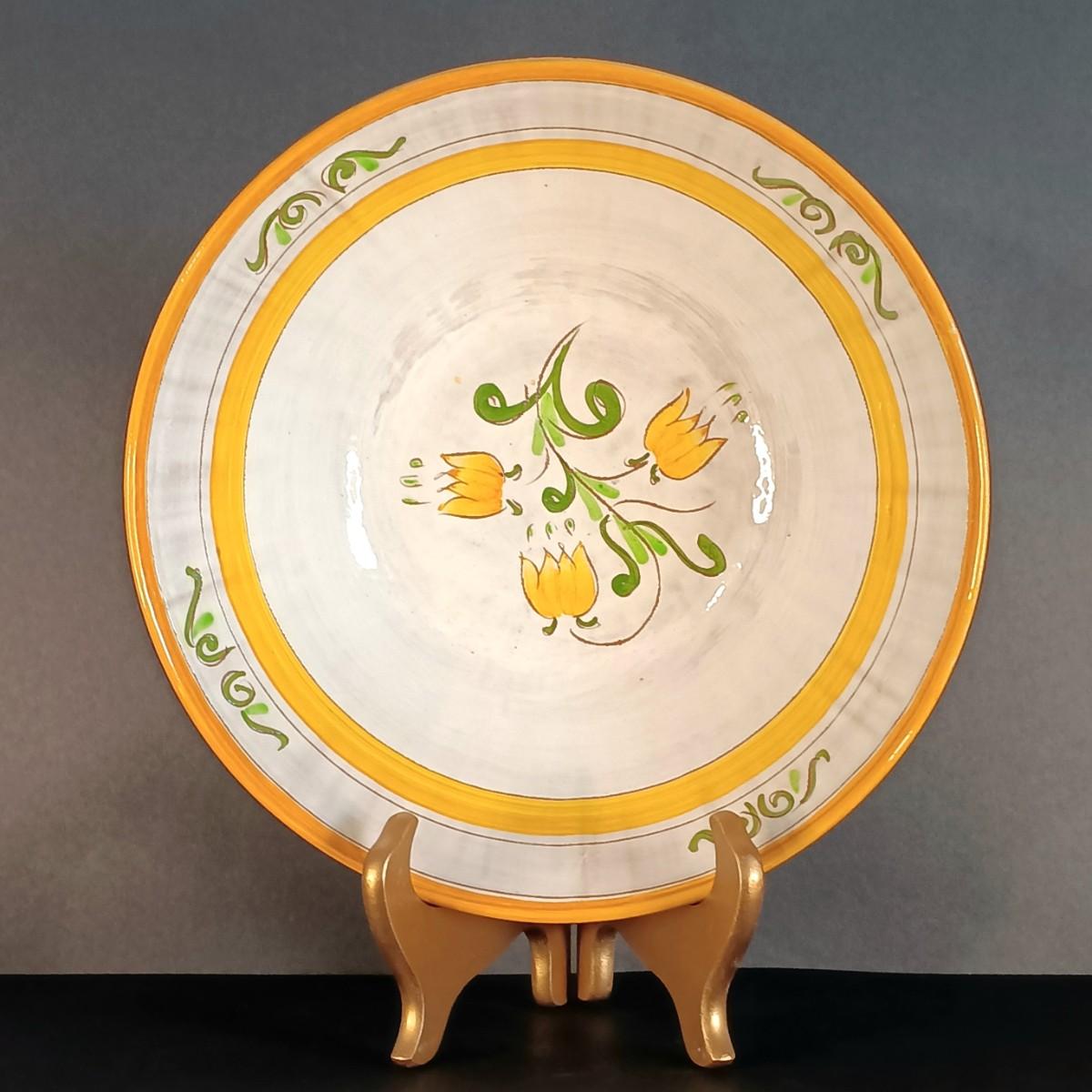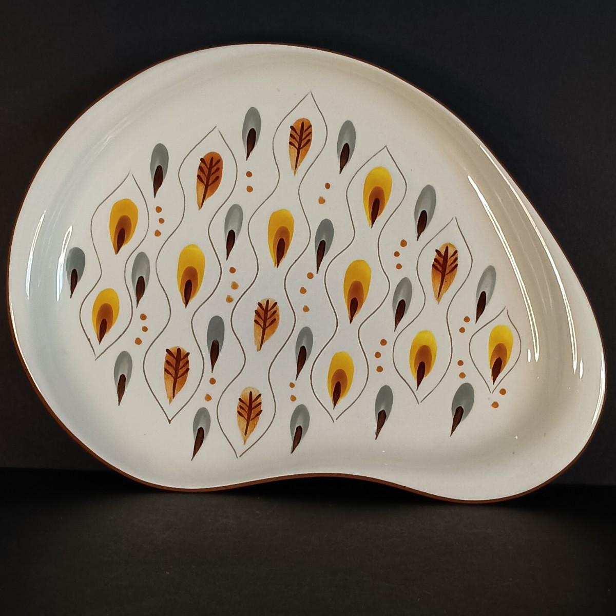 LOT 17C: Stangl Collection- Terra Rose Yellow Tulip Plate, Fruit Teapot, Amber Glo Plate & Tab Handled Dish