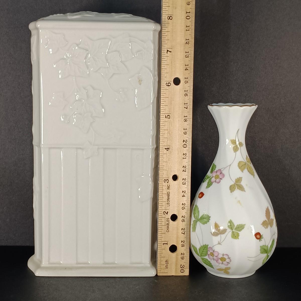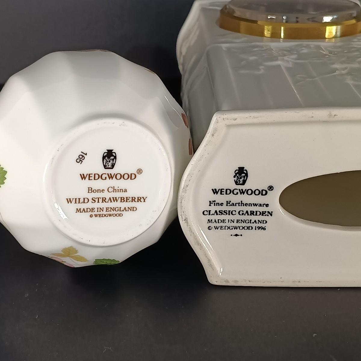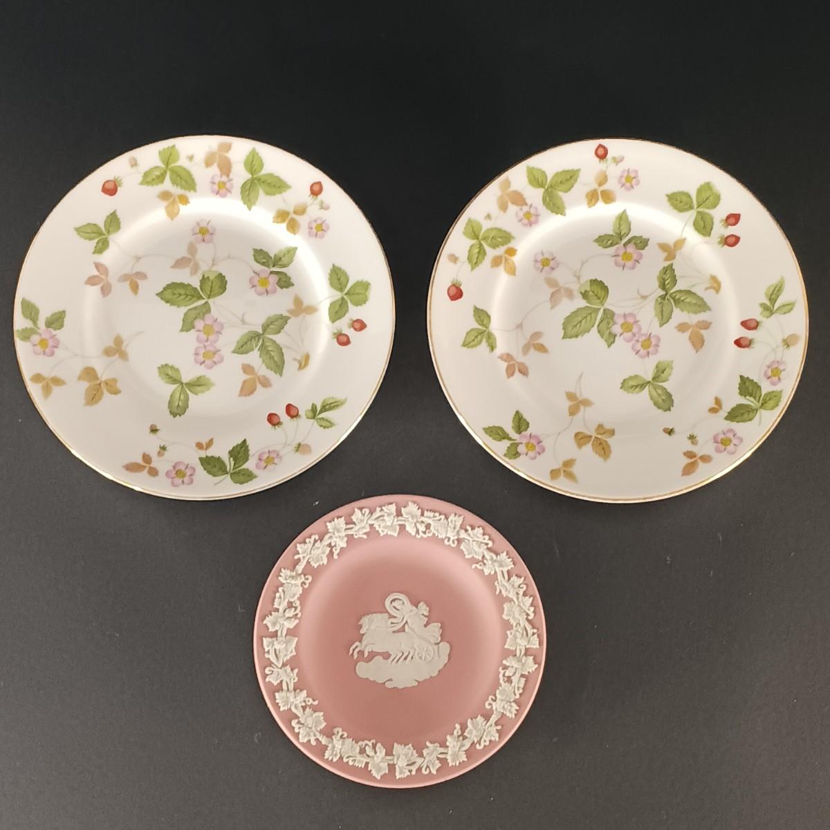 LOT 20K: Wedgewood Collection- Classic Garden Mantle Clock, Pink Trinket Tray & Wild Strawberry Vase, Clocks and Plates