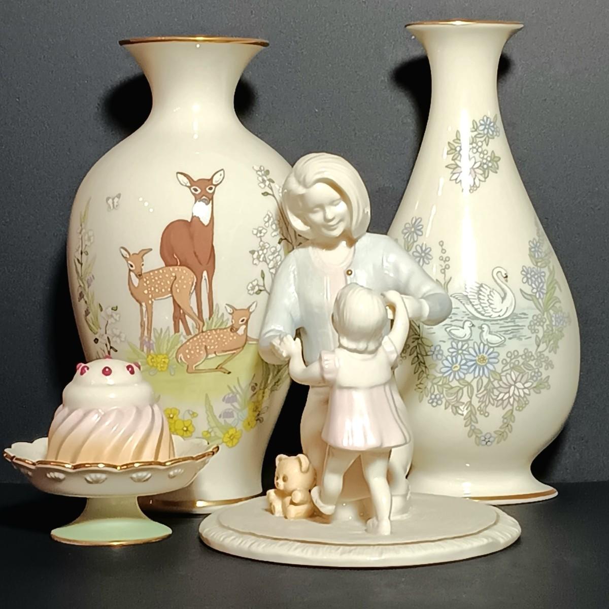 LOT 21K: Lenox Mother's Day Collection- 1983 & 1984 Vases, Her First Steps Figurine and Tea at the Ritz Trinket