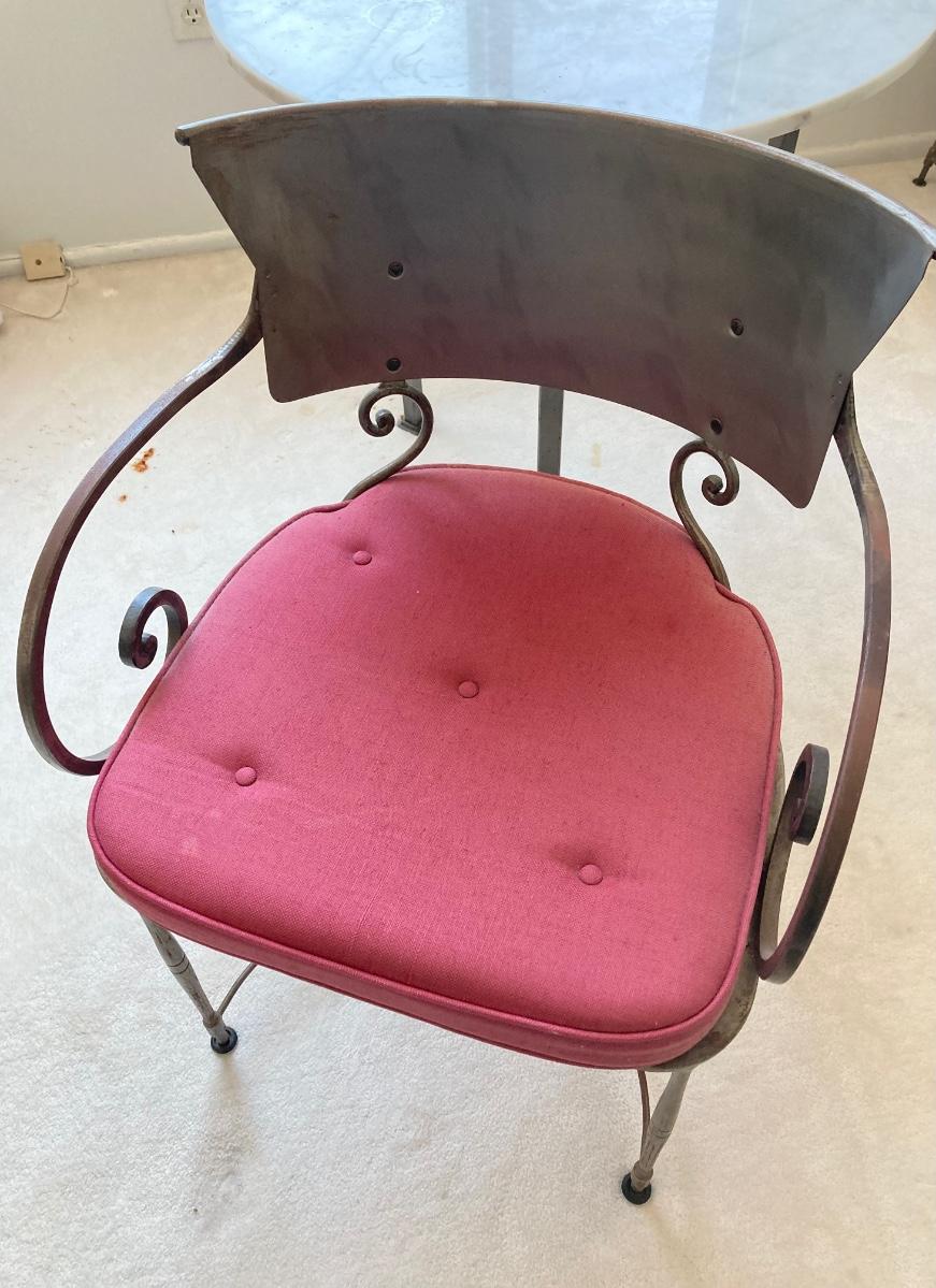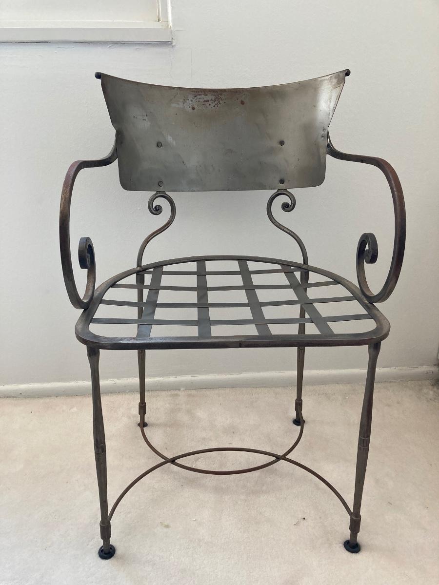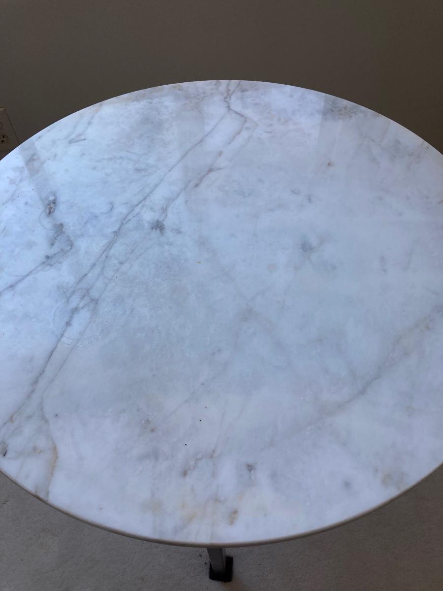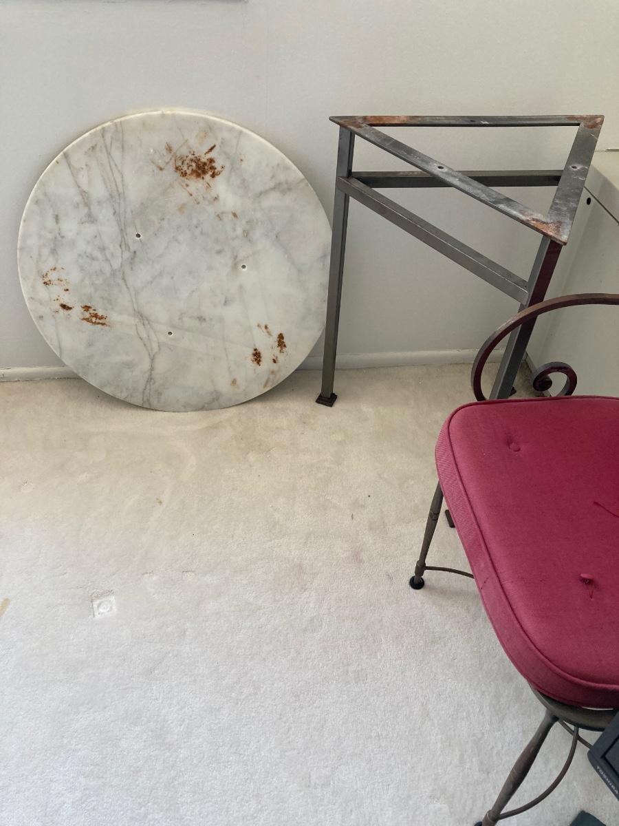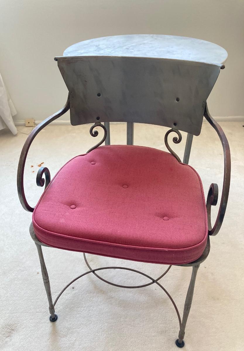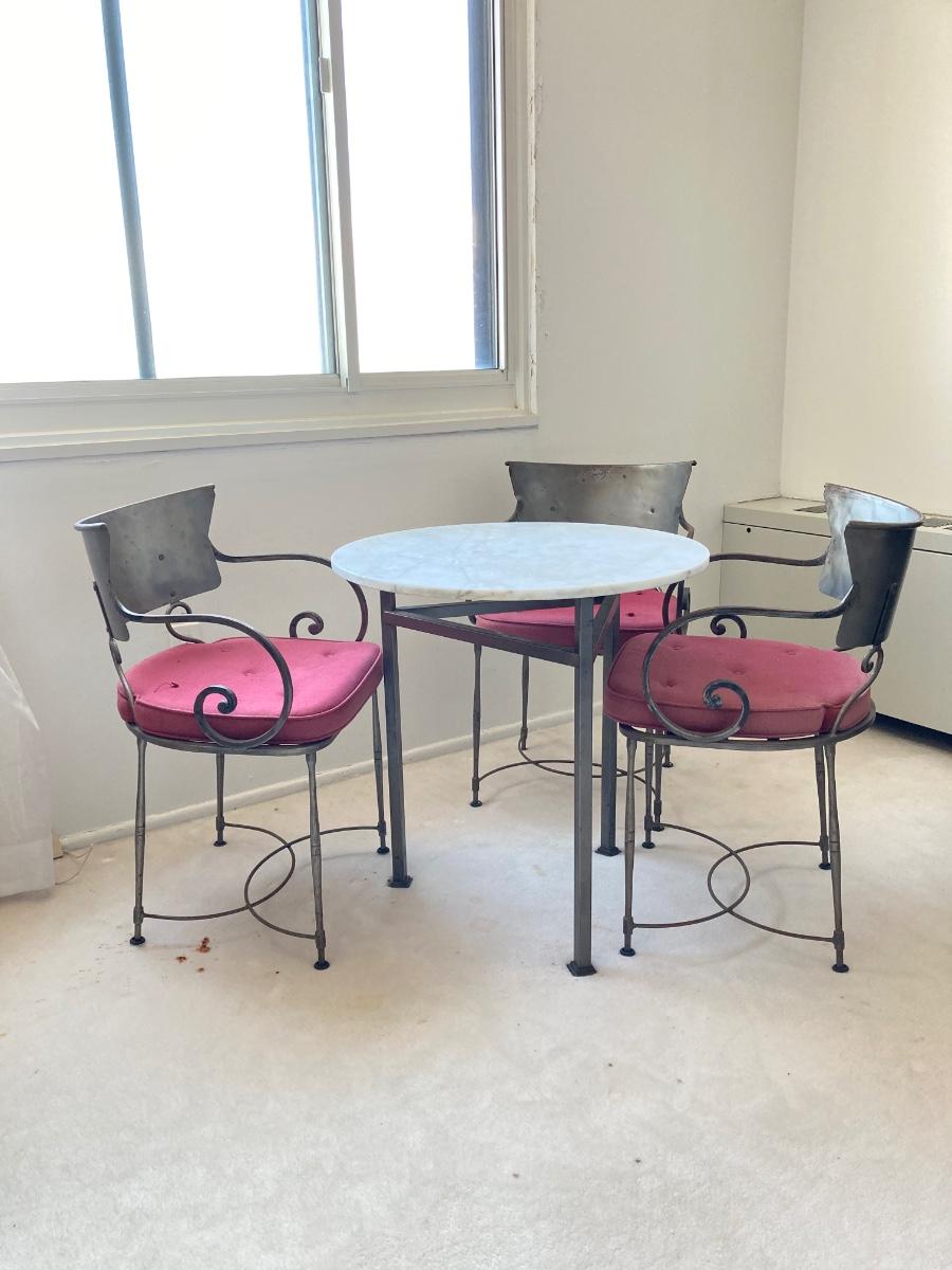 LOT 26B: Three Vintage Italy Steel Metal Scrolling Armchairs with Round Marble Top Table - Monday Pick-up