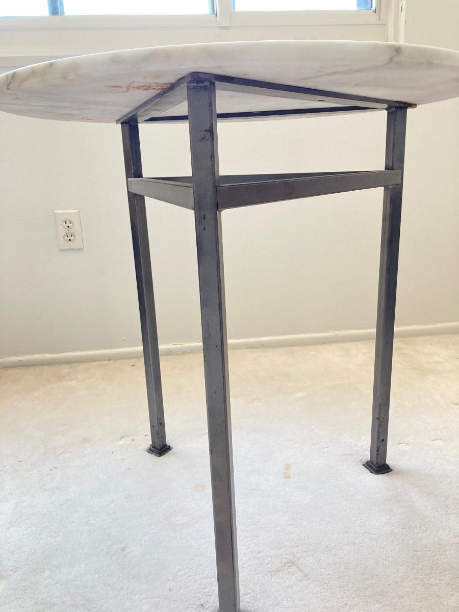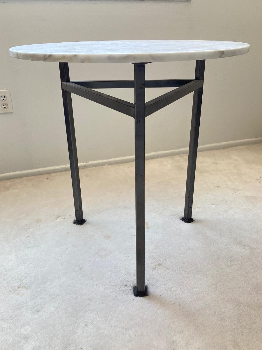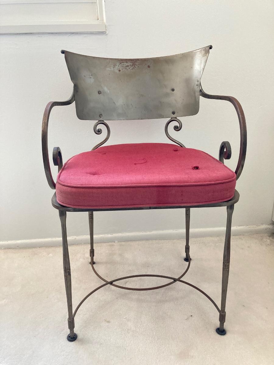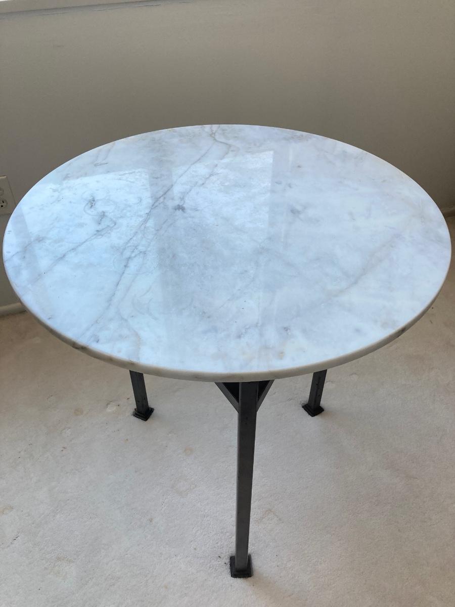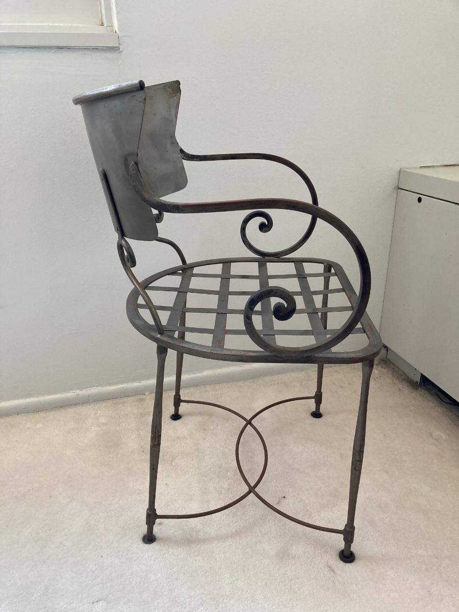 LOT 26B: Three Vintage Italy Steel Metal Scrolling Armchairs with Round Marble Top Table - Monday Pick-up