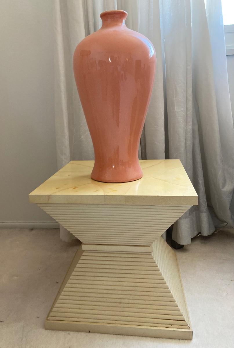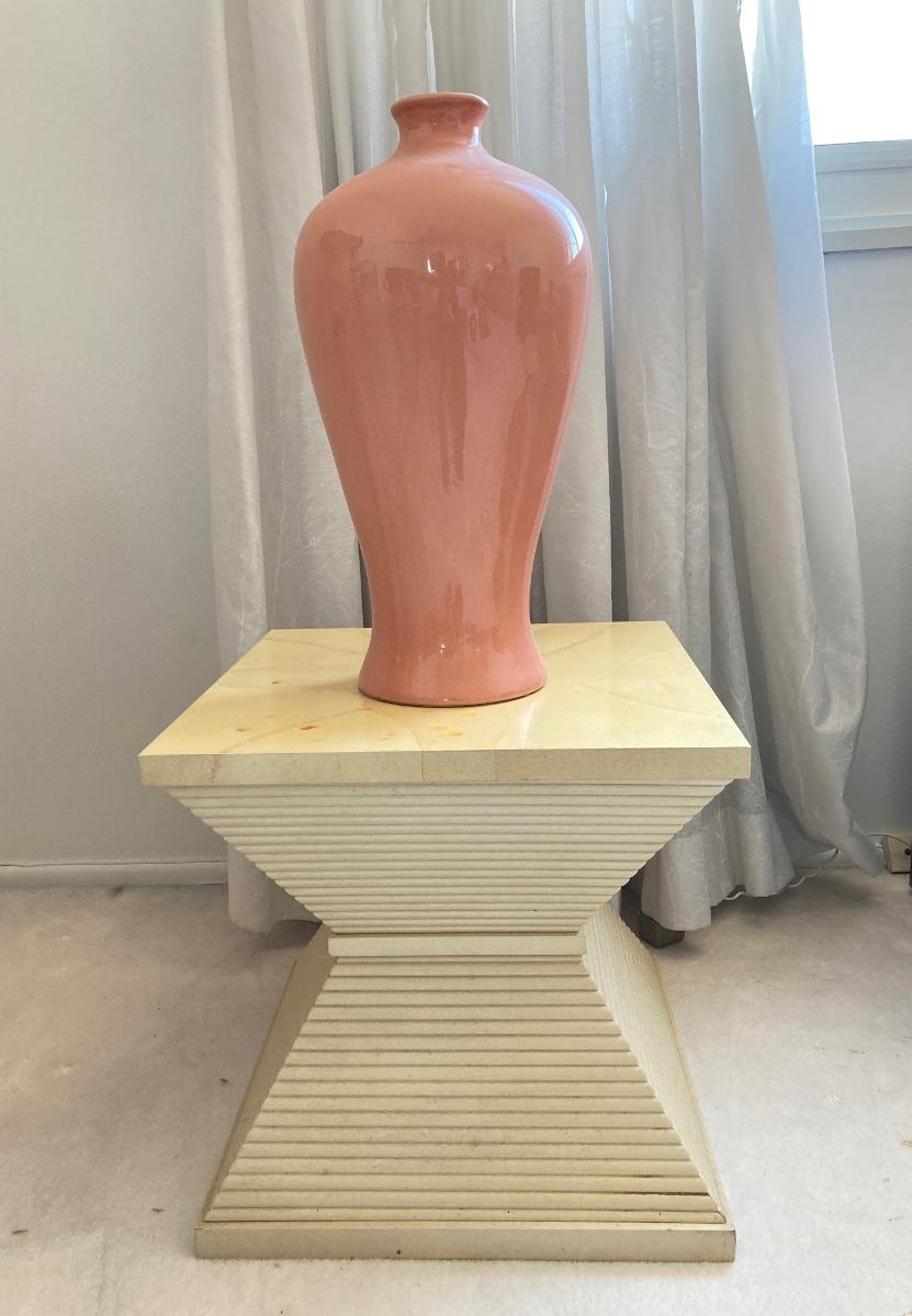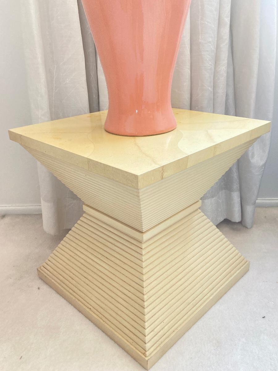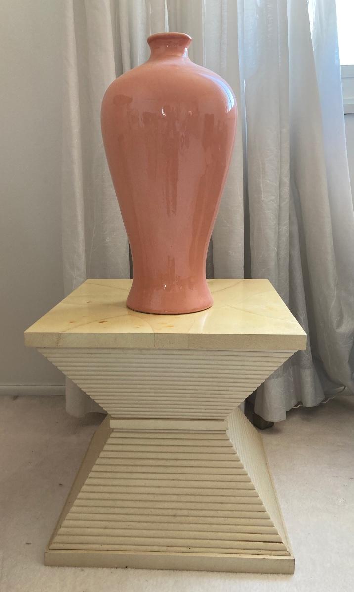 LOT 29B: Fluted Square Pedestal Table with Peach Colored Vase Monday Pick-up