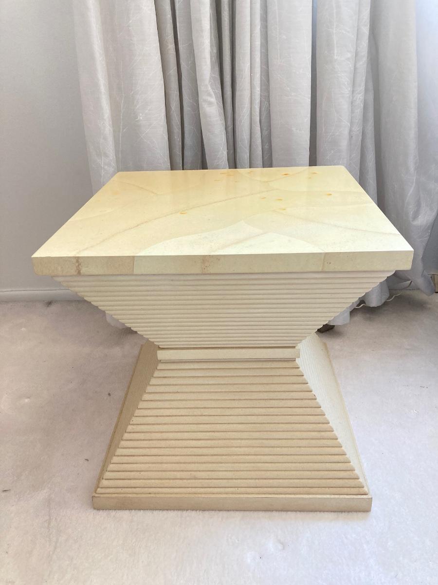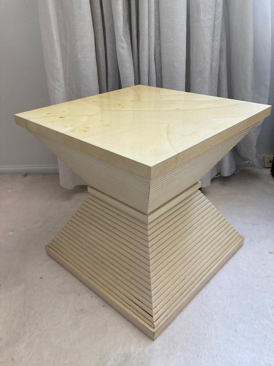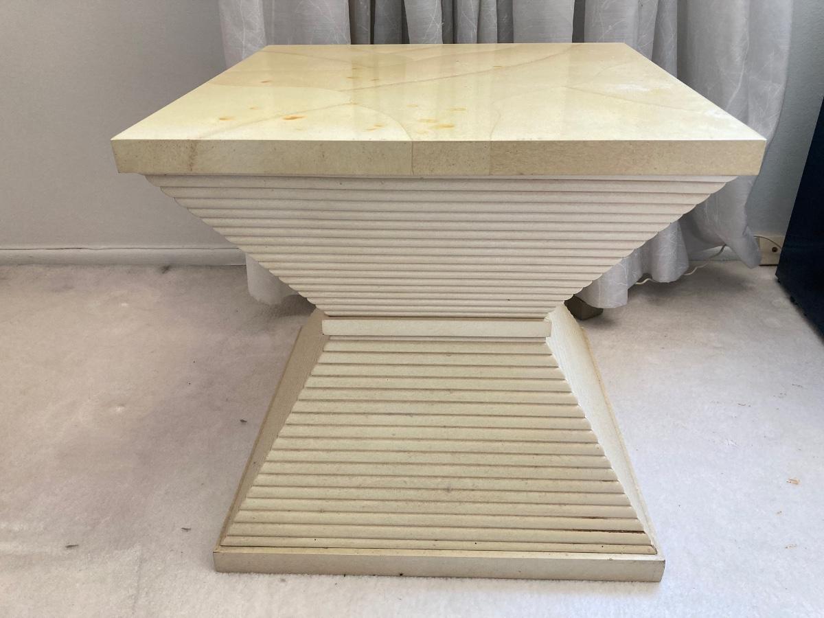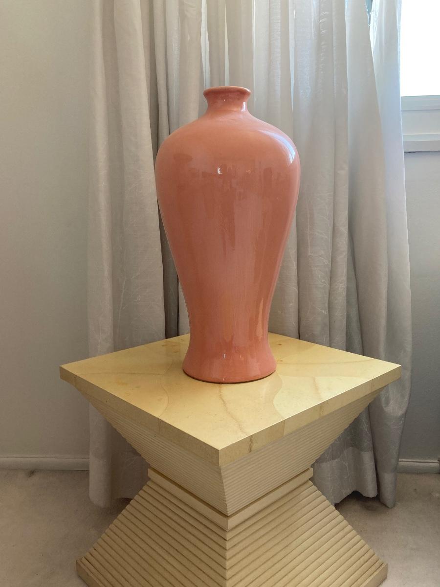 LOT 29B: Fluted Square Pedestal Table with Peach Colored Vase Monday Pick-up