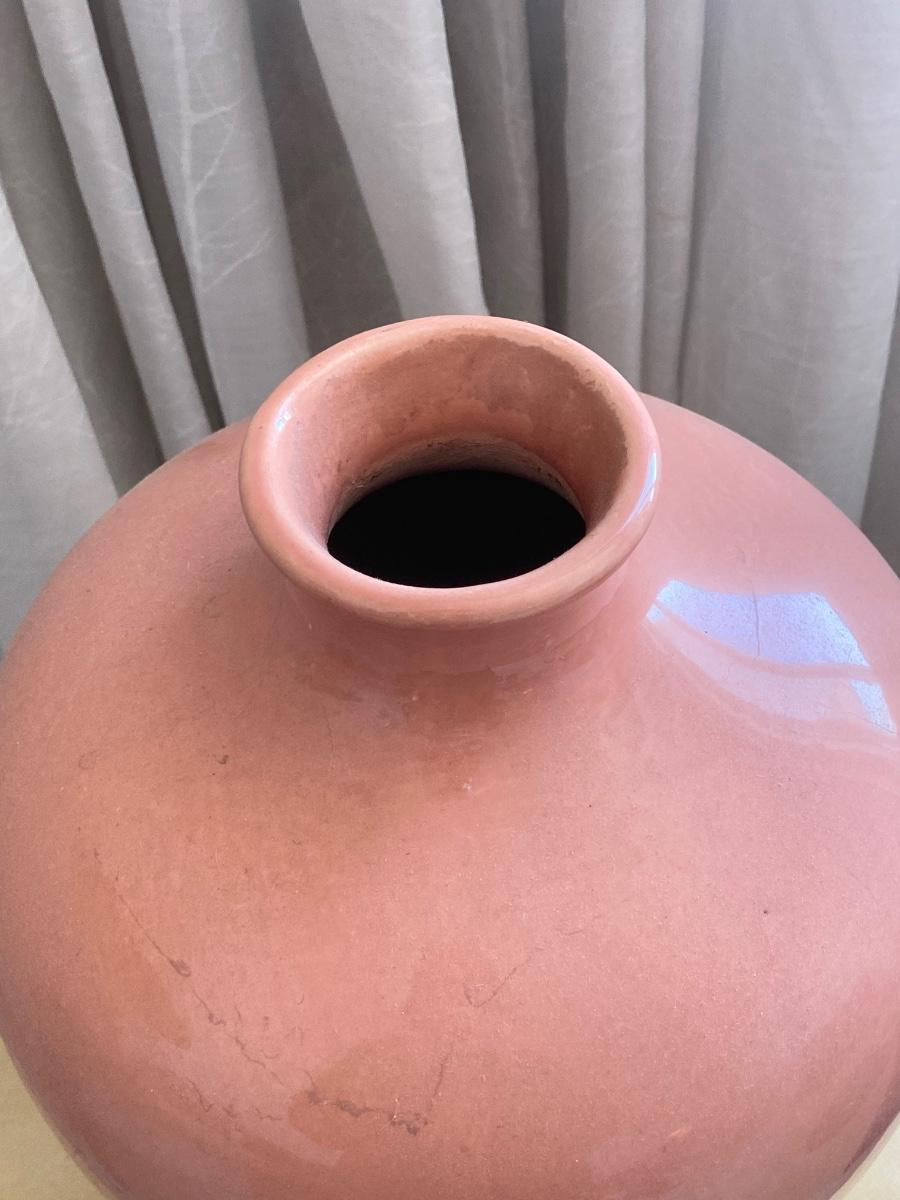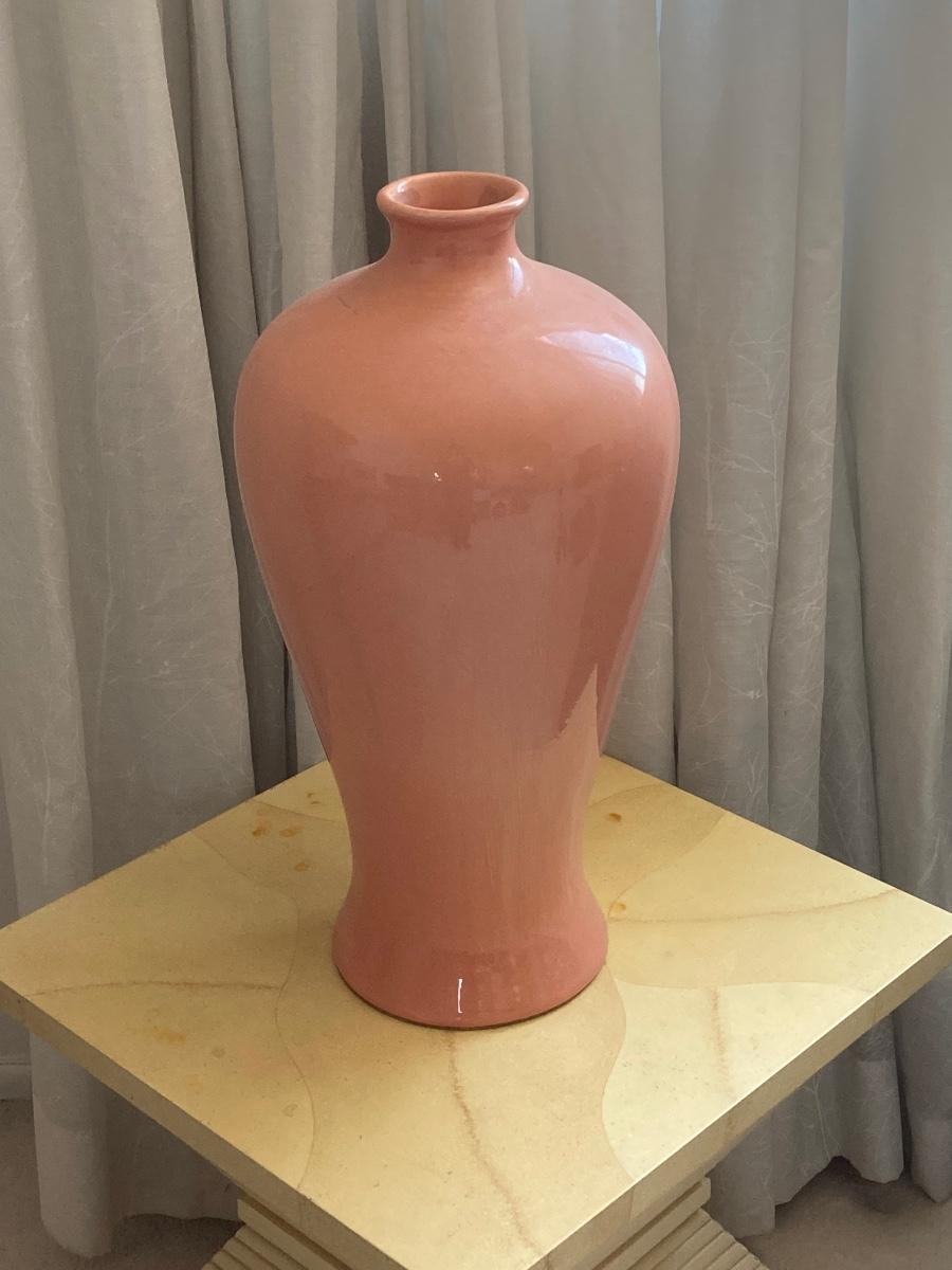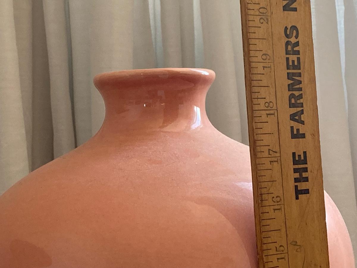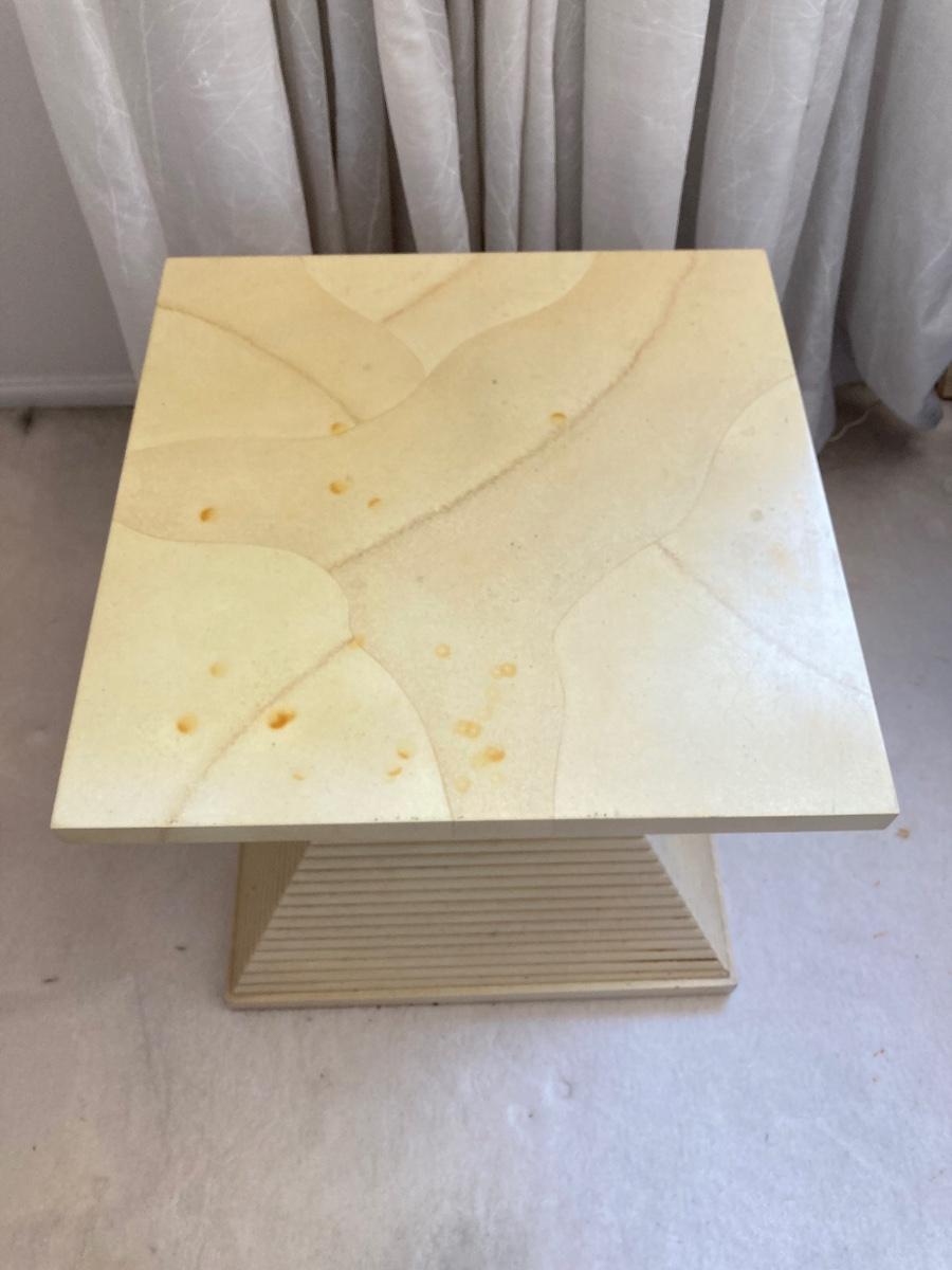 LOT 29B: Fluted Square Pedestal Table with Peach Colored Vase Monday Pick-up