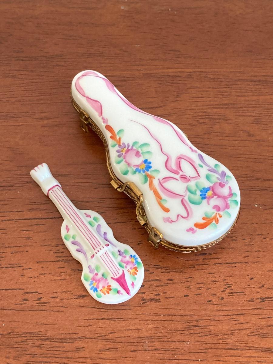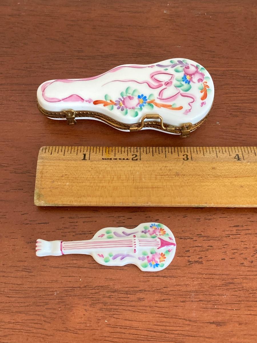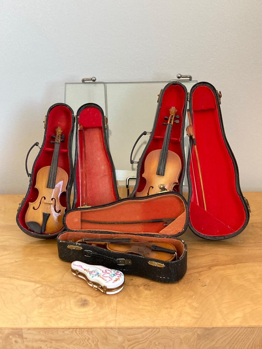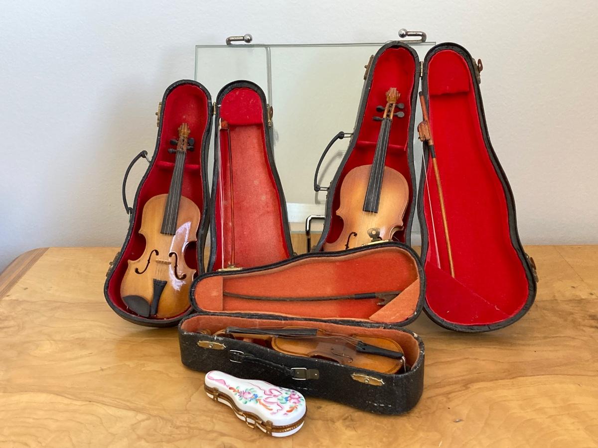 LOT 36B: Collection of Miniature Violins, Dubarry Limoges Violin and Case Trinket Box and Glass Picture Frame