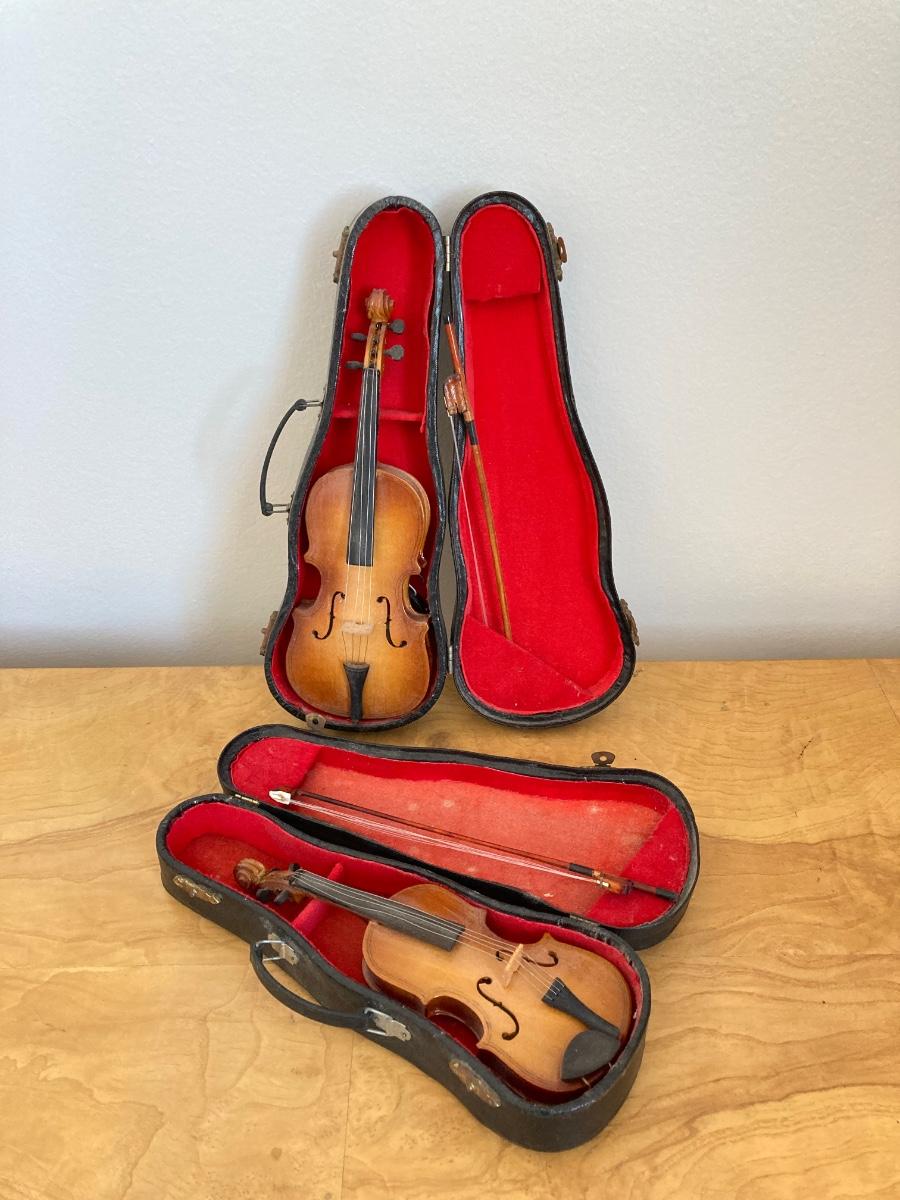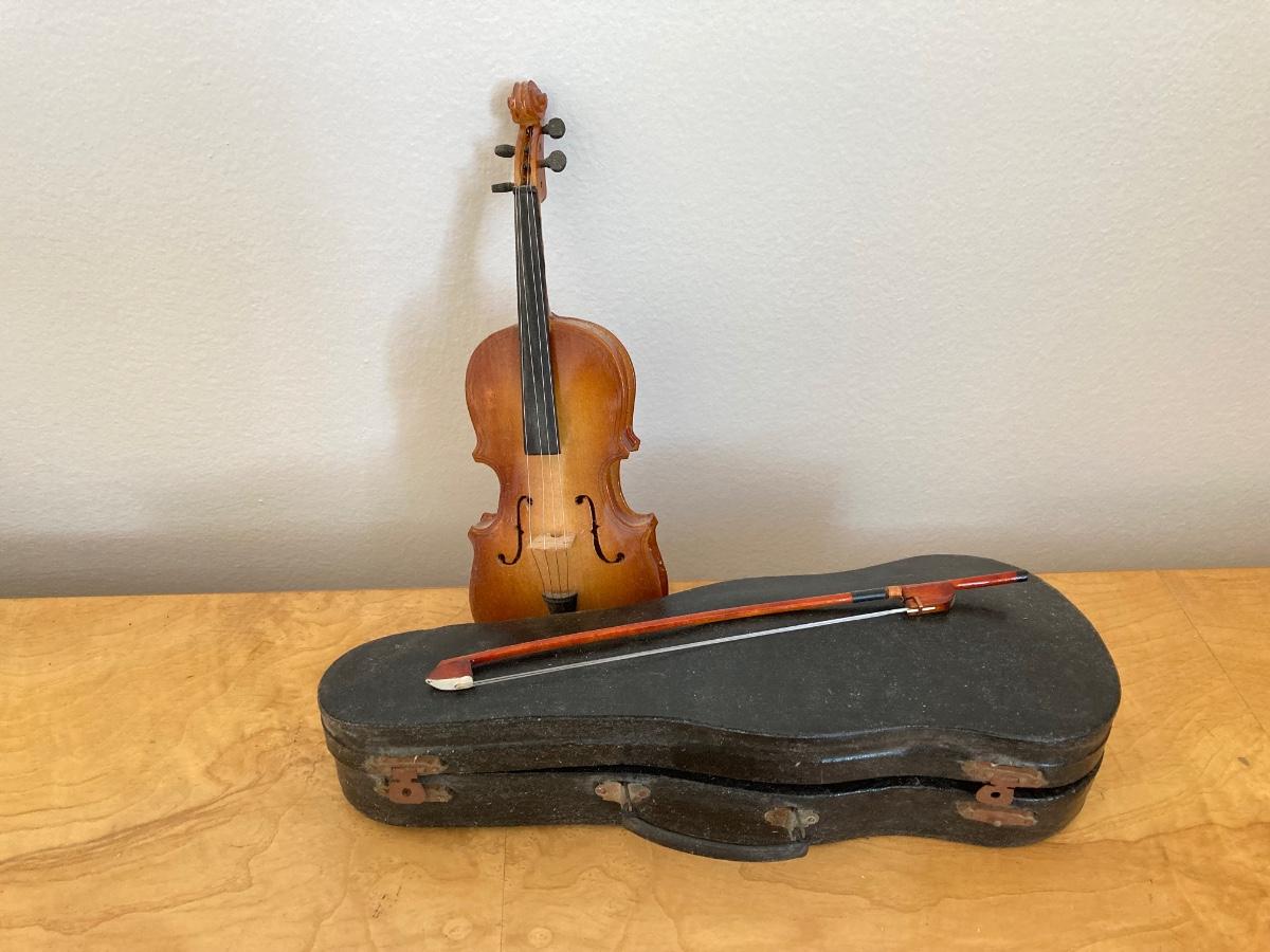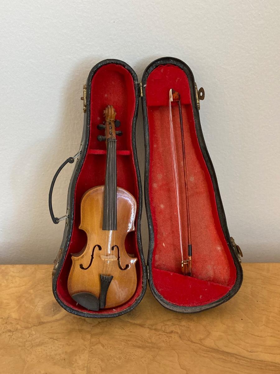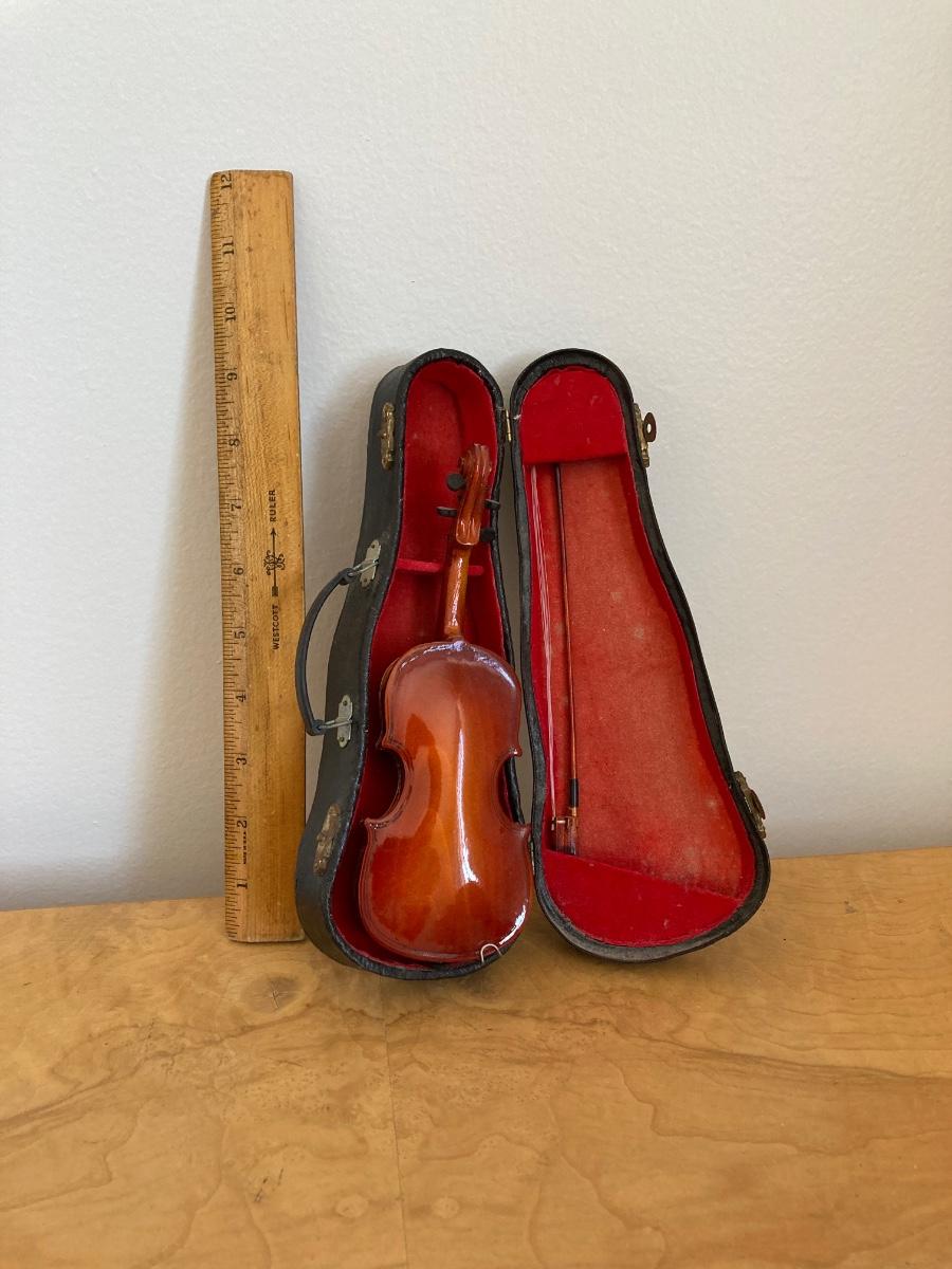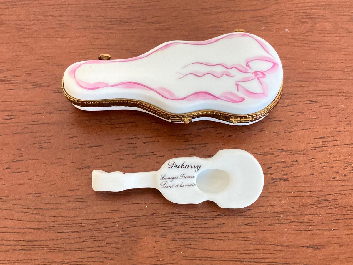 LOT 36B: Collection of Miniature Violins, Dubarry Limoges Violin and Case Trinket Box and Glass Picture Frame