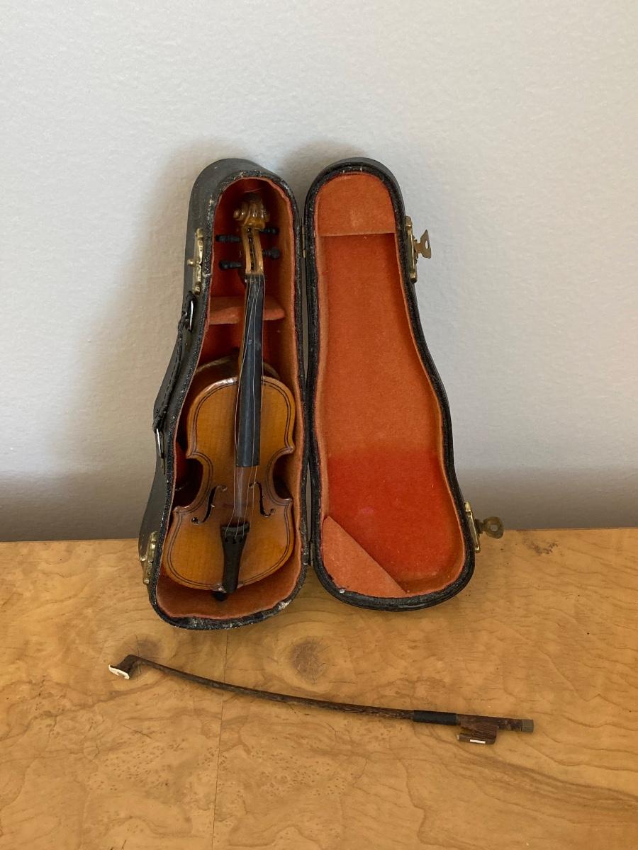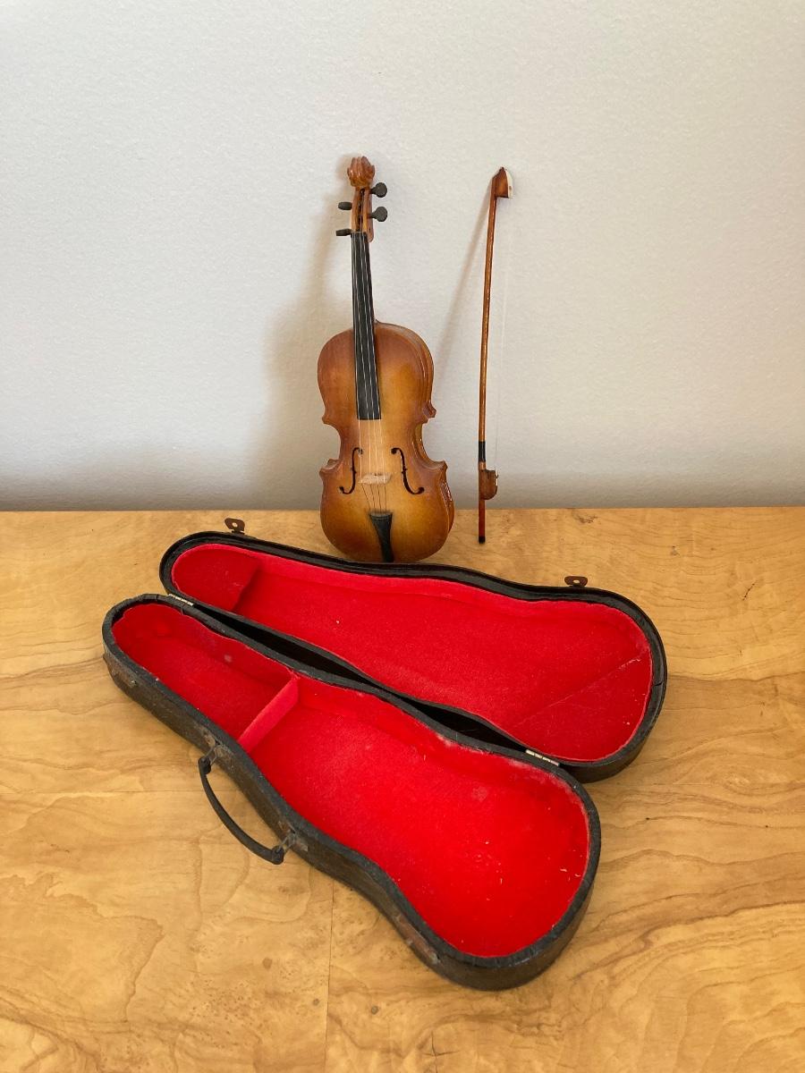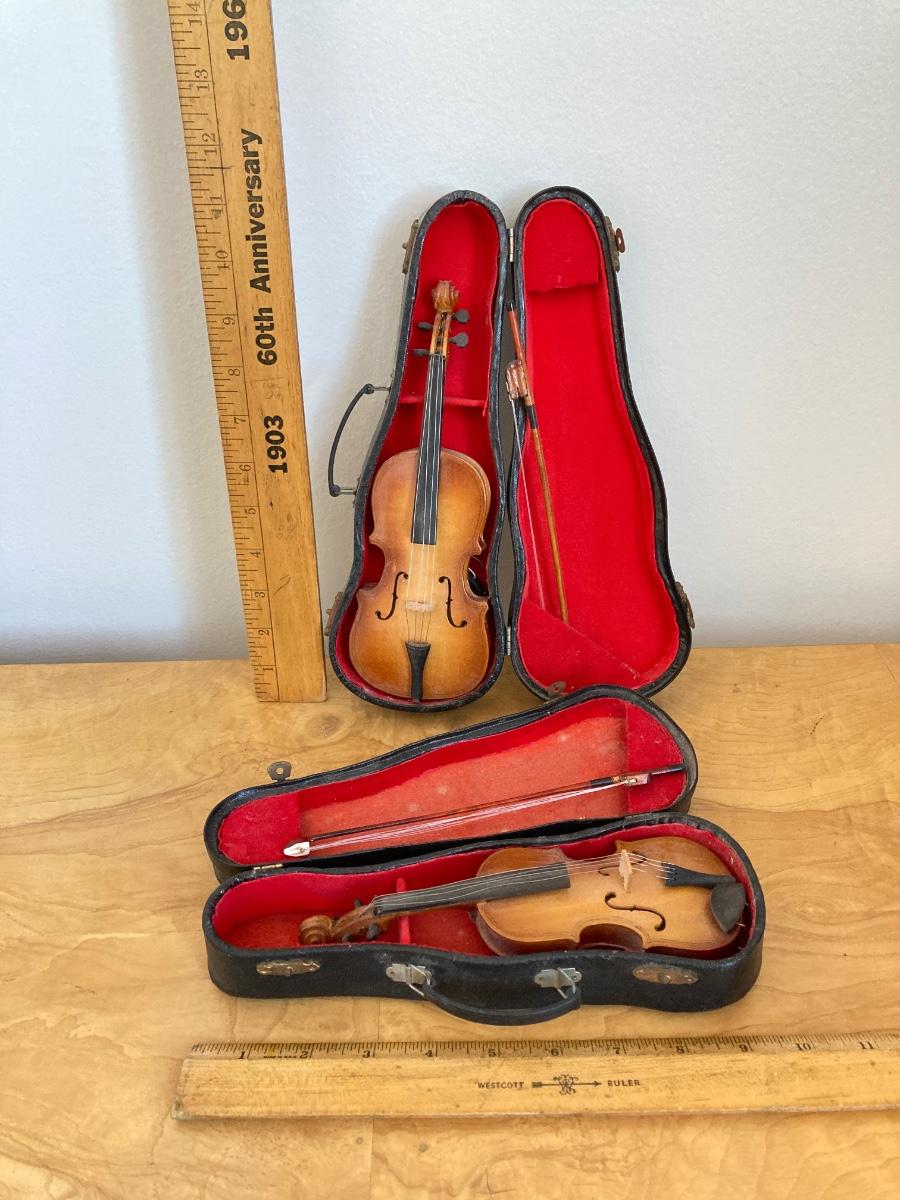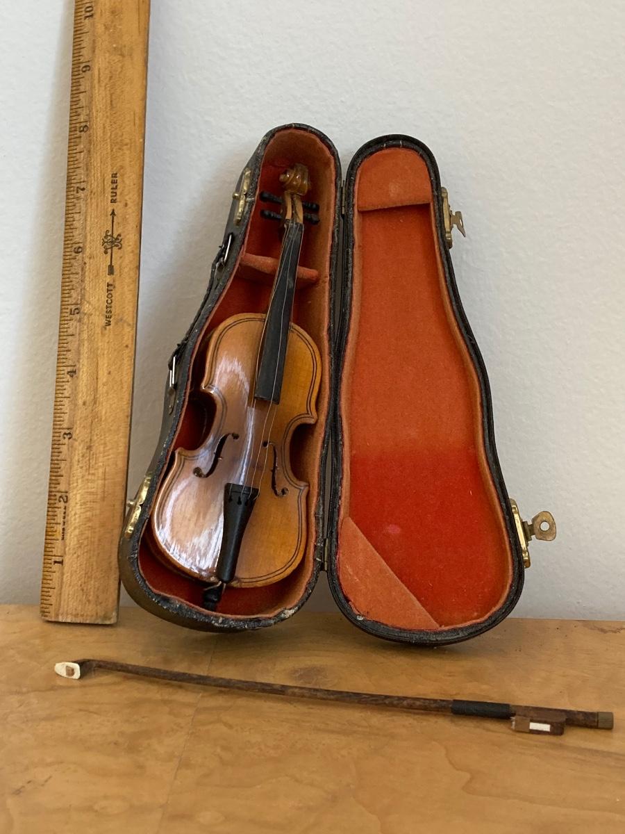 LOT 36B: Collection of Miniature Violins, Dubarry Limoges Violin and Case Trinket Box and Glass Picture Frame