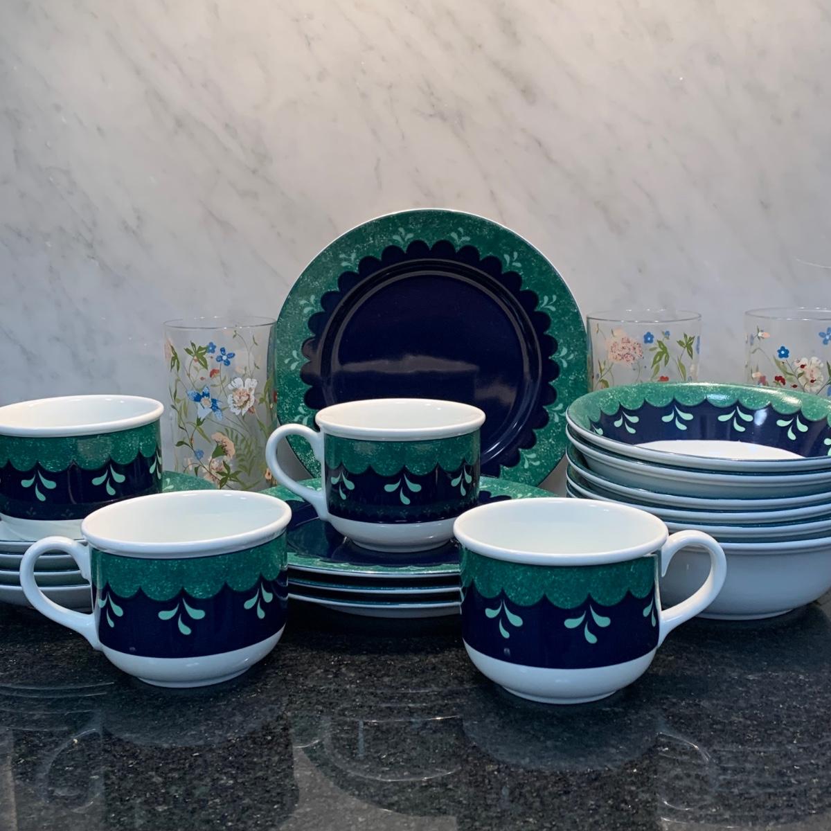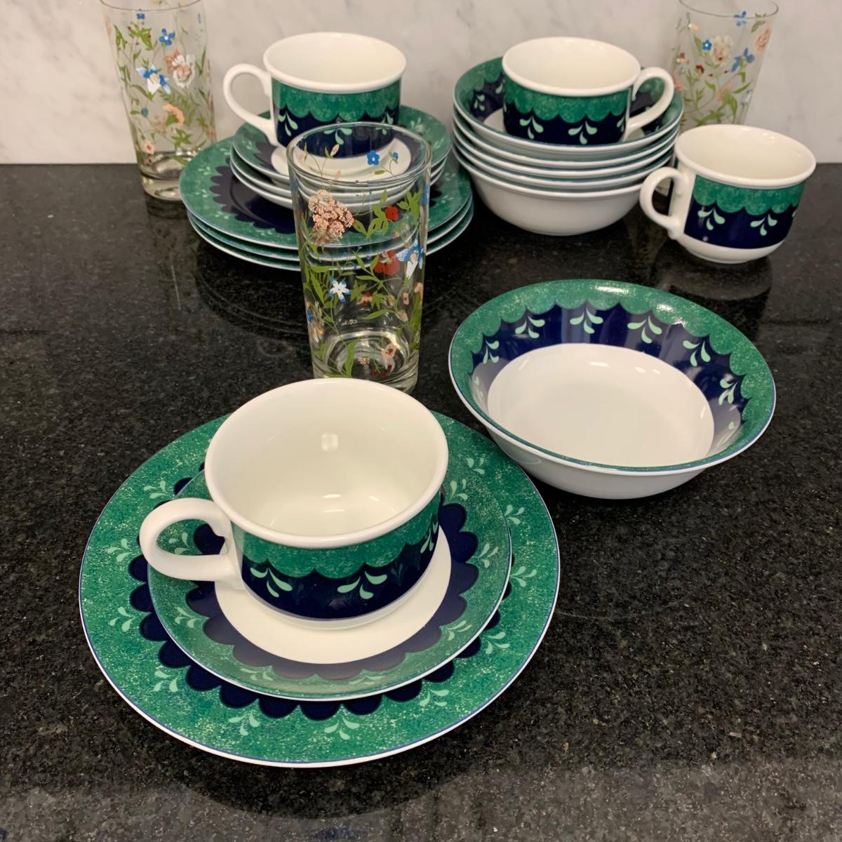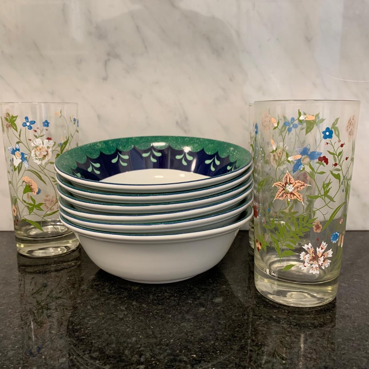 LOT 56K: Casual Images by Lenox Bedazzle-Emerald Dishware and Wildflower Glasses