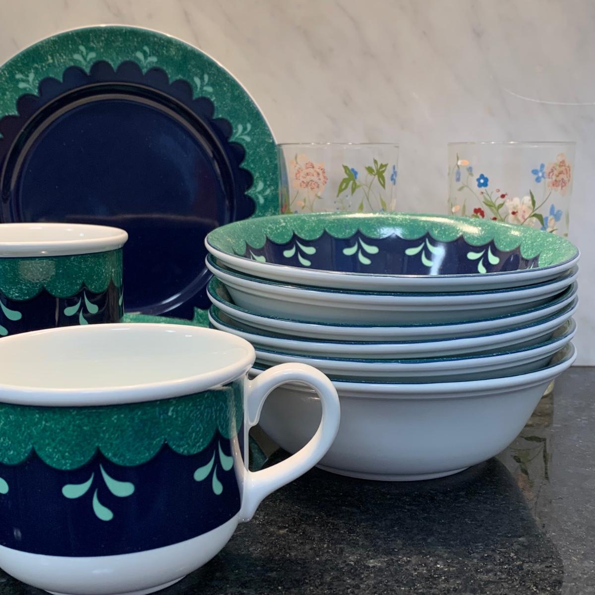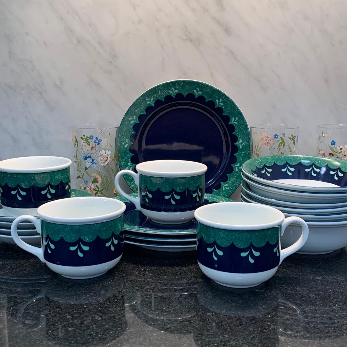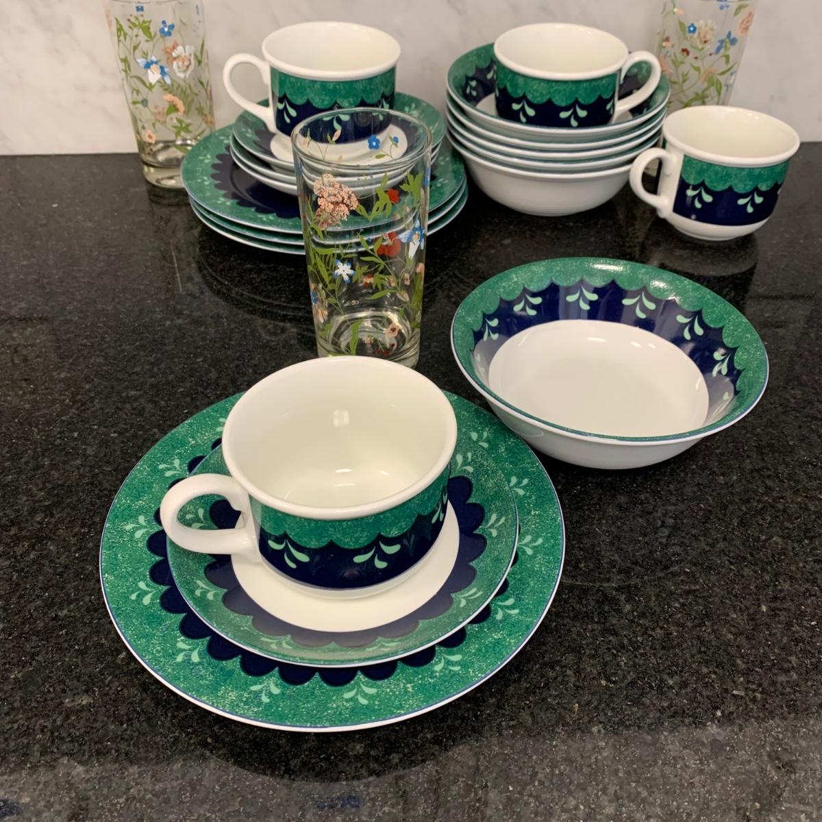 LOT 56K: Casual Images by Lenox Bedazzle-Emerald Dishware and Wildflower Glasses