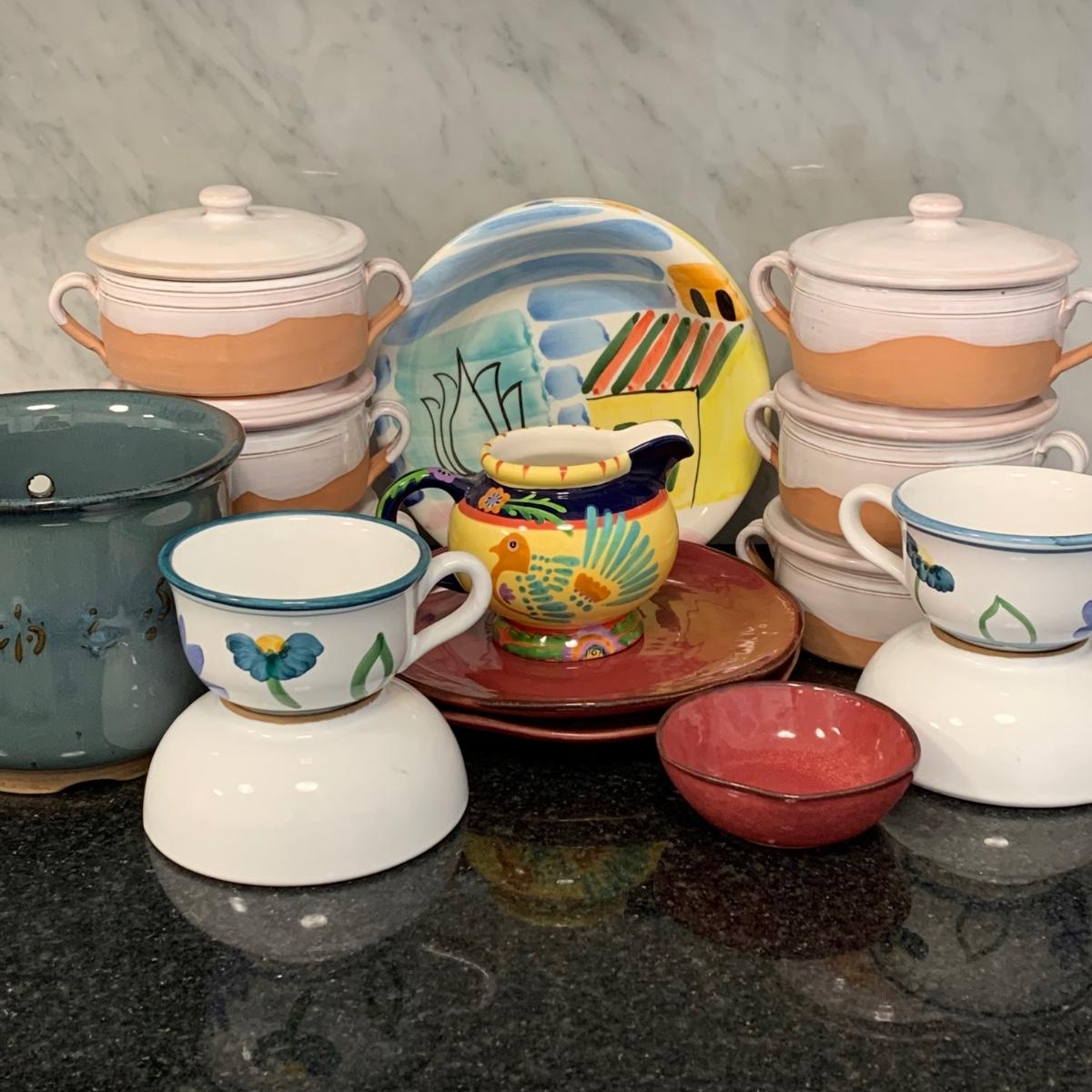 LOT 58K: Set of 6 Vallauris Terracotta Bowls with Italian Made Dishware & More