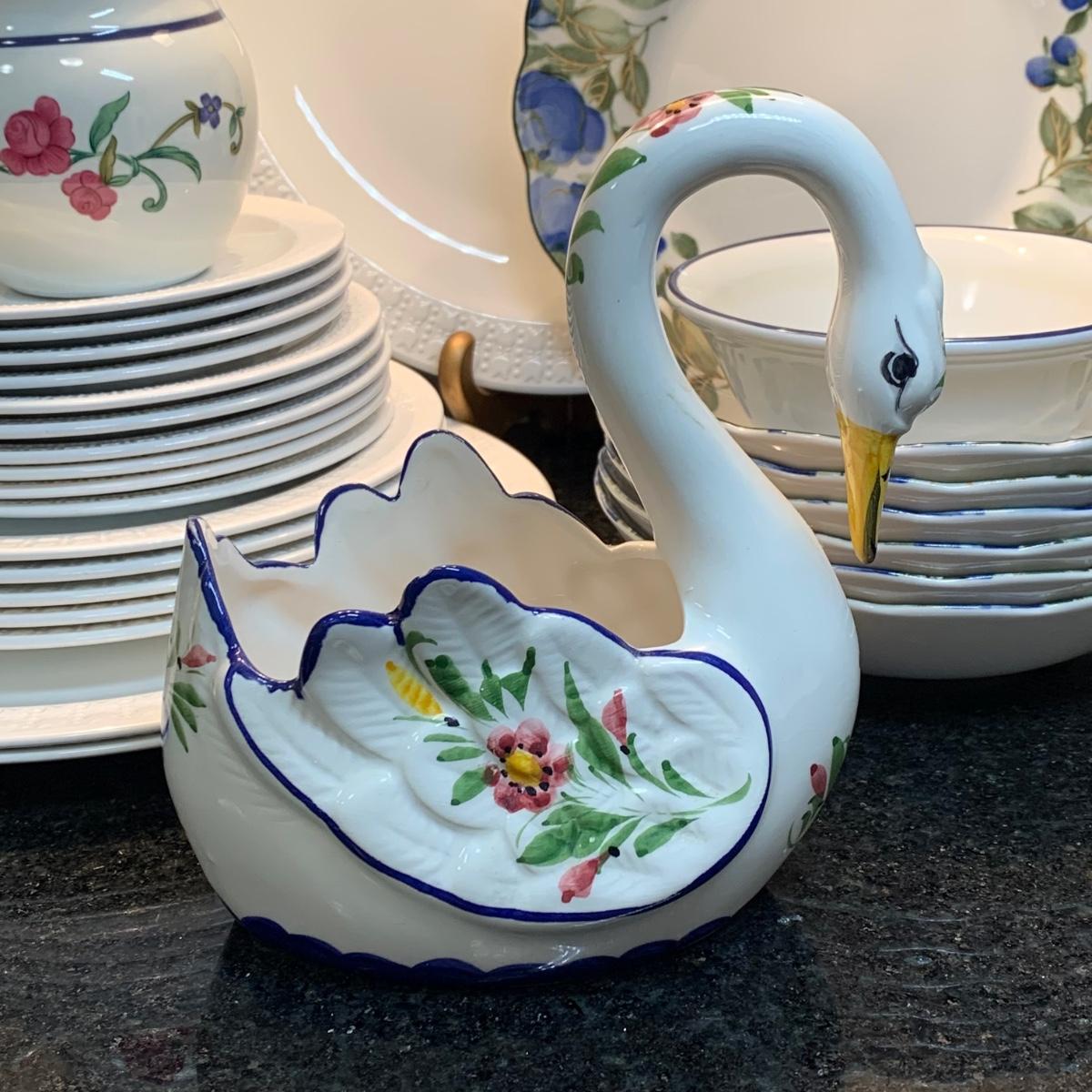 LOT 66K: Lenox Casual Images Creamer & Bowl, Centura by Corning Dishes, Hand Painted Swan Planter & Nikko Tableware