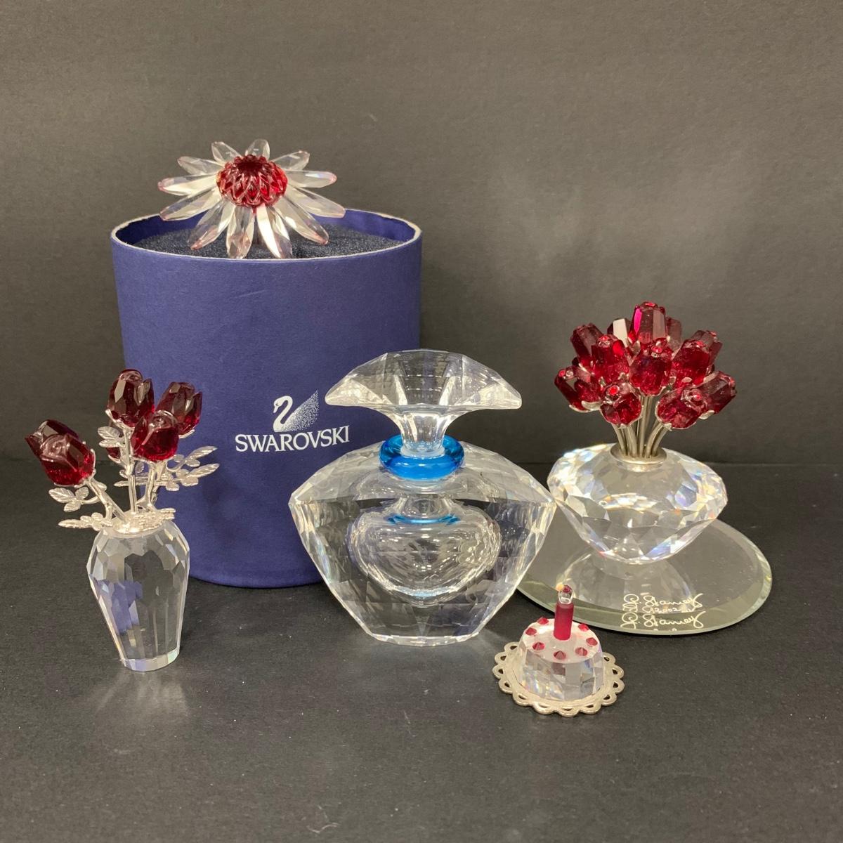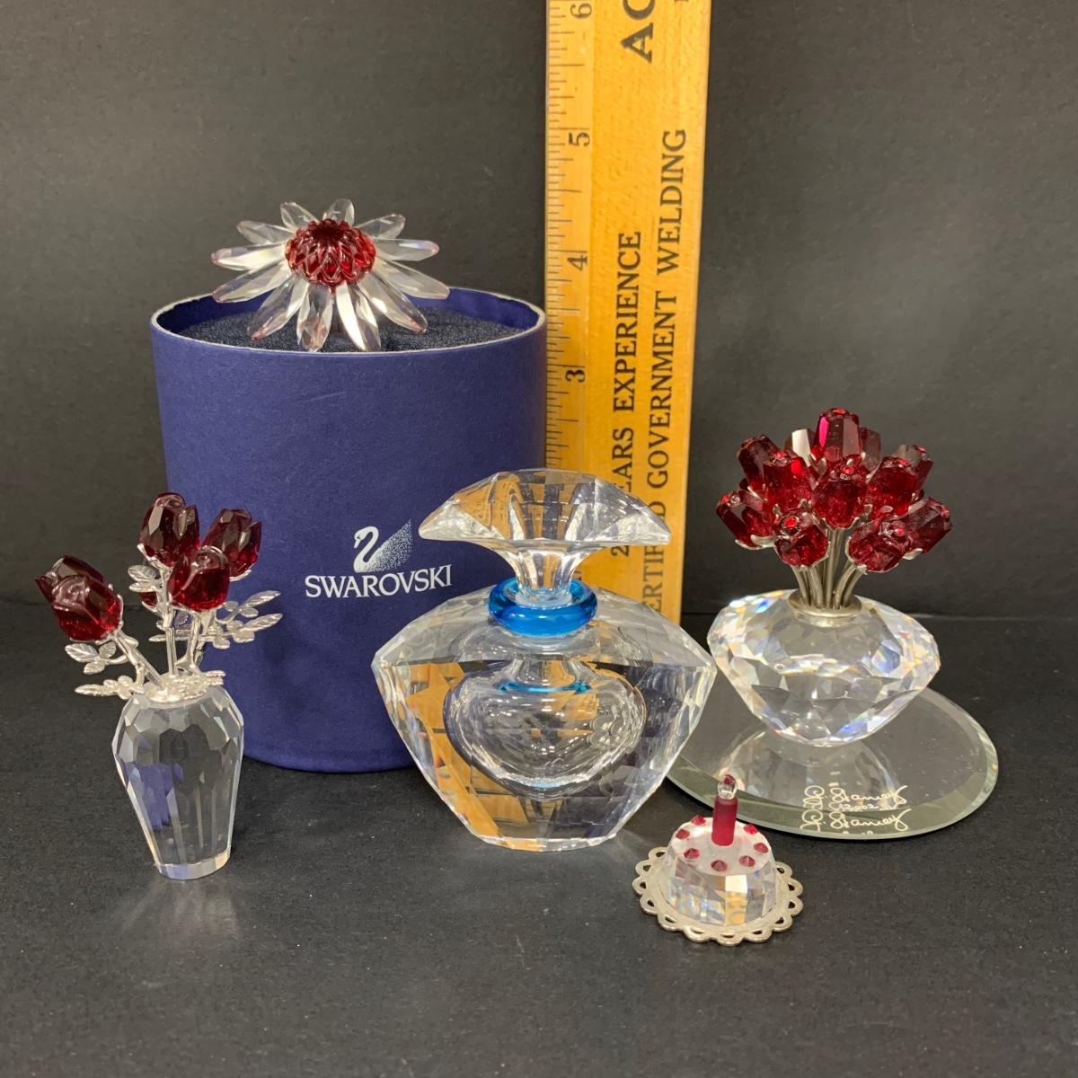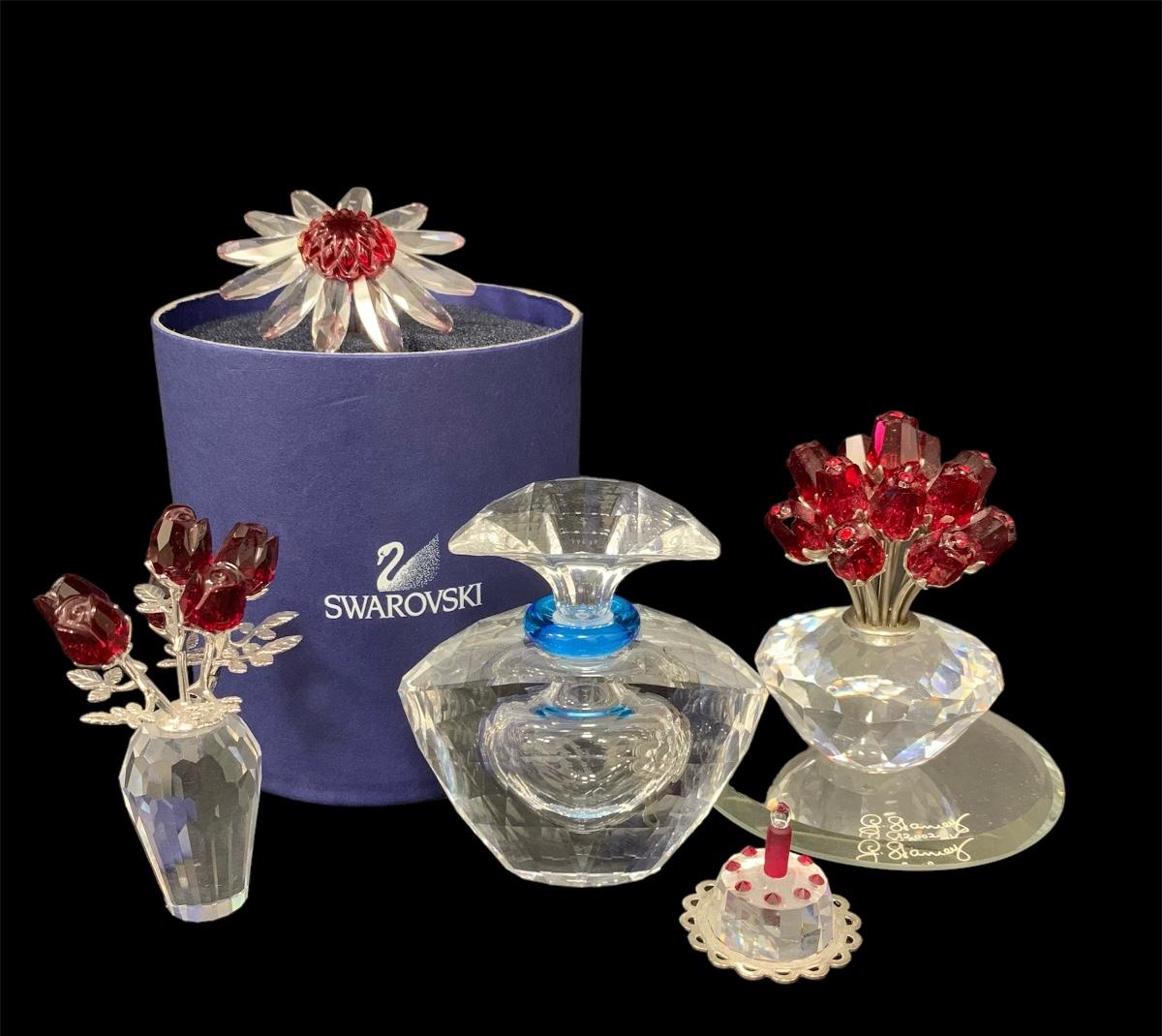 LOT 71: Swarovski Crystal Collection & More: January Roses w/Mirror, Perfume Bottle, Birthday Cake, Daisy