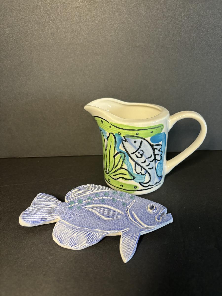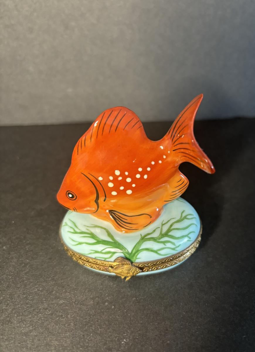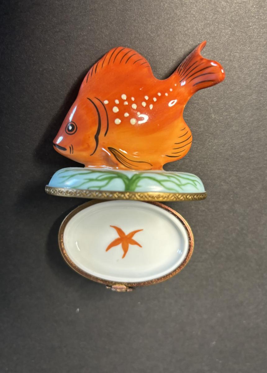 LOT 92L: Beach Home Decor- Shell Bowls, Glass Fish, Fish Trinket Box And More