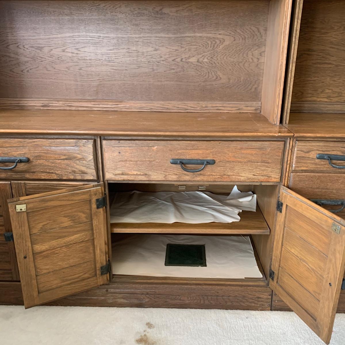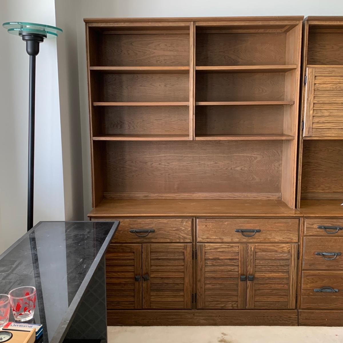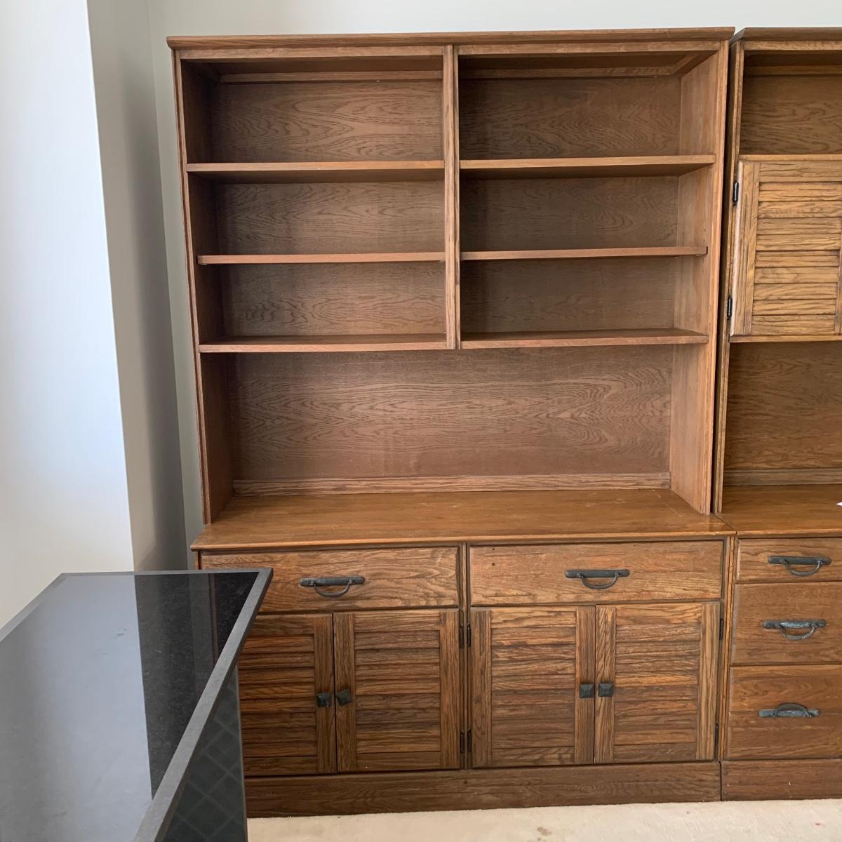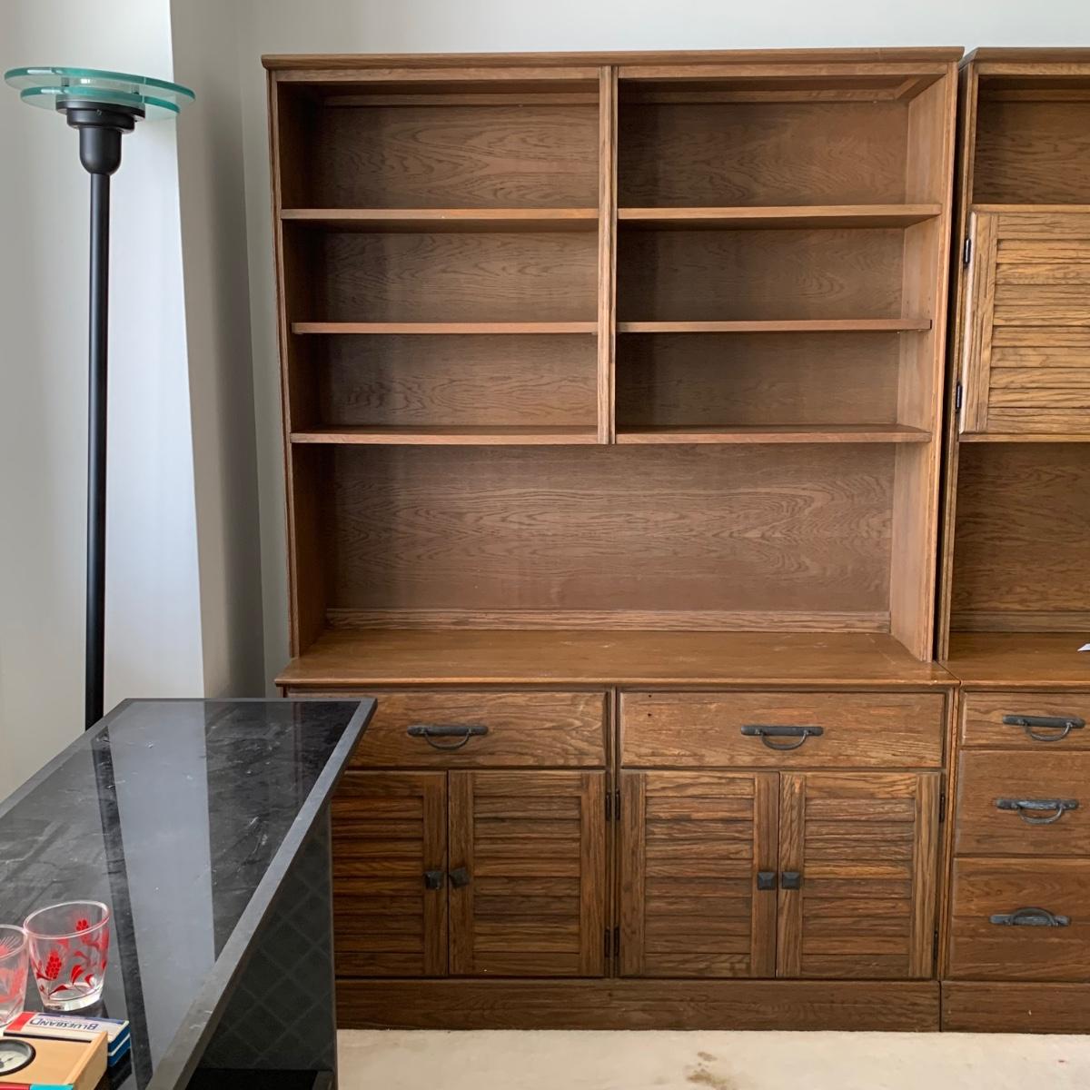 LOT 113: Brandt Ranch Oak2-Piece Hutch/Bookcase Cabinet Monday Pick-up