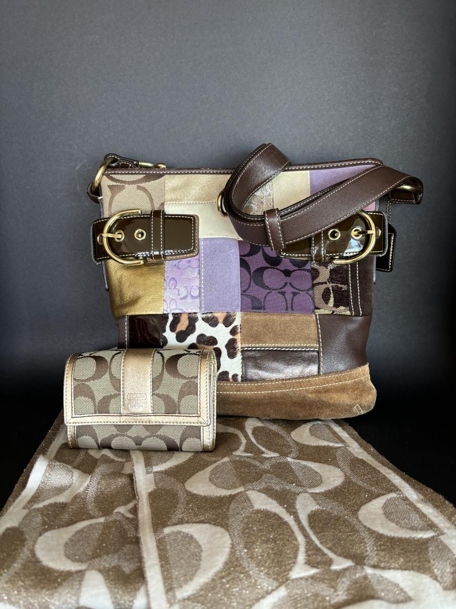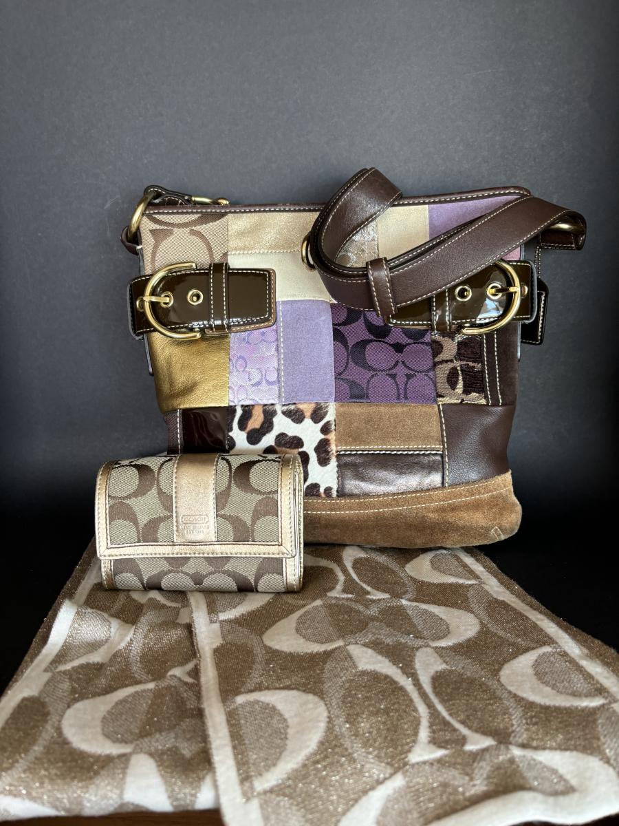 LOT 143 B: Coach Shoulder Bag, Wallet And Scarf
