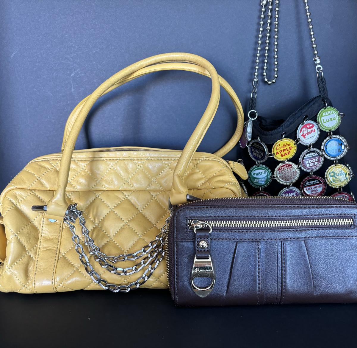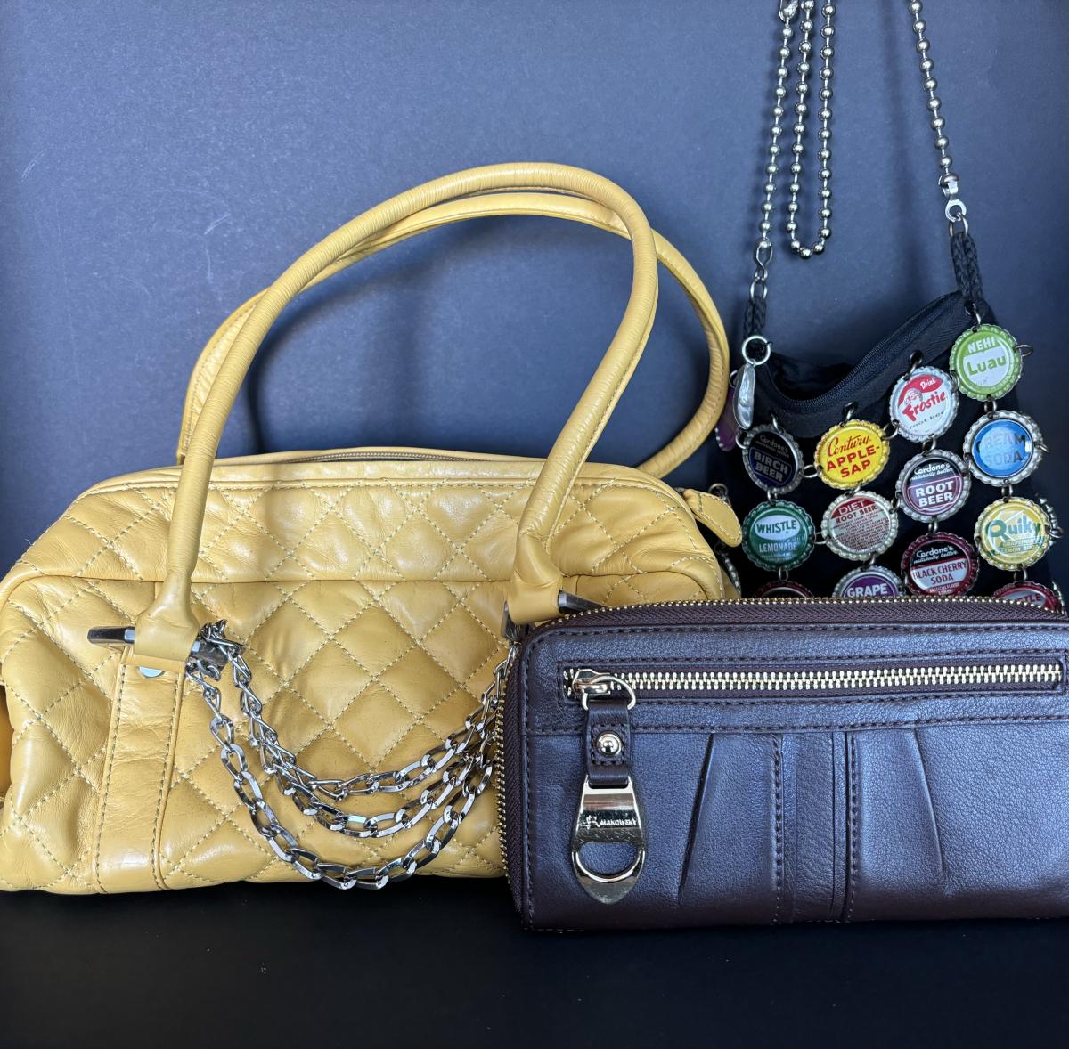 LOT 155B: Two Fashion Bags- Janet Cooper Bottle Cap Designs Cross Body And Wallet