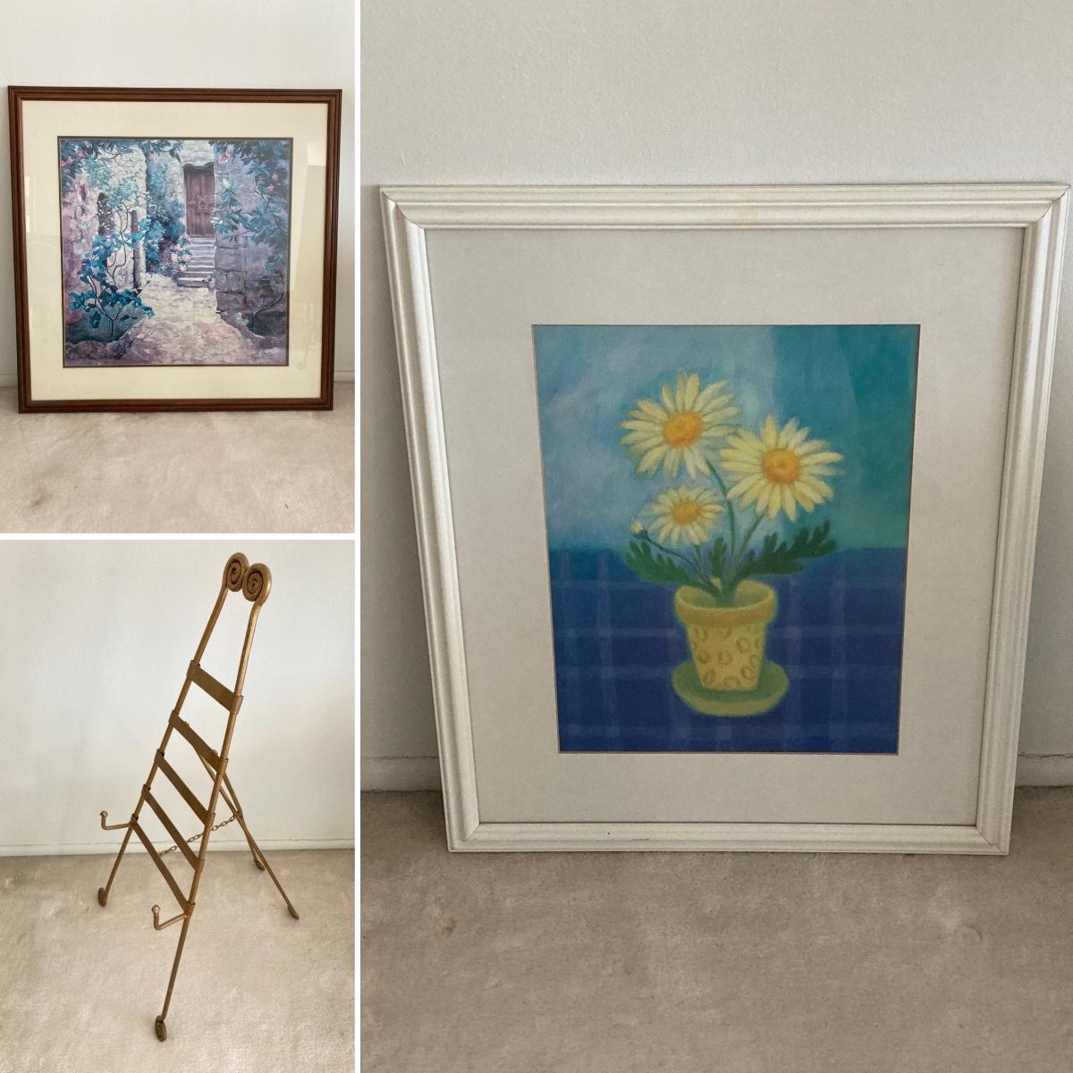 LOT 166D: Gold Tone Metal Easel with Two Wall Hangings