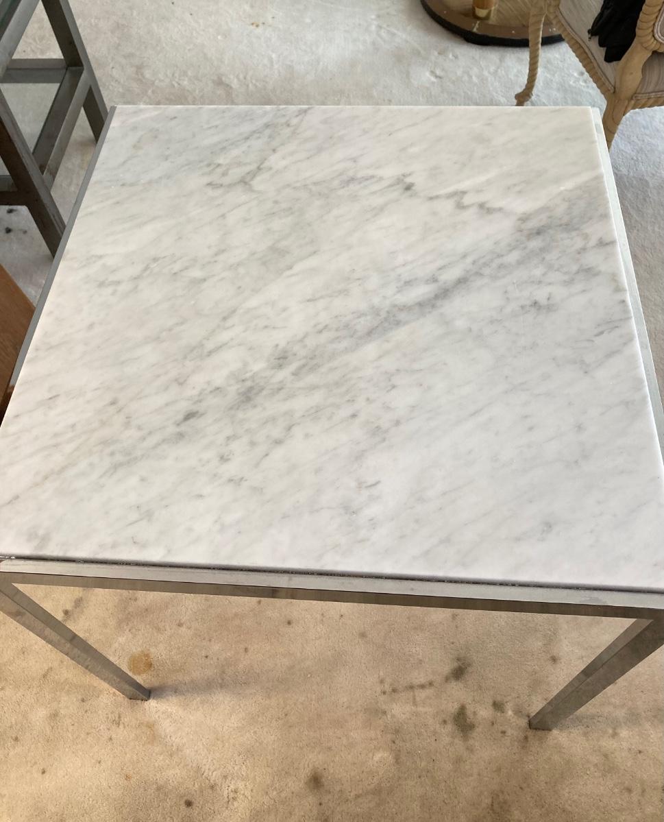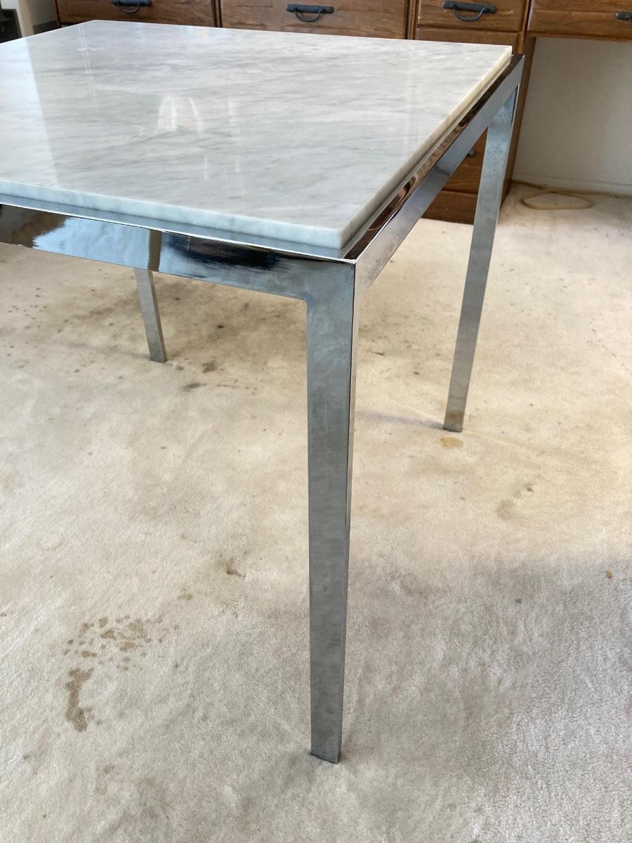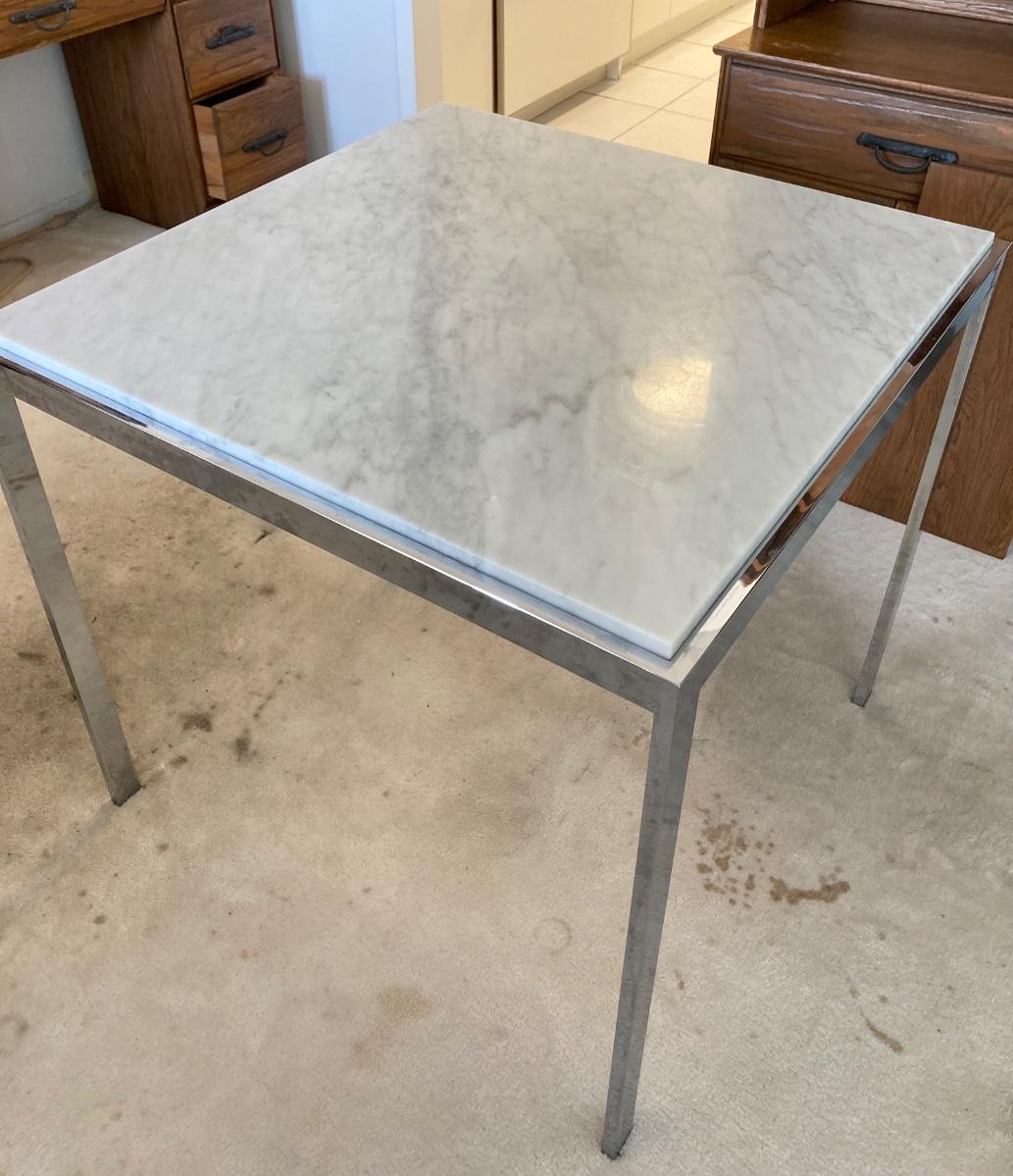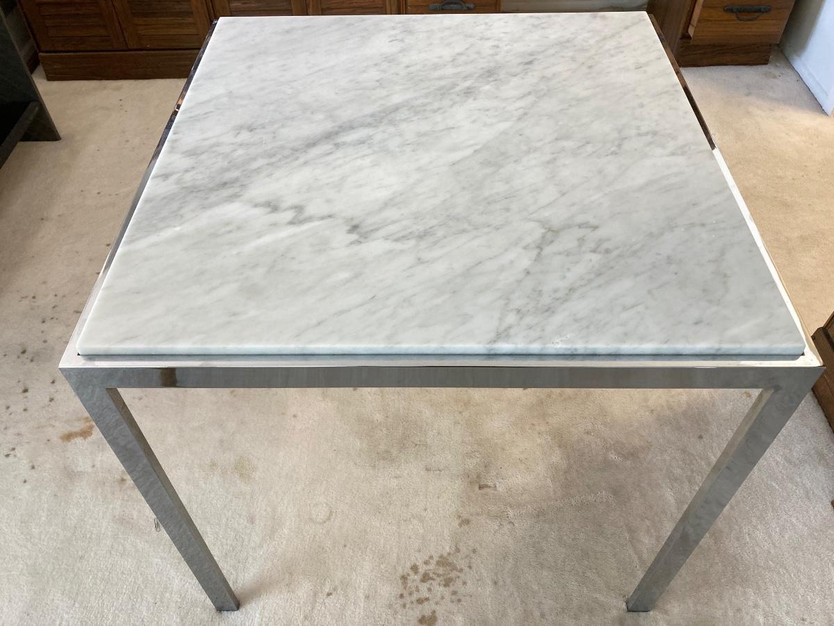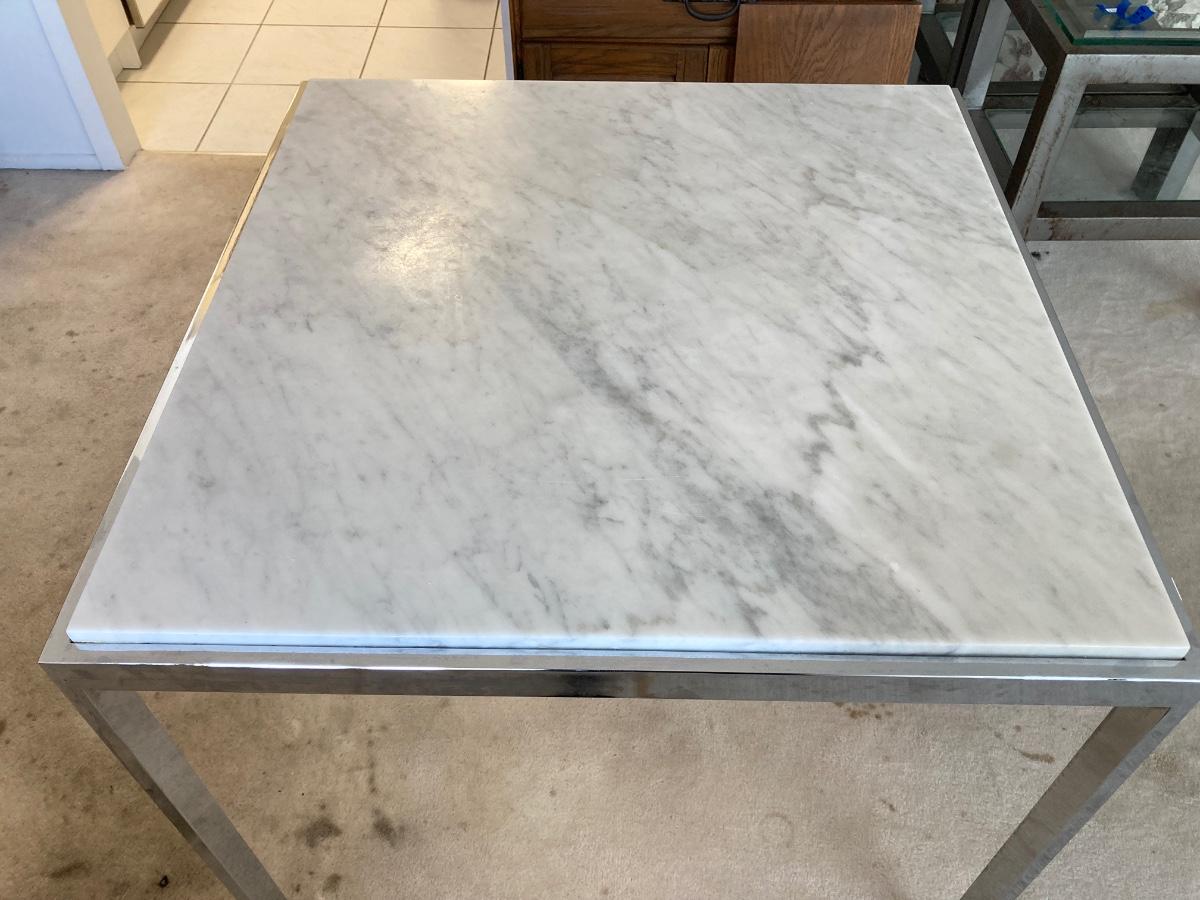 LOT 170D: Square Top Marble & Chrome Dining Table Monday Pick-up