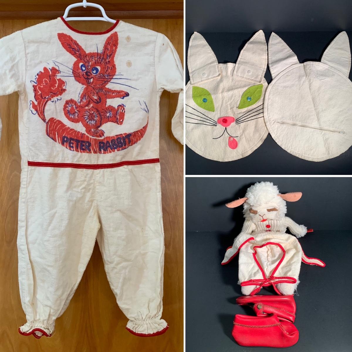 LOT 3 B: Vintage Children's Peter Rabbit Costume W/ Rabbit Eared Bonnet, Lamb Chop Hand Sock Puppet Plush, & More