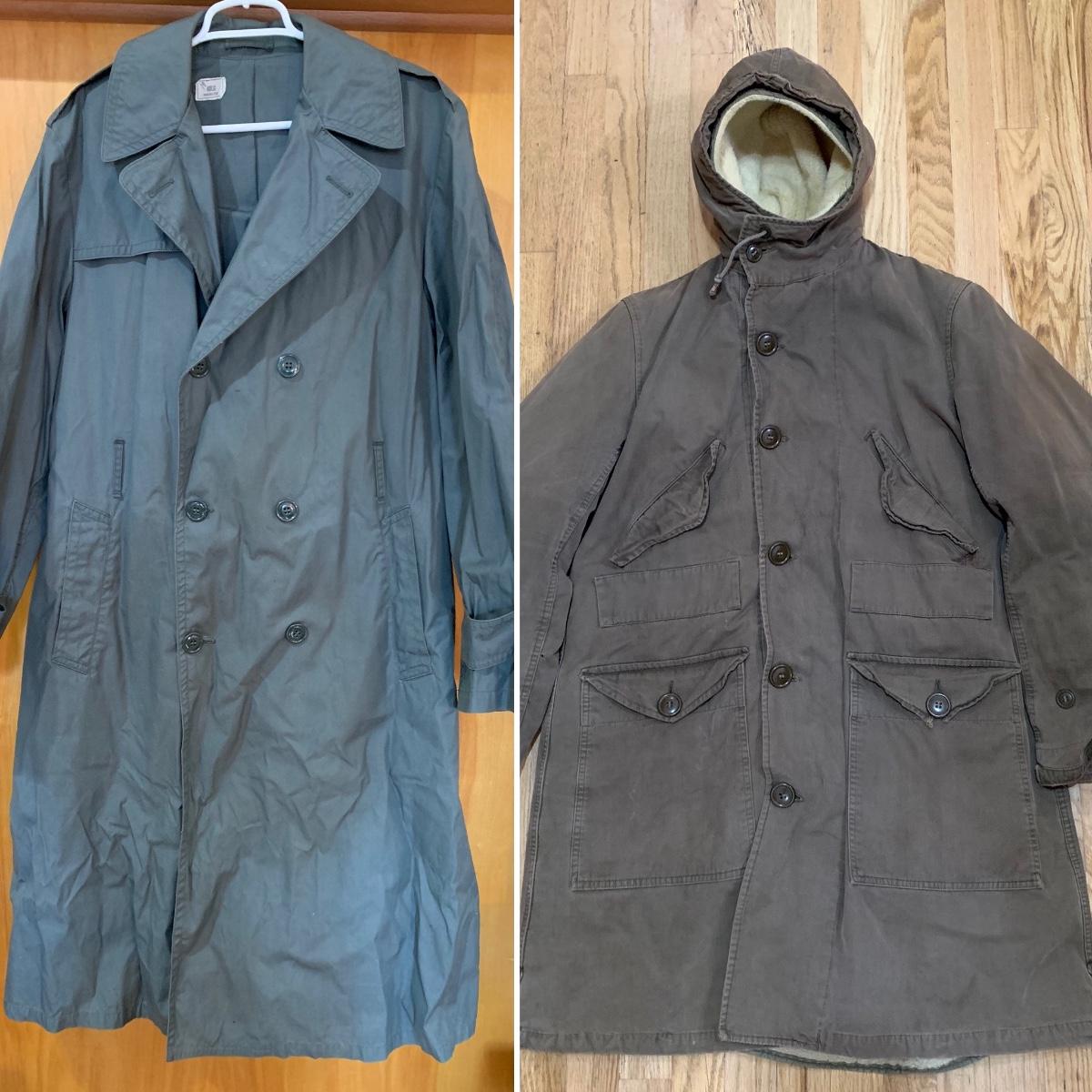 LOT 6 C: Vintage Military Trench Coat & Lined Winter Jacket