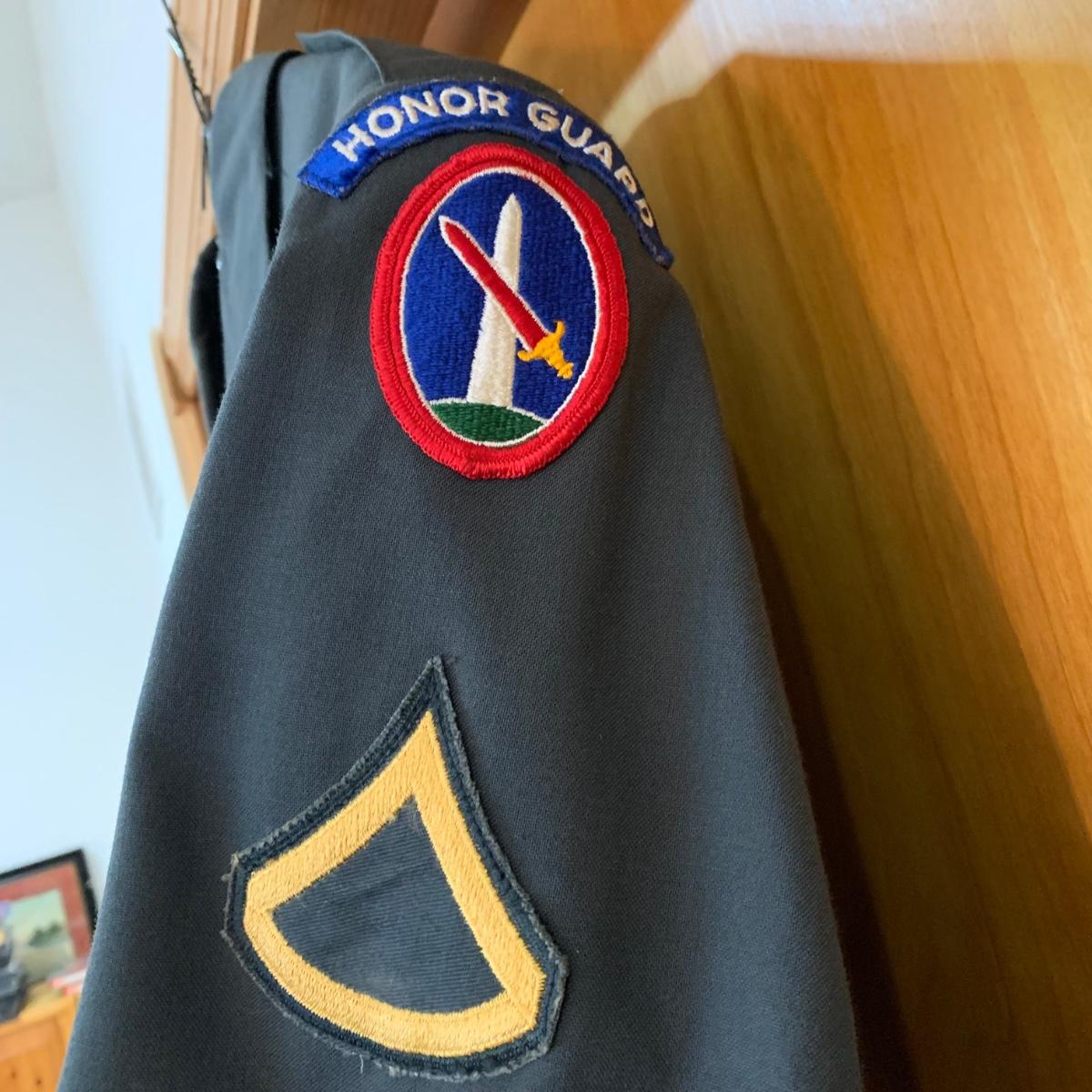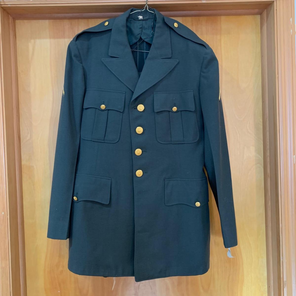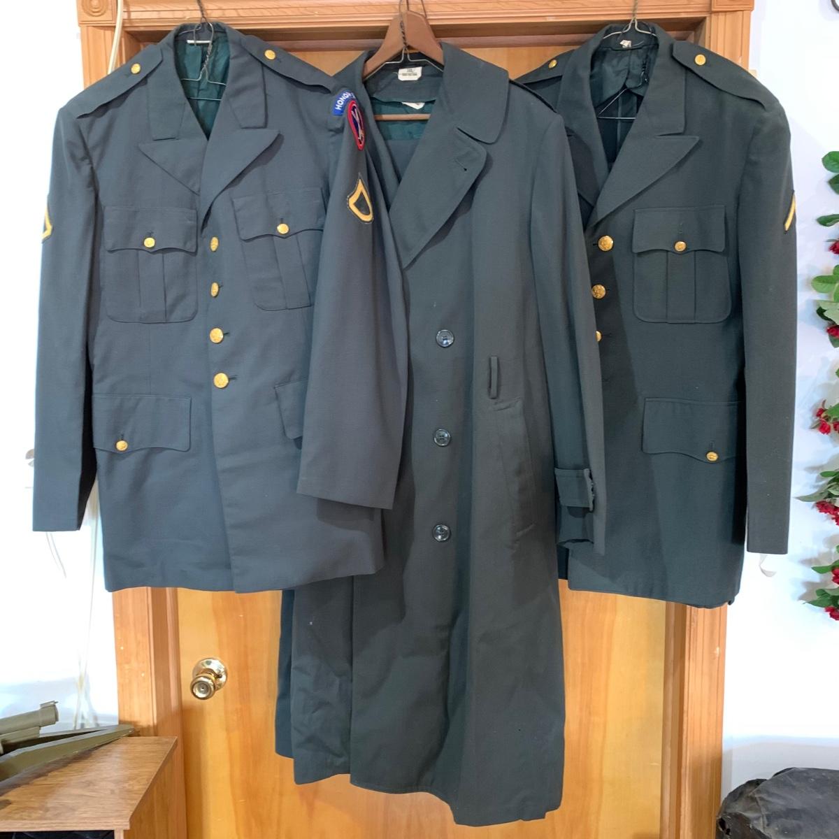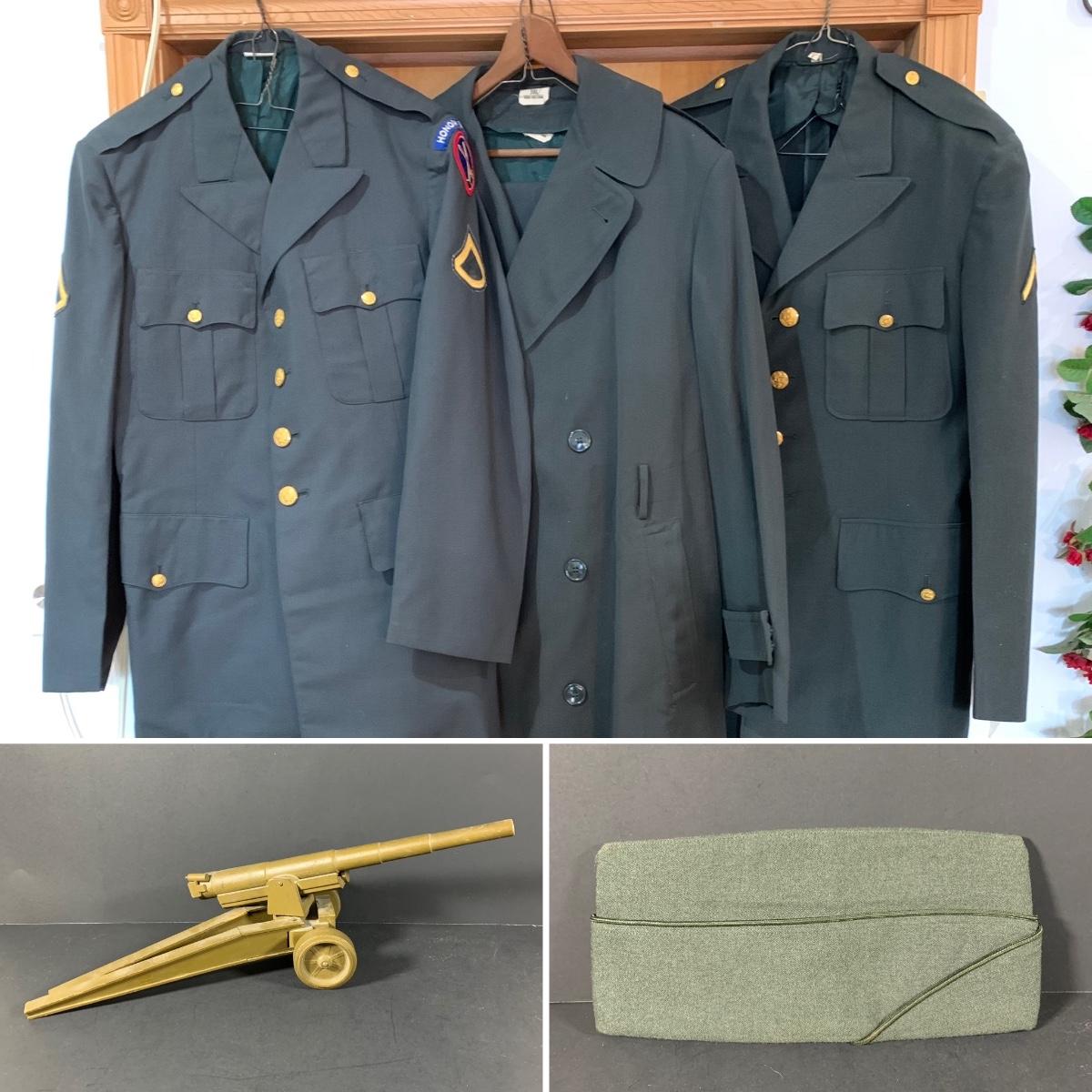 LOT 12 C: Vintage Military Uniforms W/ Cap & Posable Wooden Cannon