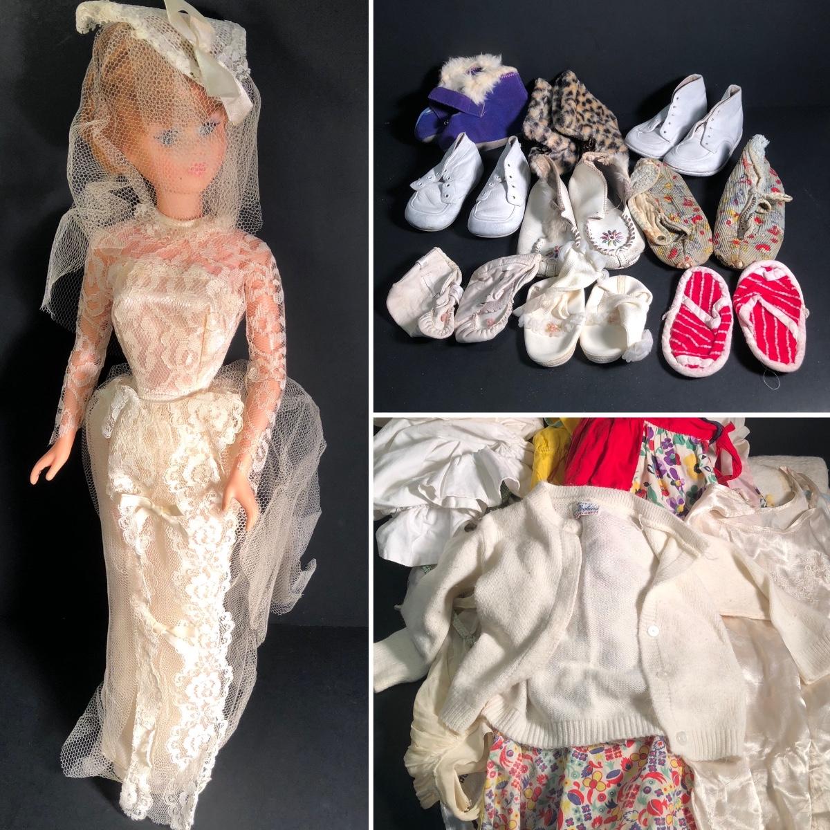 LOT 61B: Vintage 20" Bride Doll (Kaysay) w/ Baby / Doll Clothes & Shoes
